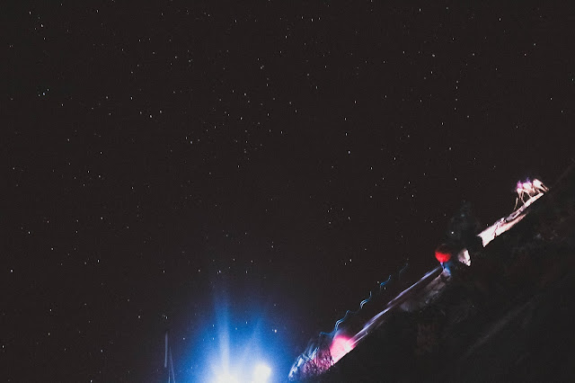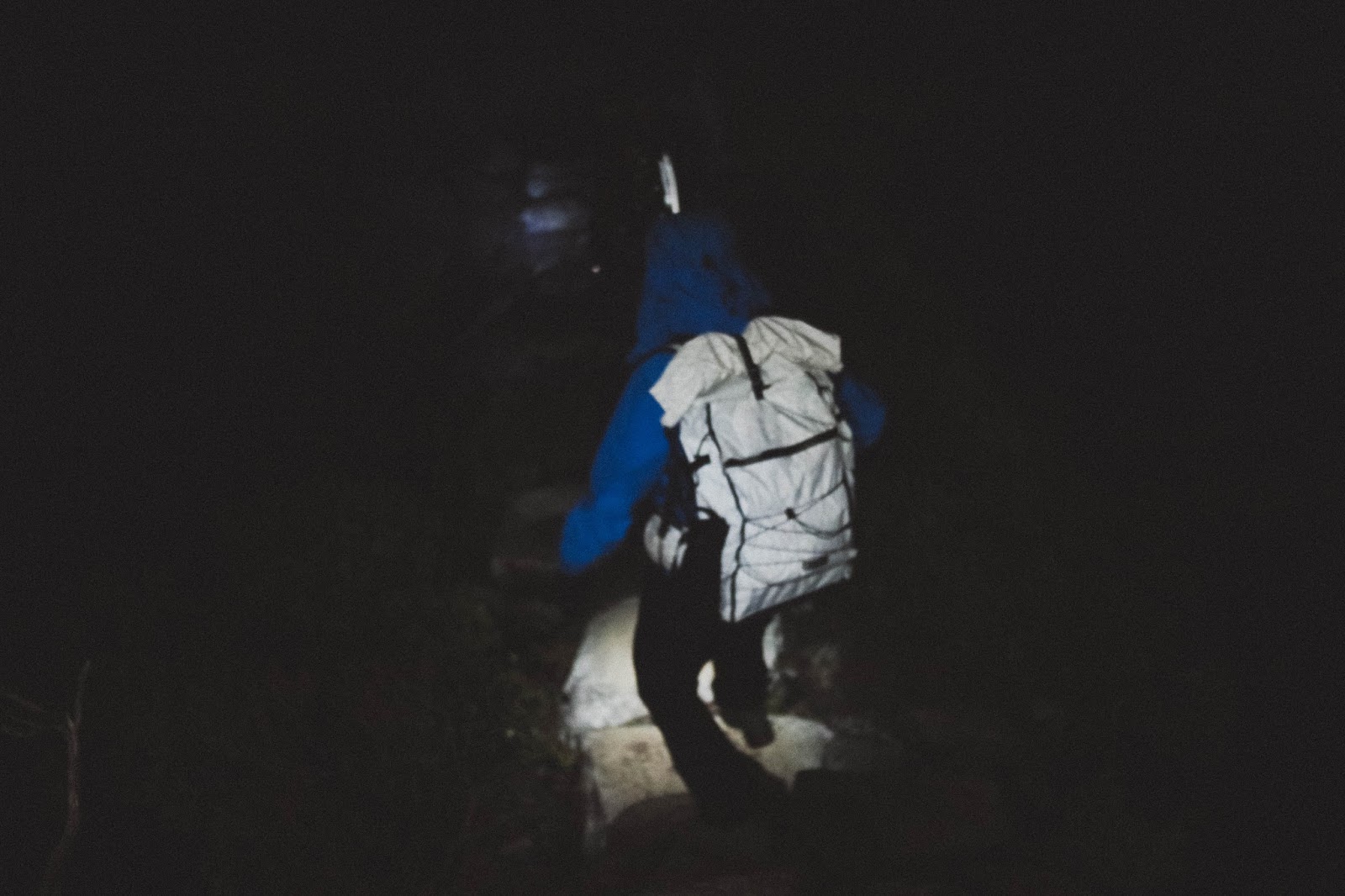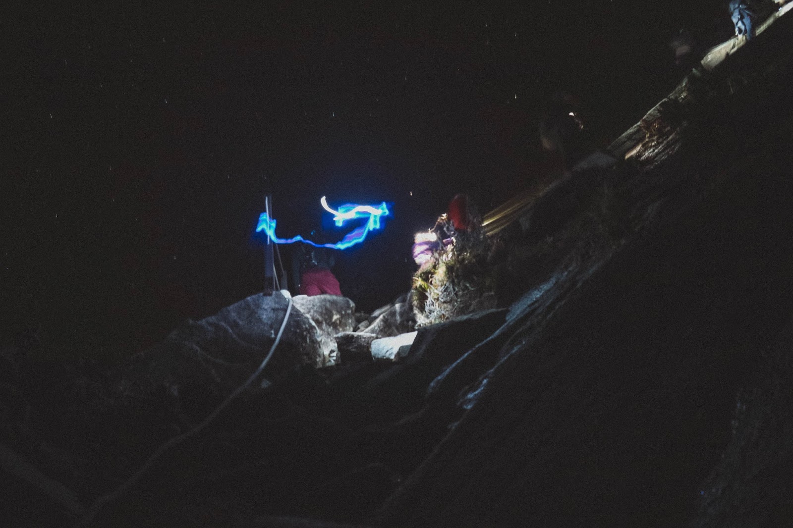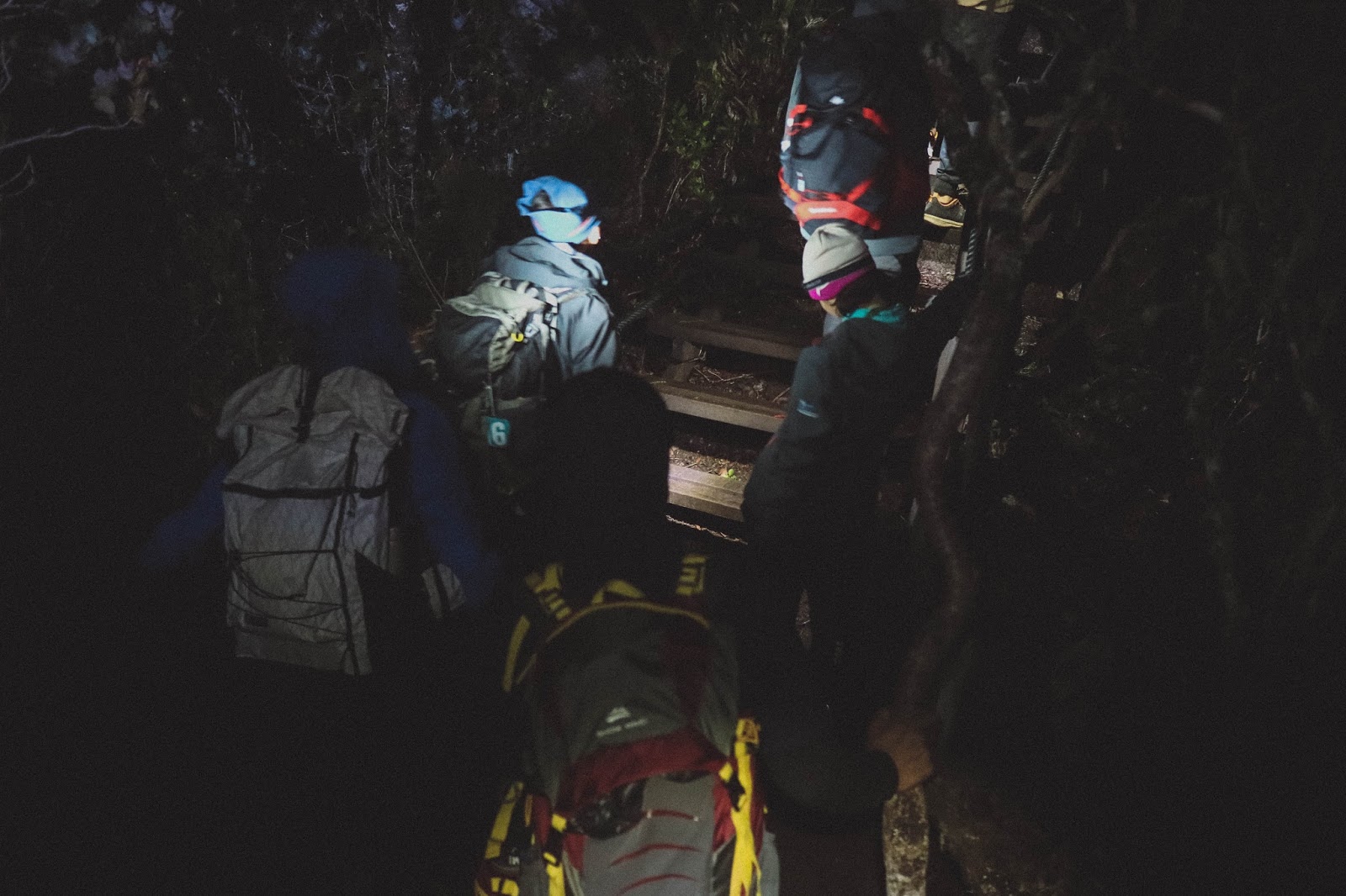 大家每人頭上一顆燈,讓整座山被光點串聯出一條路徑