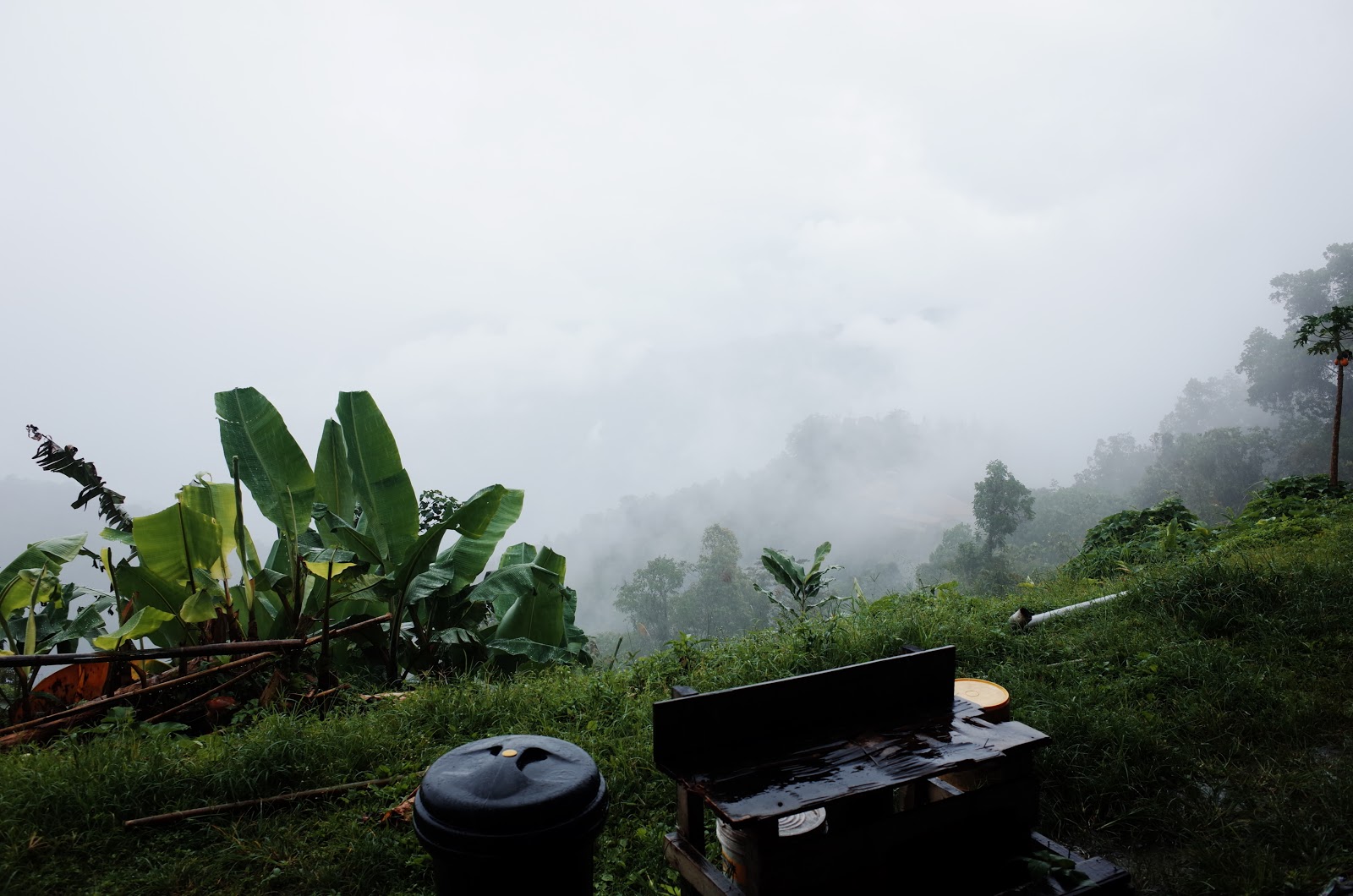 山上下雨又起大霧,本來在山坡上的市集應該要有很好的風景