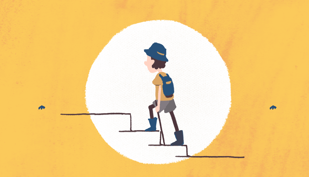 1. 登山杖先撐在高點,固定好之後再用手臂的力量把身體撐上去。這個方法是大家比較常看到的,也是比較直覺的方式。