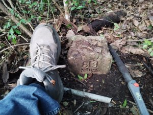 (湖內)海埔~3(在磚牆旁雜草堆中看到基石)