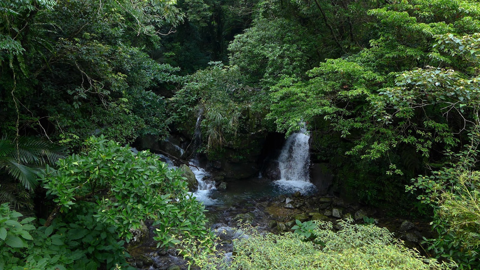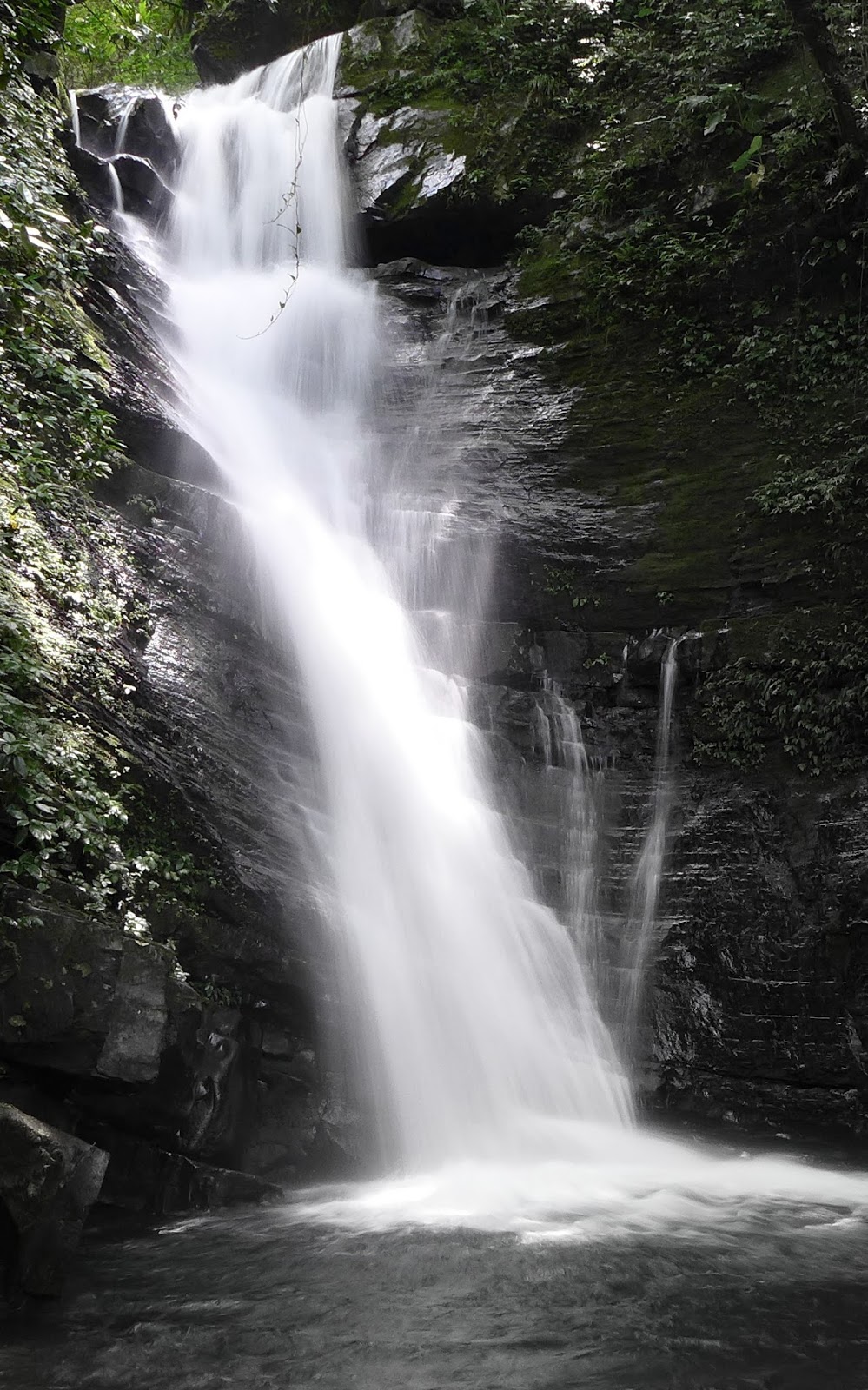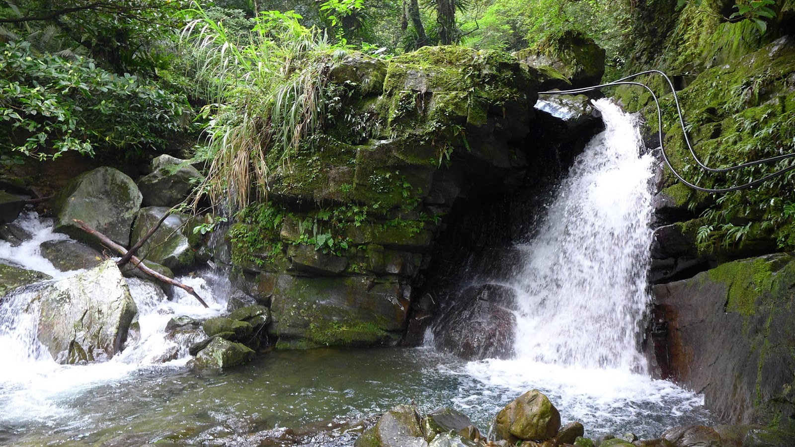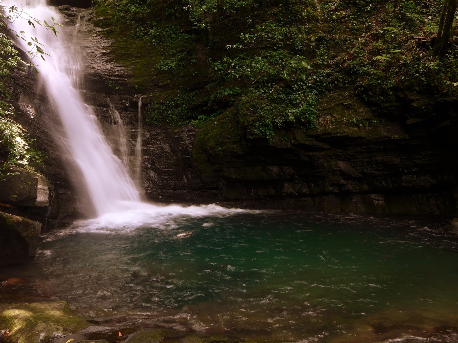 2層瀑布的瀑潭都還蠻深的,要爬上去看上層瀑時原本走在水中要去爬岩壁突然就踩沒底了,但看得到底,深度估約2米多一點,爬上去欣賞上層瀑布。