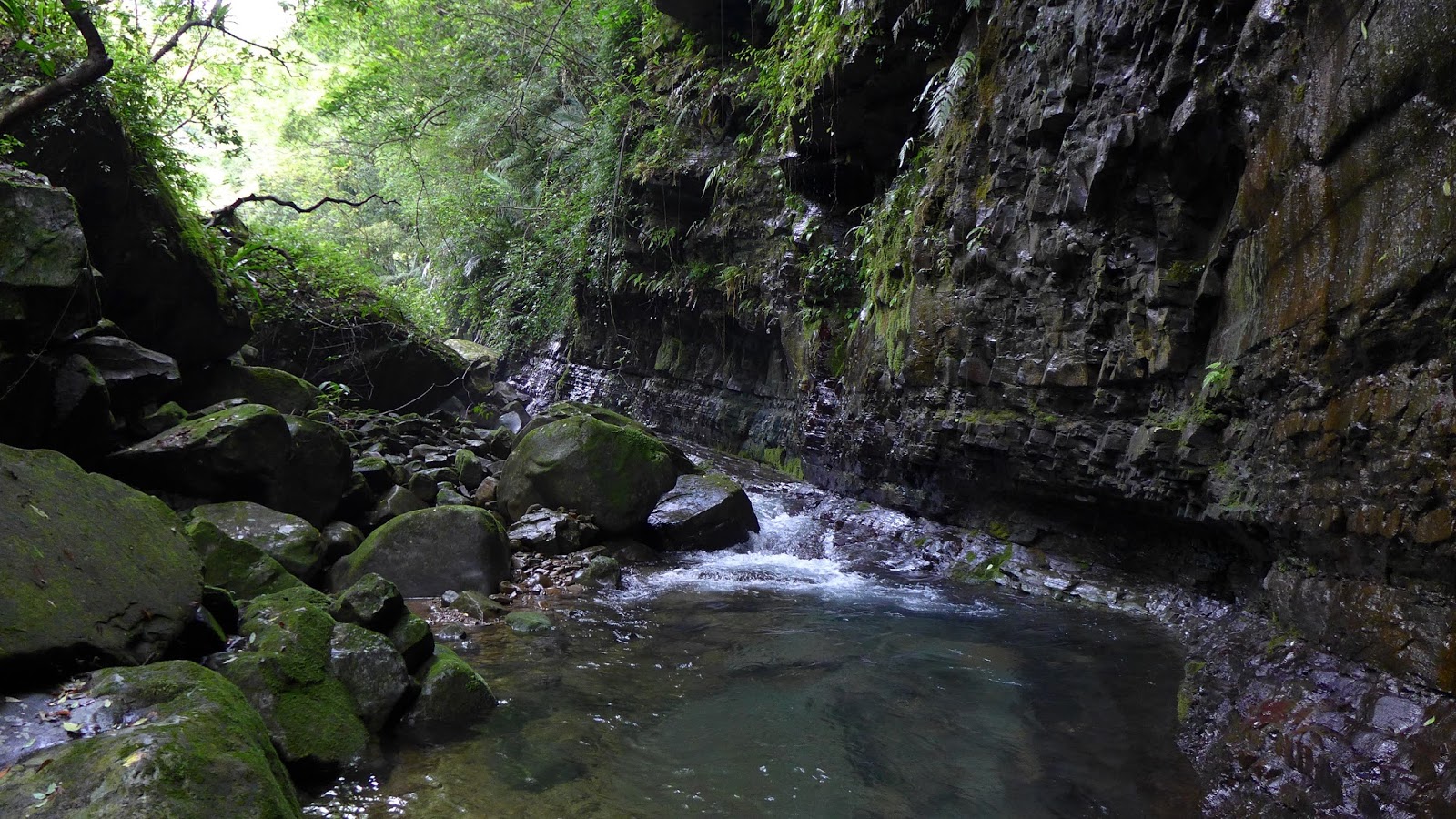 距離雖然不長,但強烈建議換上溯溪鞋或可防滑的鞋子,非常濕滑,我自己是帶溯溪鞋來換,往上不一會就能看見瀑布。