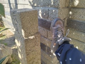 (鹿港)房厝~1(基石現在靠在民宅最裡面的圍牆邊,底部壓著的似乎是磐石)