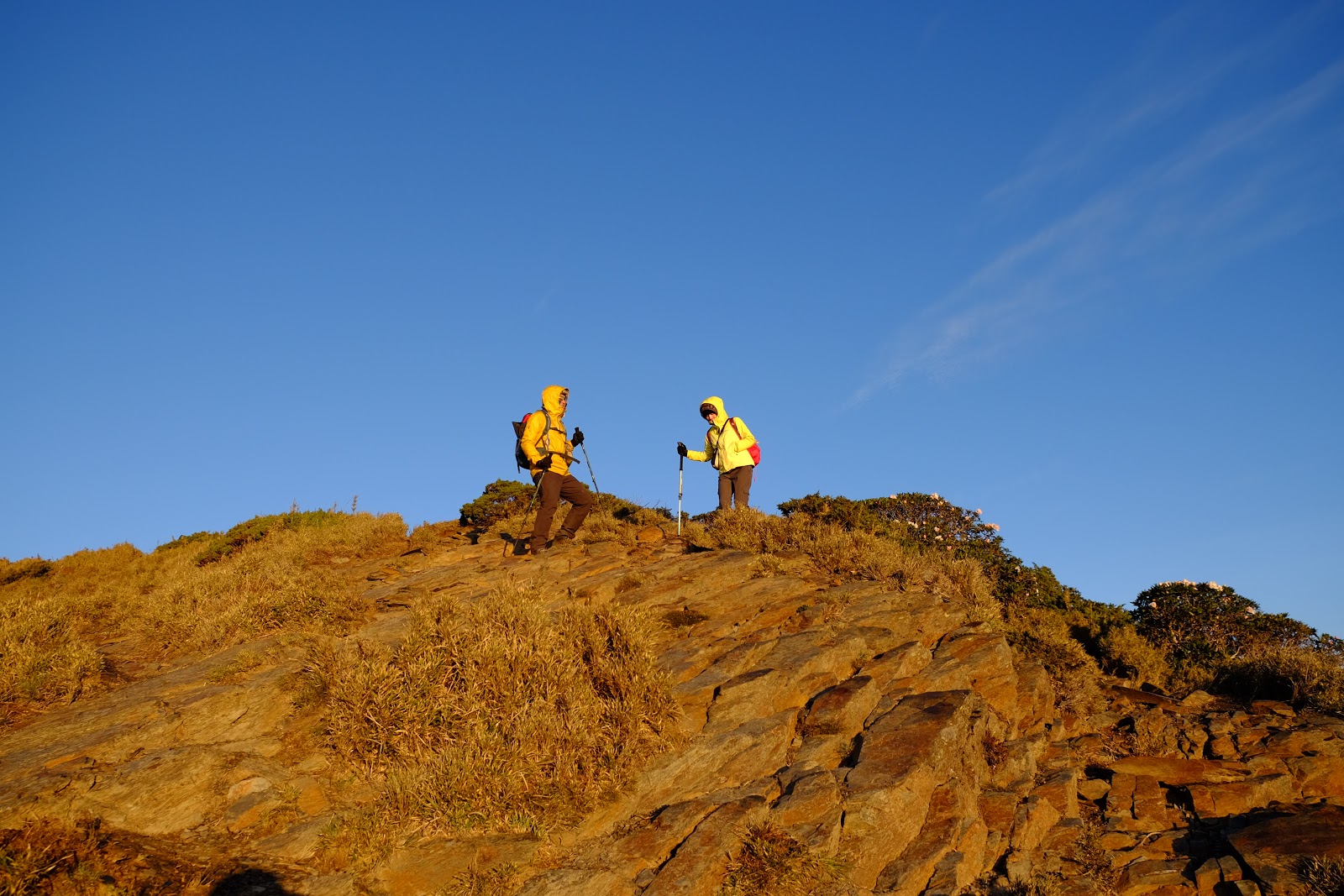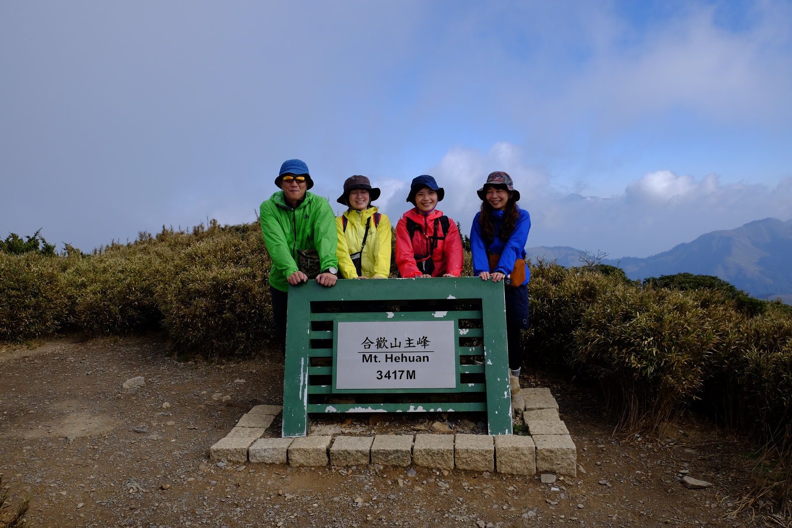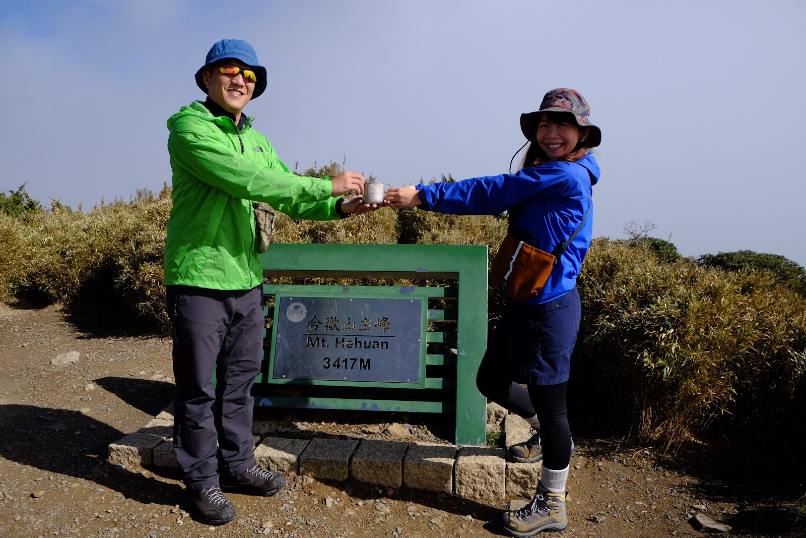 黃捨與丁力波都是在美國認識十幾年的朋友,一直覺得自己很幸運,身邊的好朋友們都是喜歡戶外的夥伴,不論是跑步、露營、登山等,只要一出聲都會有志同道合的好友一起出發。合歡主峰是他們兩人的第一座百岳,看到他們開心的表情,不管是簡單或難、有沒有登頂過都不重要,對我而言,與其多收集一顆百岳,還不如多增加一位愛山的朋友來得更讓人滿足。
