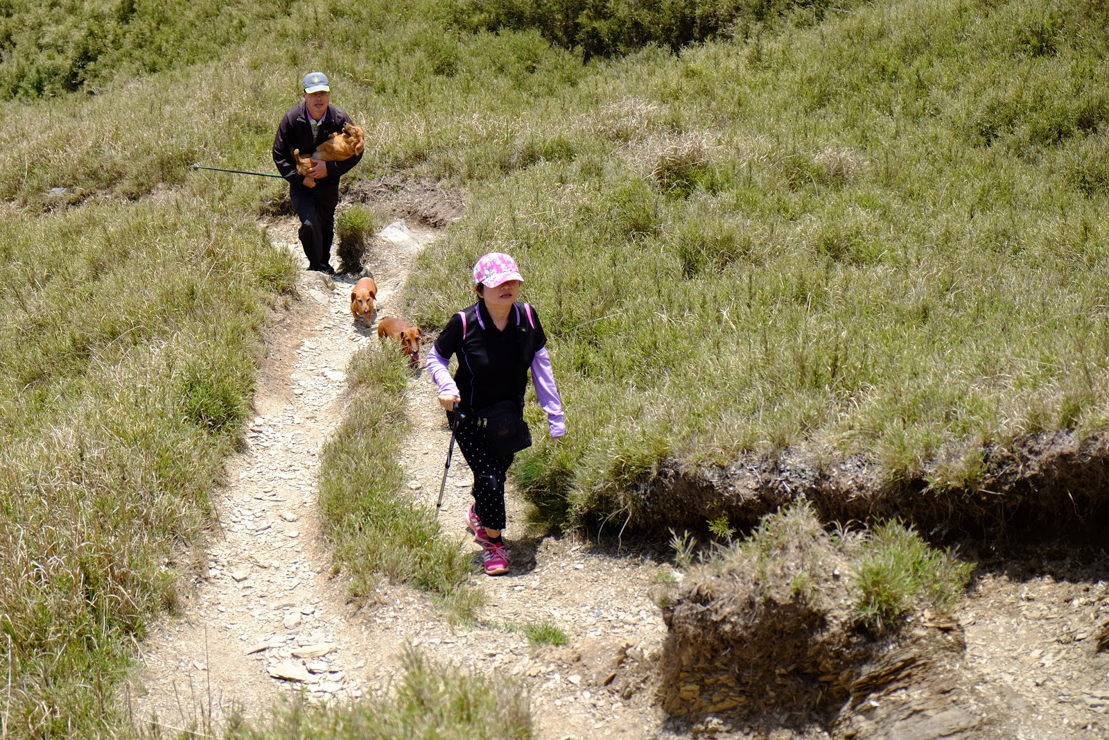 ↑一對夫妻帶著三個毛小孩一起爬山,先生手中抱著的那知不知道是不是最愛撒嬌的一個,真的是太可愛了