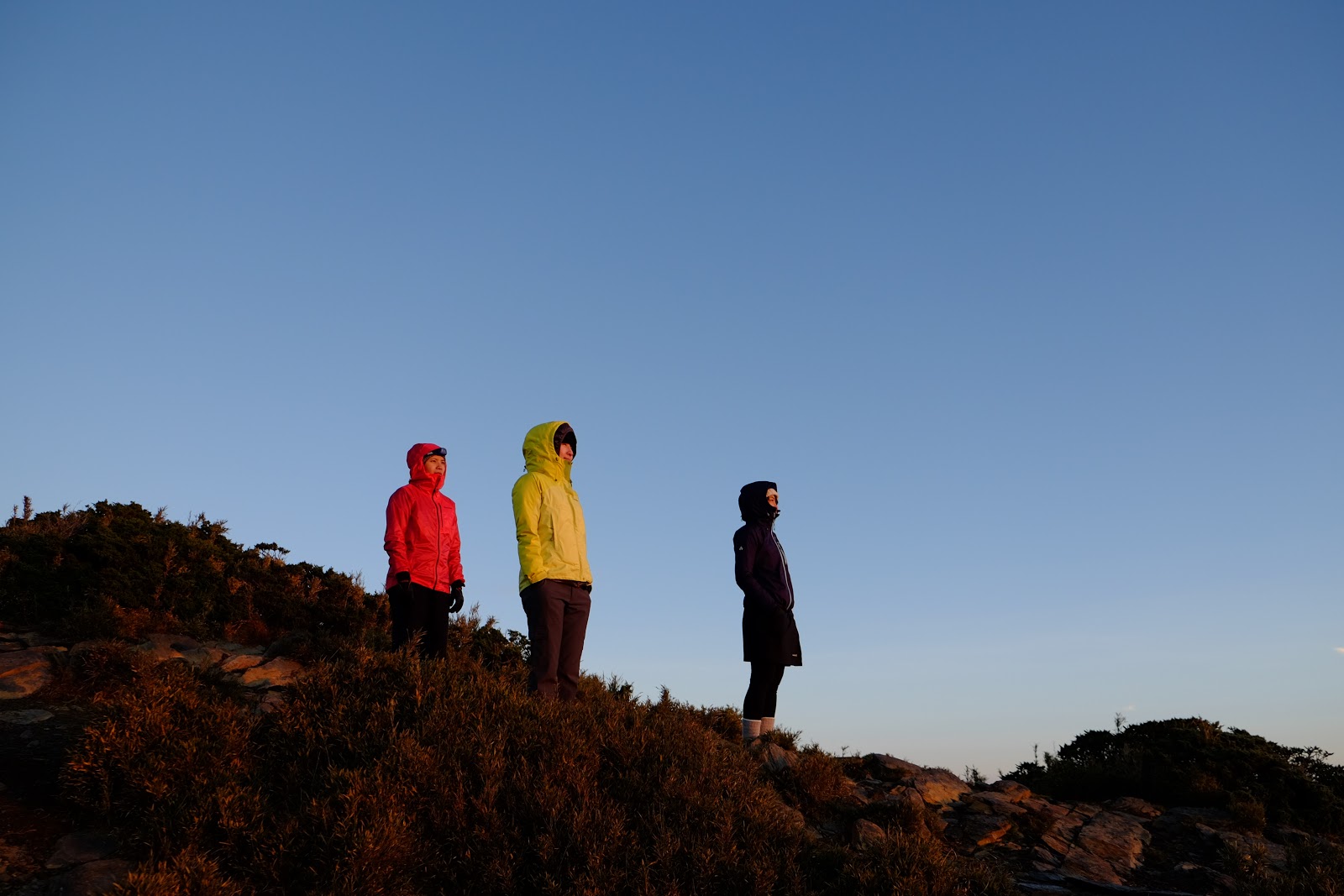 有的時候,讓宇宙微微震動的,不是這樣屏息的寬闊絕境,而是我一回頭你們臉上出神的光彩,因為山,我們走進彼此的心。看著你們心滿意足、驚艷萬分的表情,夥伴緊密膠著感油然而生,那種喜歡山、驚嘆山、親密山的承諾不言而喻。
