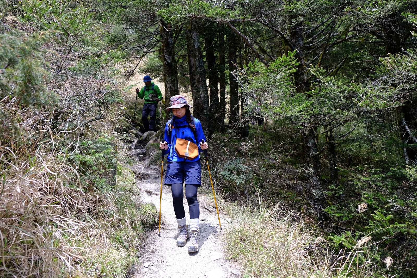 把車停在昆陽停車場,上坡1公里後就能看到登山口,合歡主峰步道整理得非常好,平坦平緩又寬大好走,沒有階梯也讓人走起來輕鬆愜意。