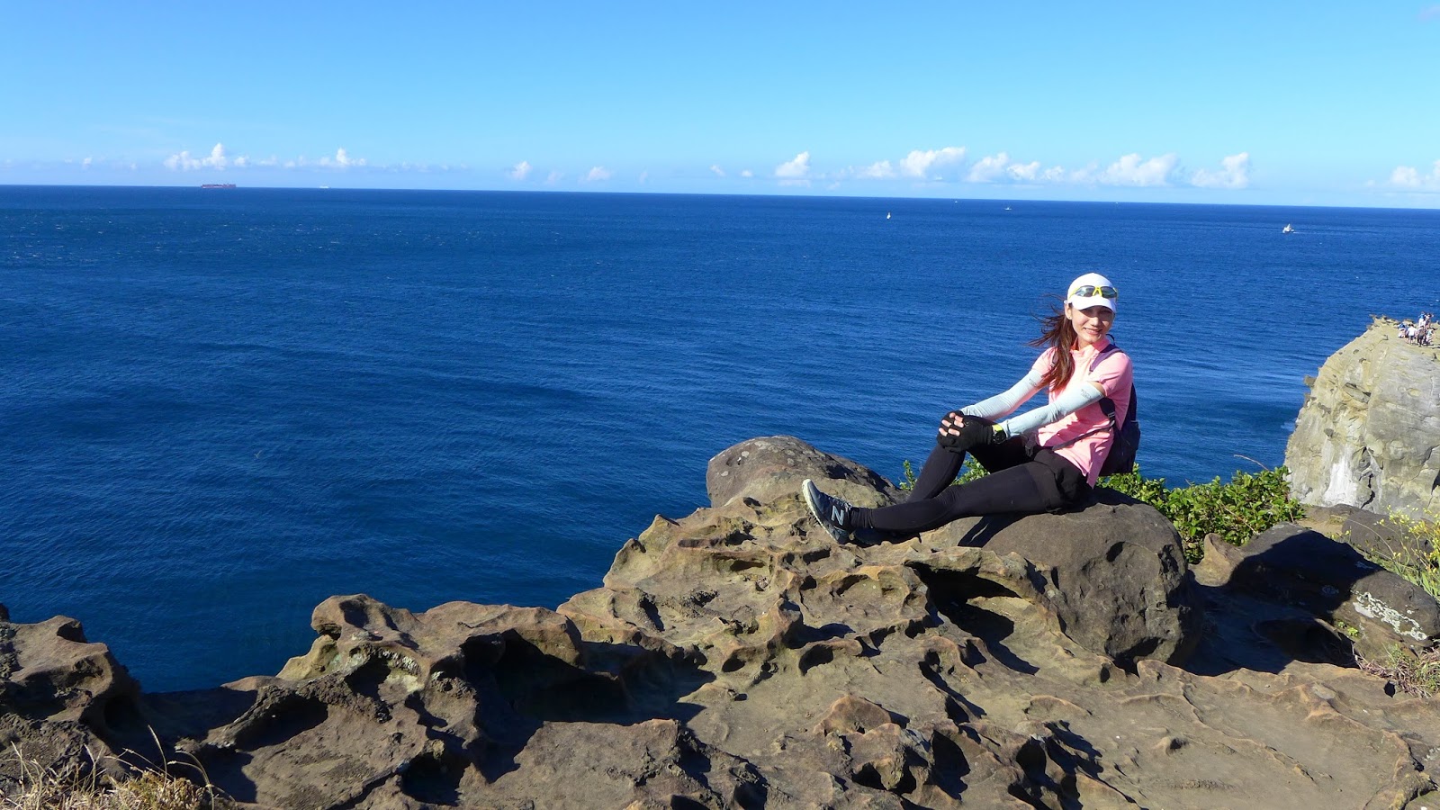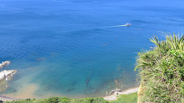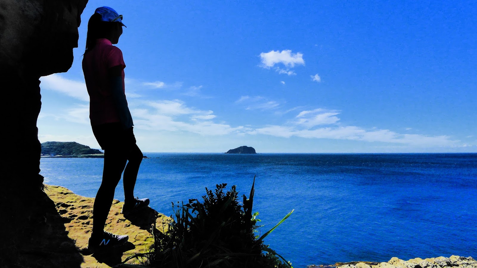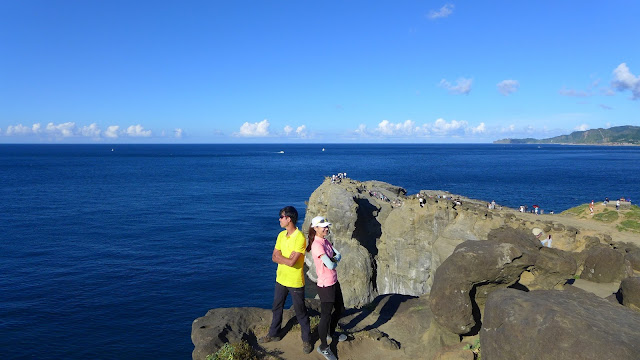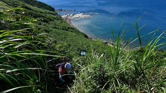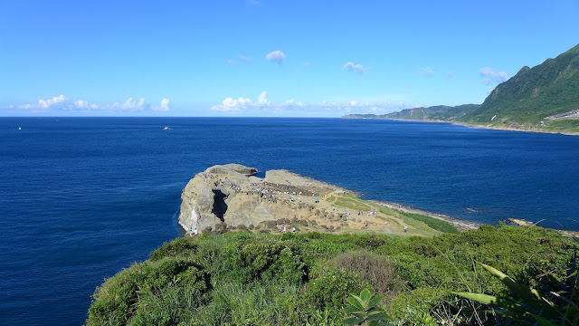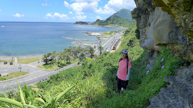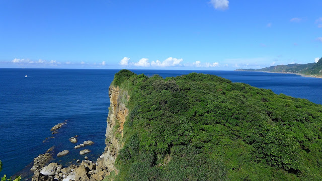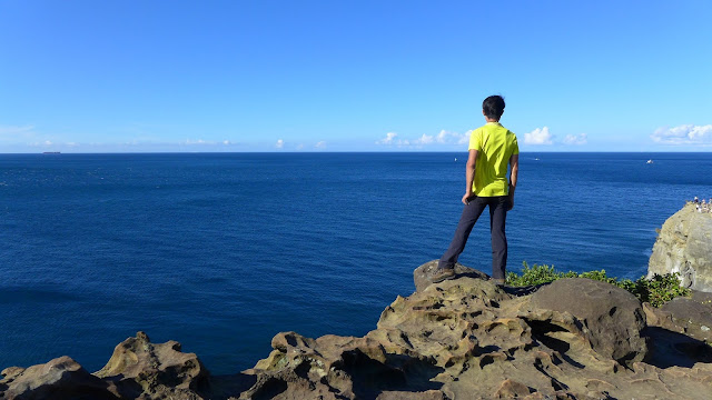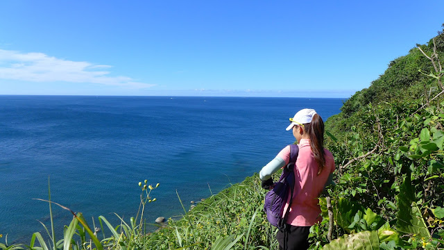 再來鑽過山林投洞後經蕃仔澳山續往象鼻岩,人多得誇張,就不去象鼻岩了,在這比較沒人的地方休息,海及天在下午這時刻真的是藍到有如畫一般,行程到此大至end,沿海岸走回酋長岩登山口正好完成第4個圈圈了。