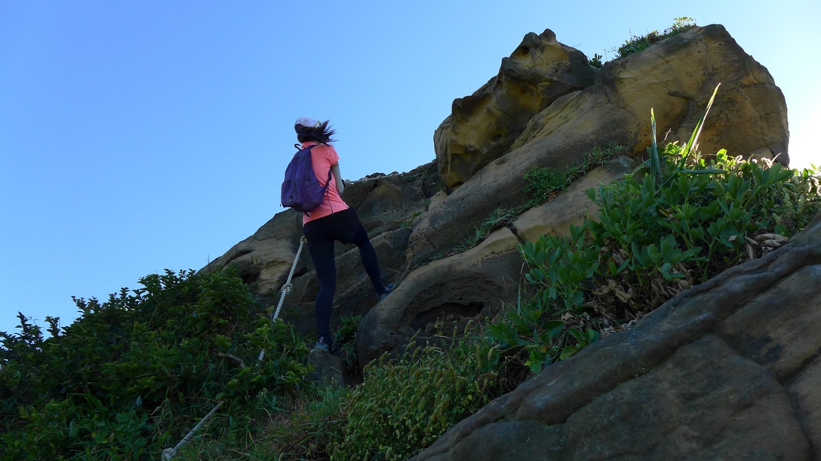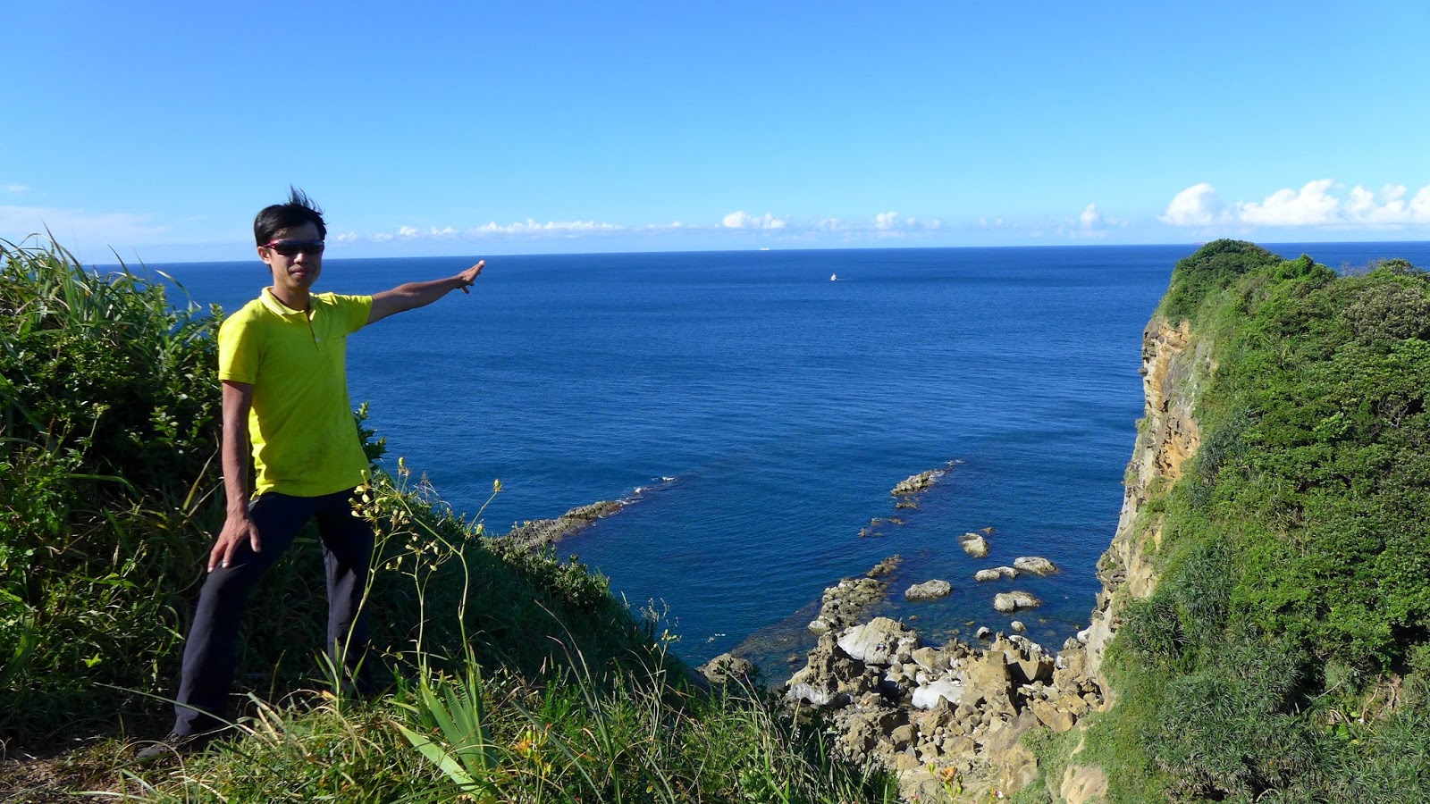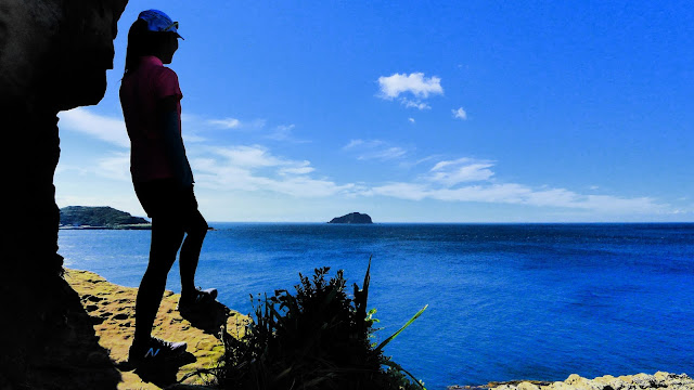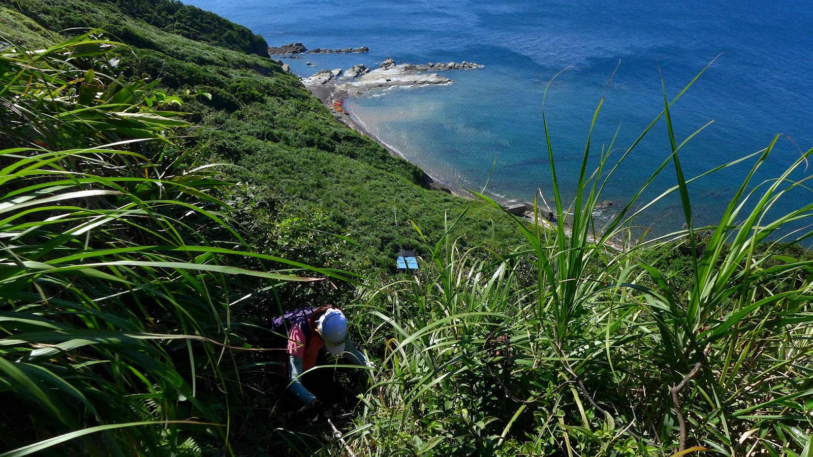 再來鑽過山林投洞後經蕃仔澳山續往象鼻岩,人多得誇張,就不去象鼻岩了,在這比較沒人的地方休息,海及天在下午這時刻真的是藍到有如畫一般,行程到此大至end,沿海岸走回酋長岩登山口正好完成第4個圈圈了。