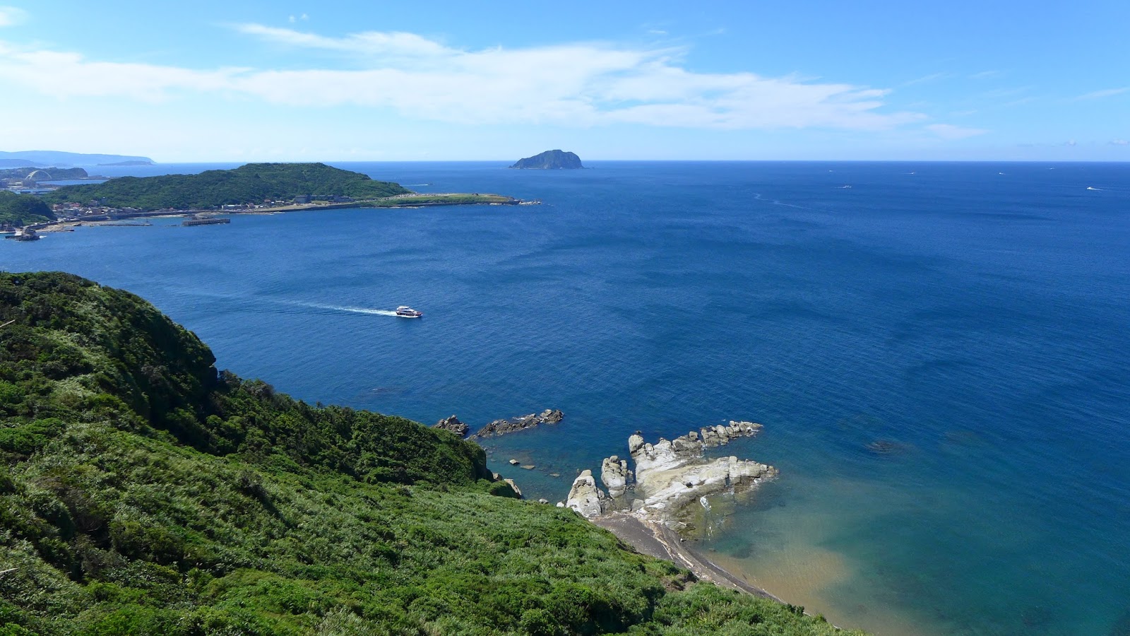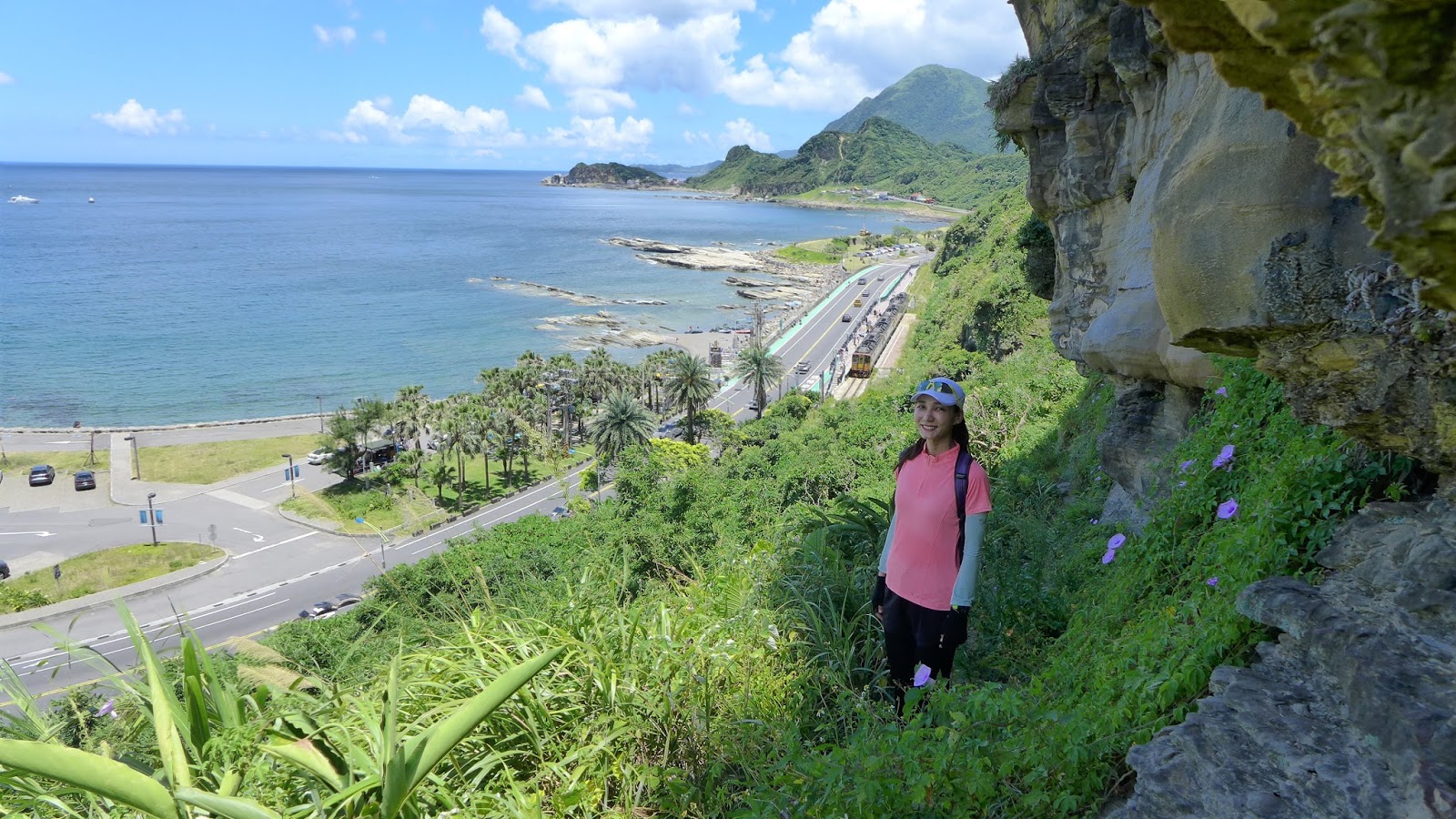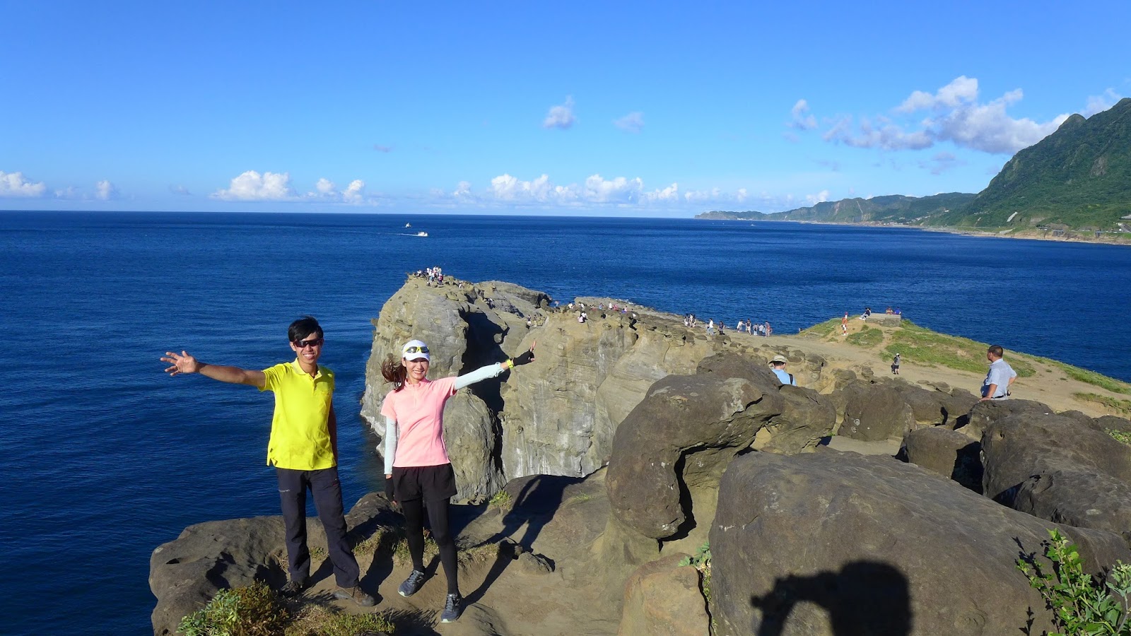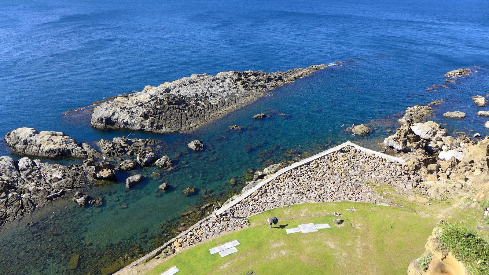 再來鑽過山林投洞後經蕃仔澳山續往象鼻岩,人多得誇張,就不去象鼻岩了,在這比較沒人的地方休息,海及天在下午這時刻真的是藍到有如畫一般,行程到此大至end,沿海岸走回酋長岩登山口正好完成第4個圈圈了。