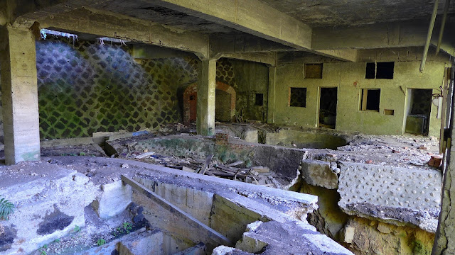 經過以前海底大斜坑的轉運站,通過注意別踩空