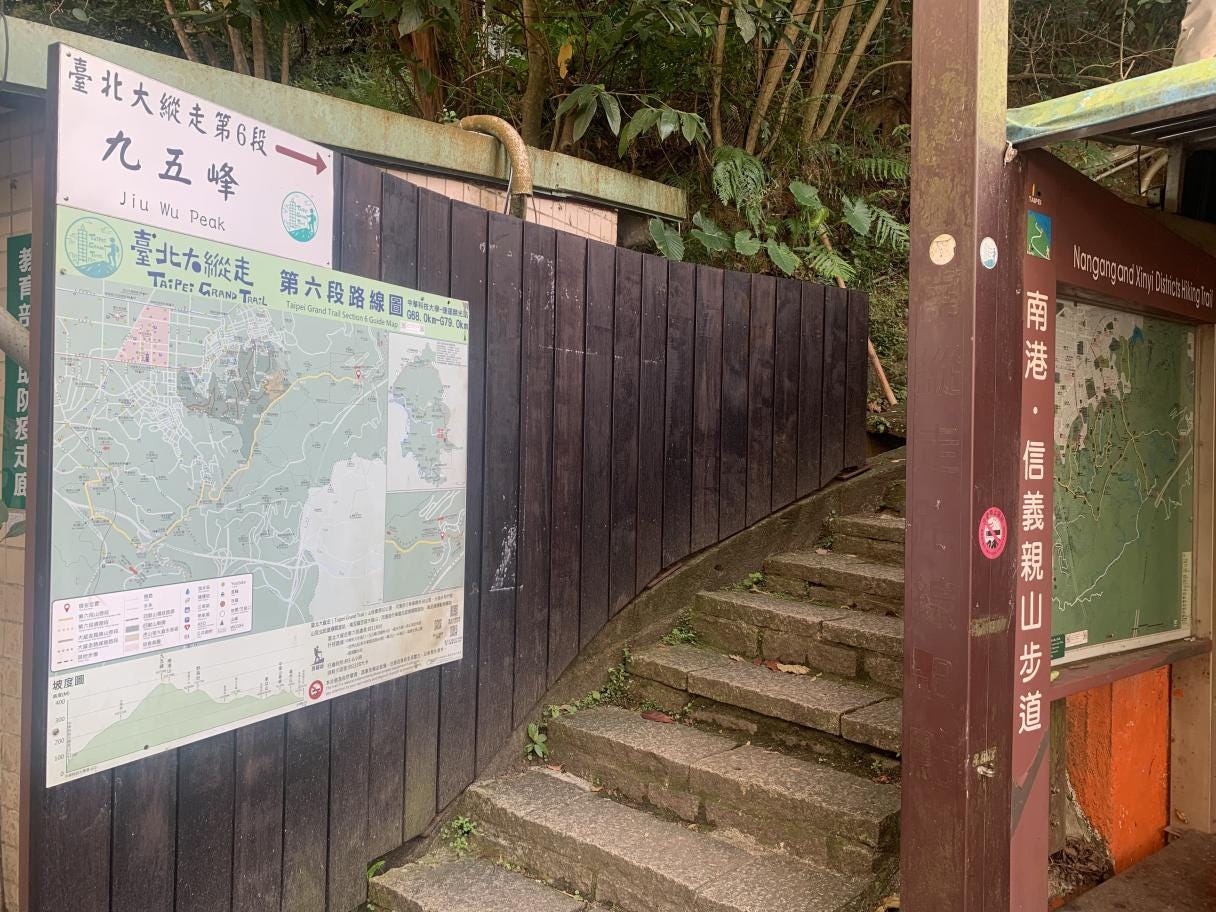 走到一個樓梯口寫著台北大縱走第六段,往中華科技大學,就照著路標走就對了。