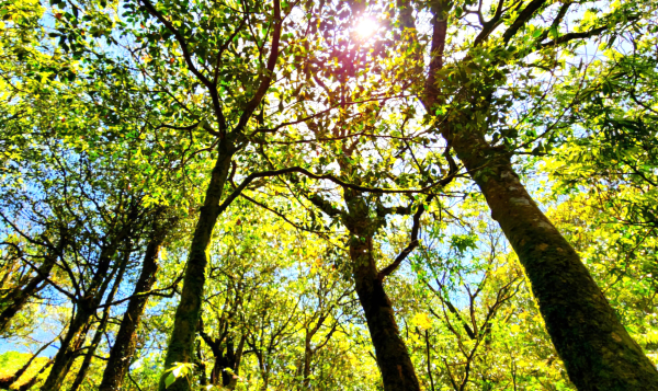 逐鹿山因海拔較低,這裡的山毛櫸型態較小,樹皮也增生了許多附生植物,但整體數量還不少,而且目前呈現黃綠色為主,不知道是不是因為陽光照射的關係,有的還金黃閃閃呢,真是美極了,看著古老的物種欣欣向榮,讓人肅然起敬,讚嘆不已