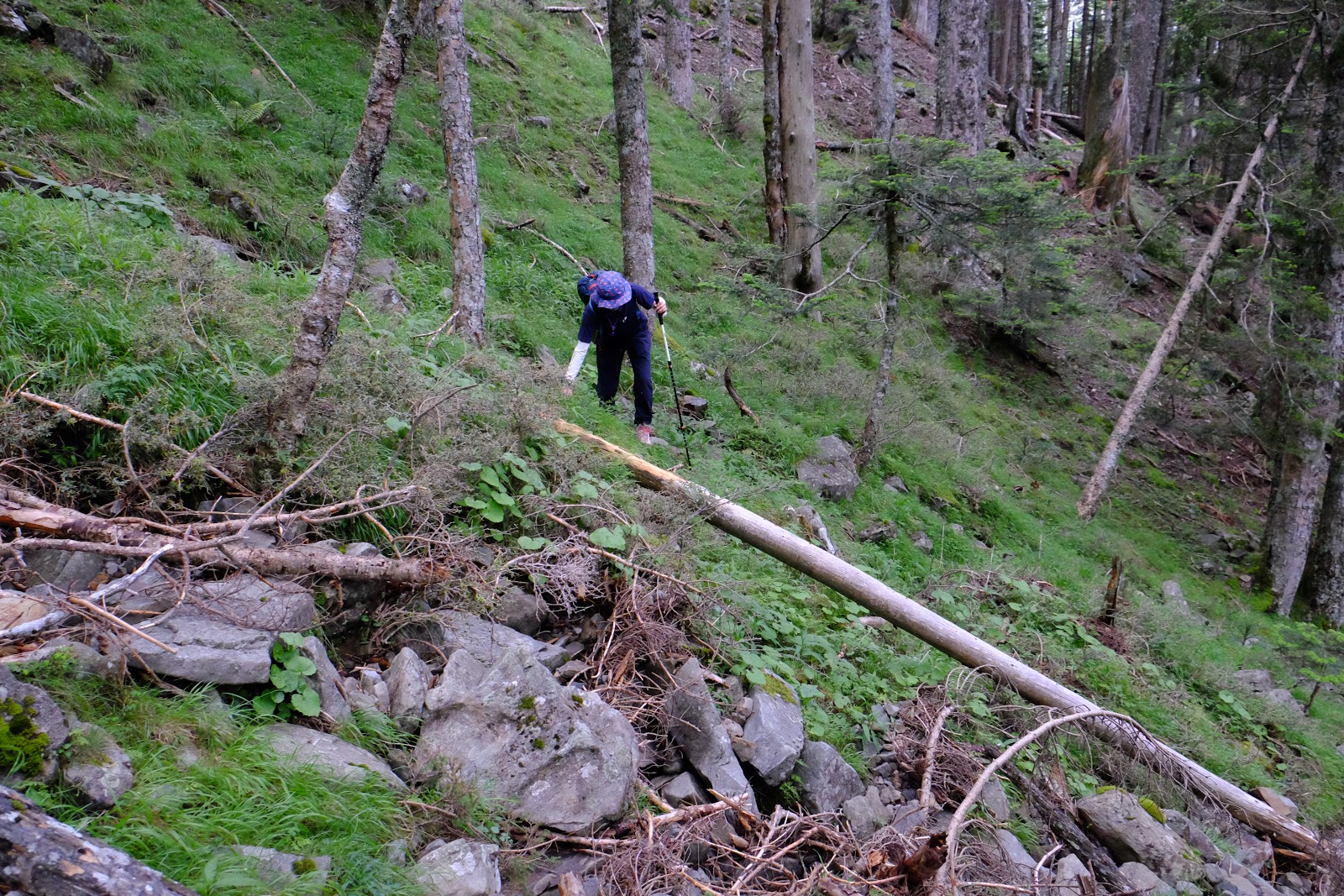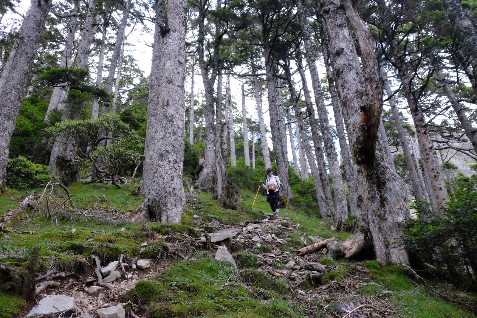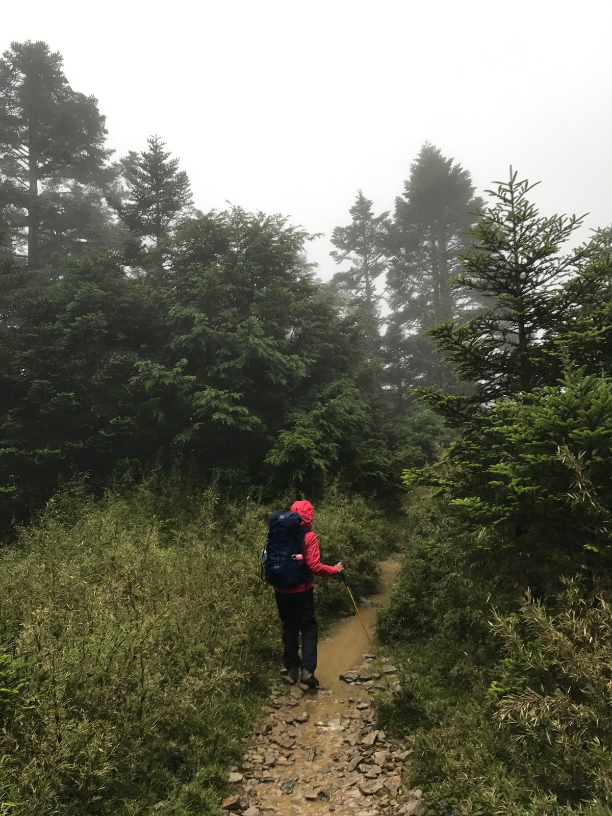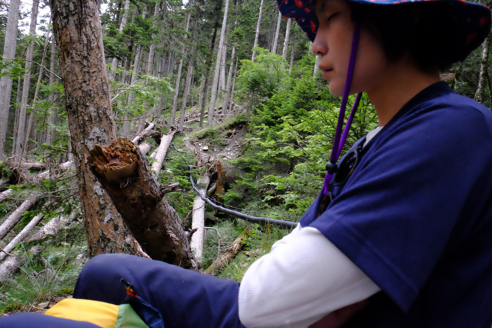 回到黑森林已經是中午時分,頂上的艷陽已經消失,雲霧開始瀰漫,今天應該還是會下起午後雷陣雨。不過一路上仍陸陸續續遇到揹著重裝正準備出黑森林往雪北山屋前進的隊伍,希望能再大雨前抵達啊!