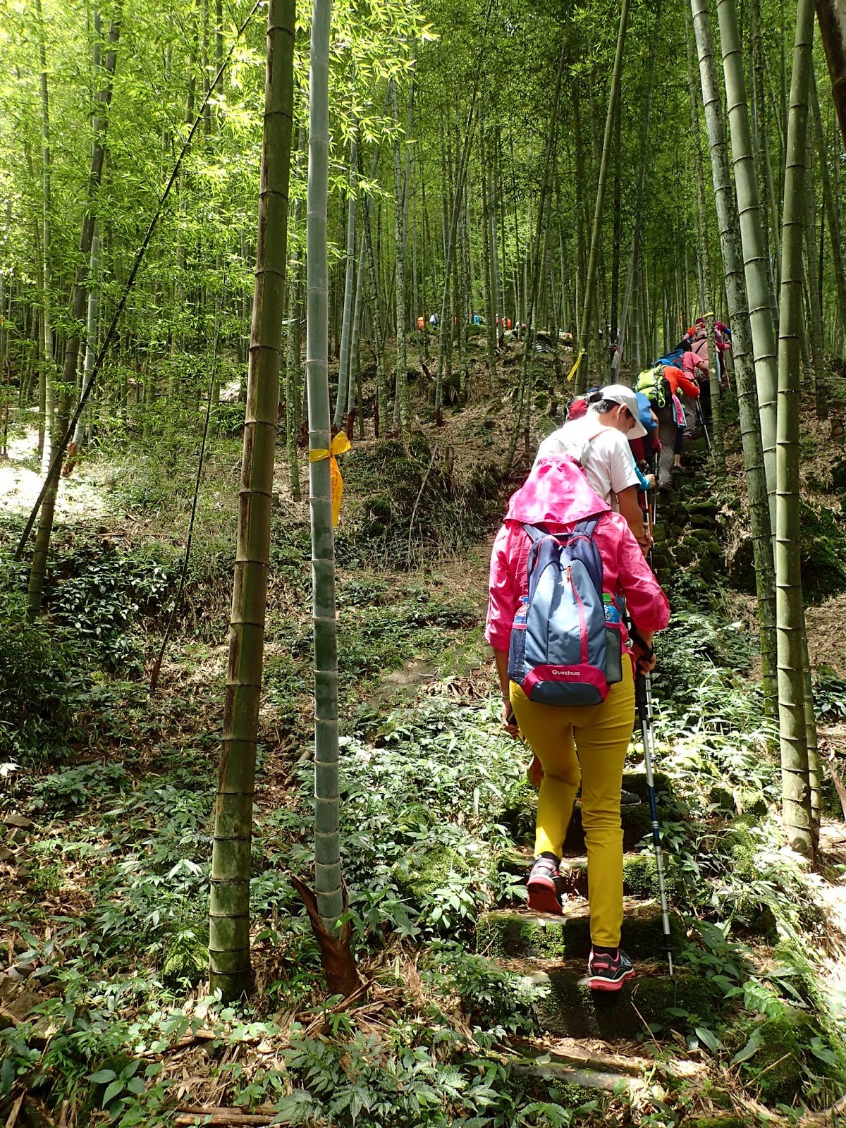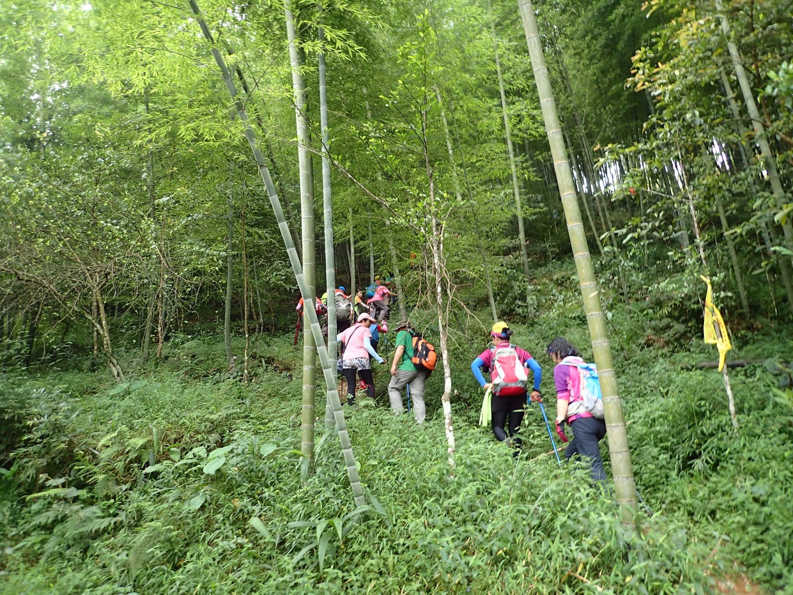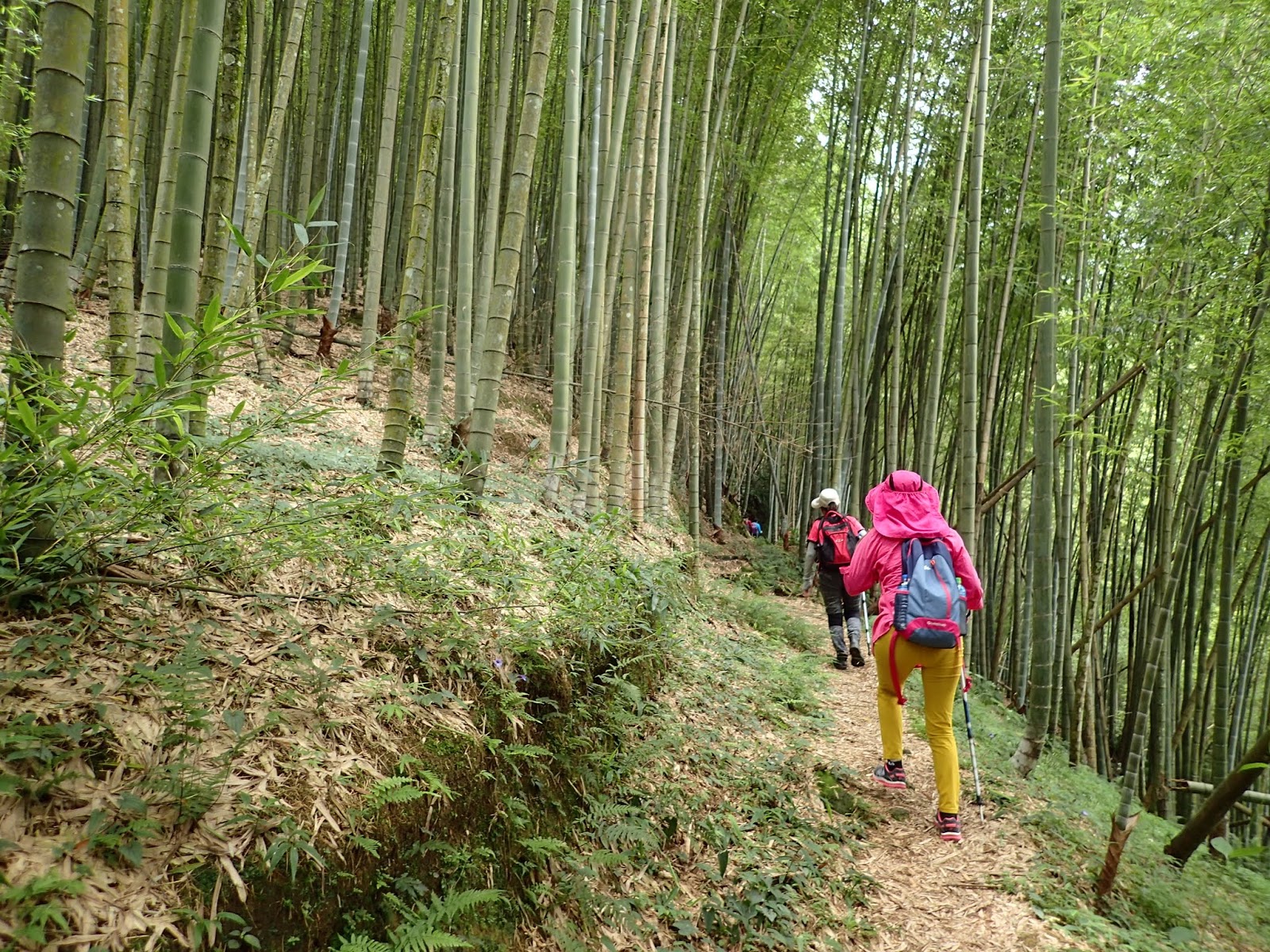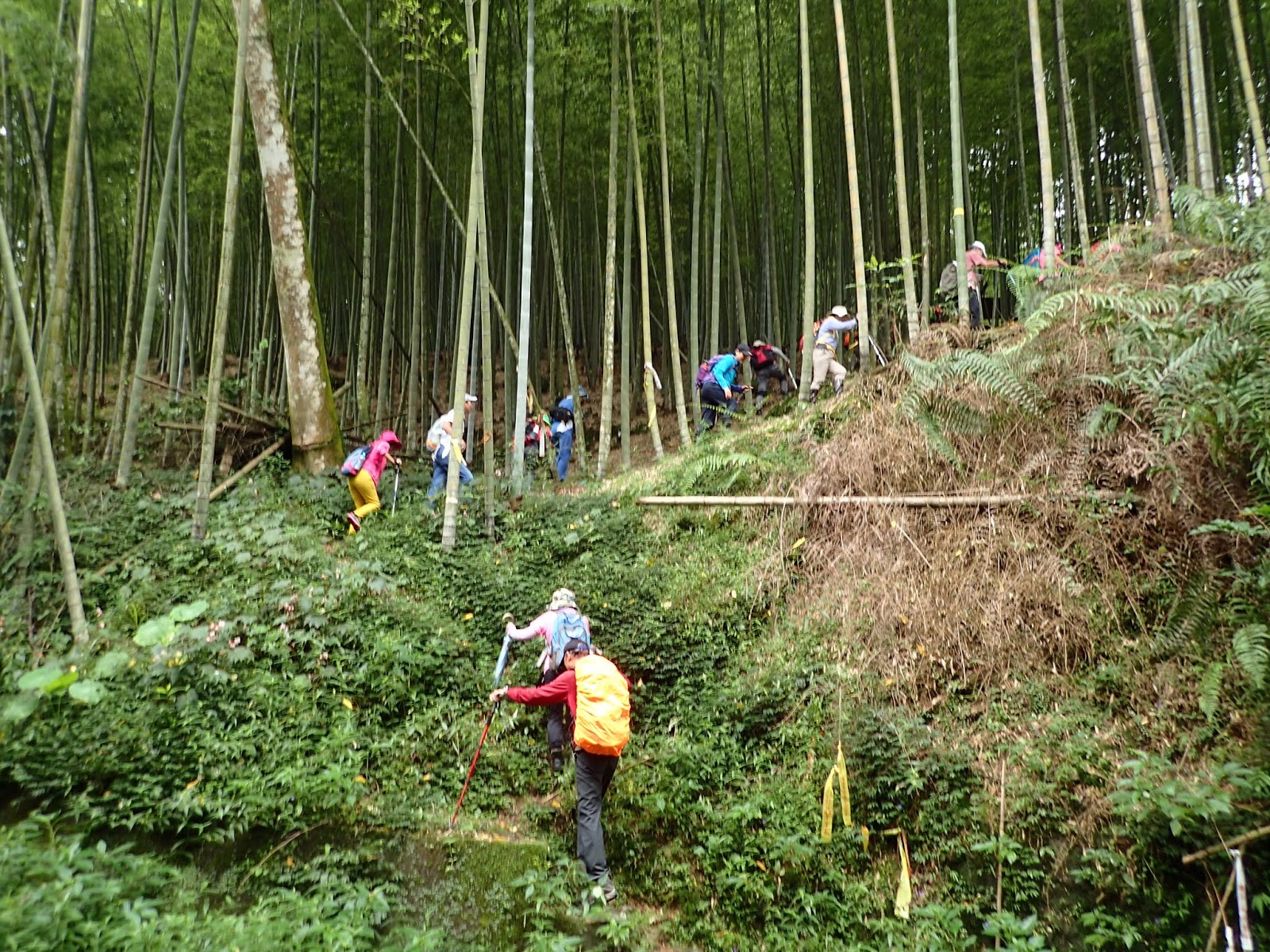 前頭是一片嫩綠青翠的孟宗竹林, 這一路都是爬坡陡上