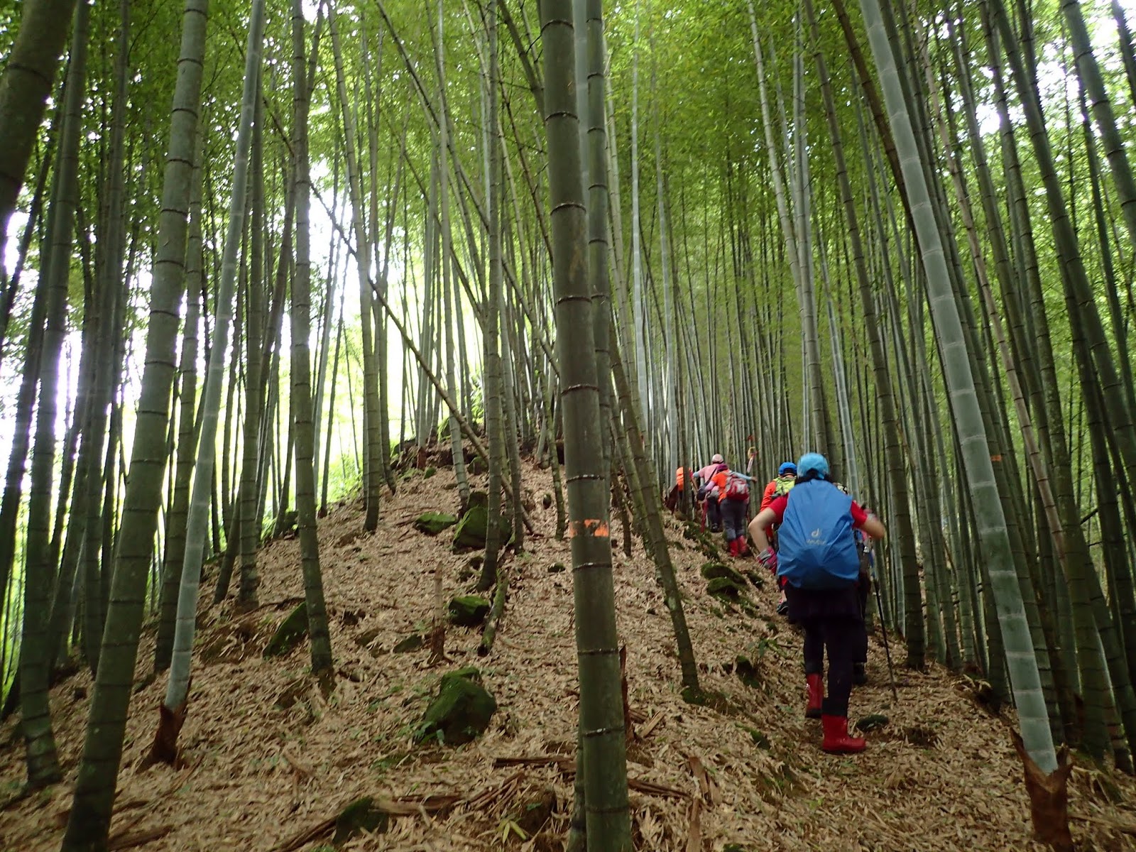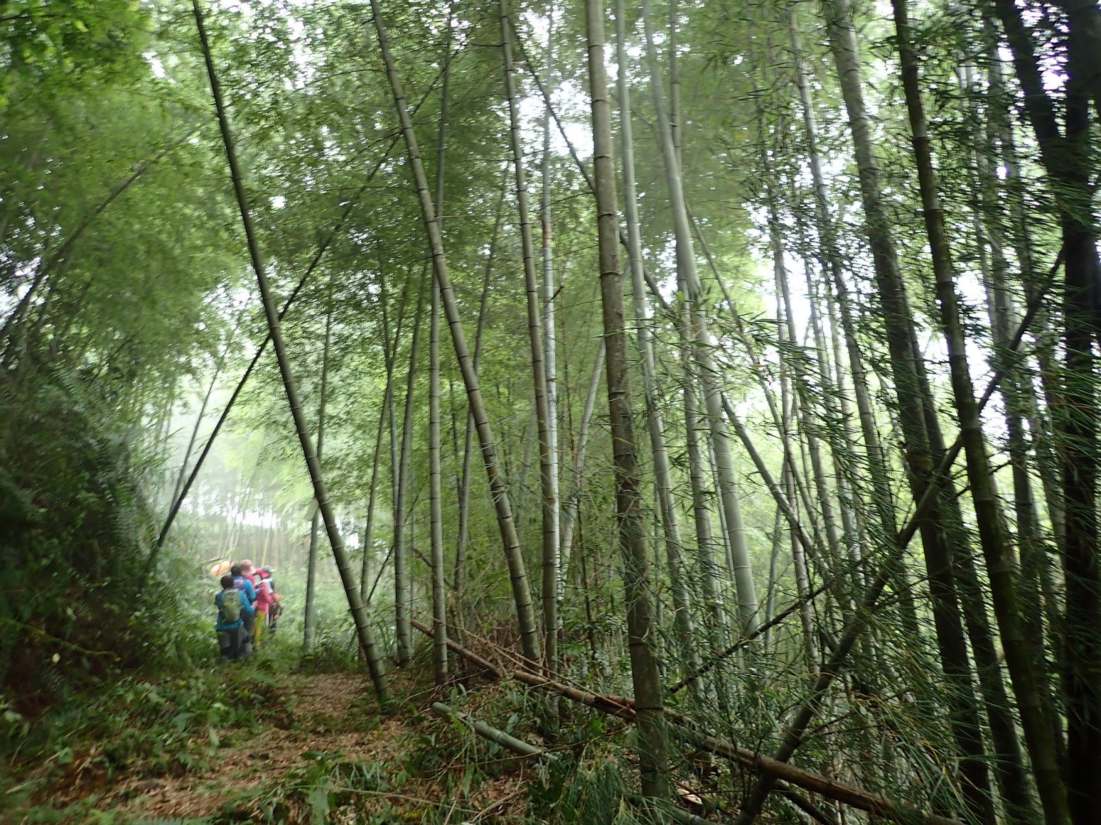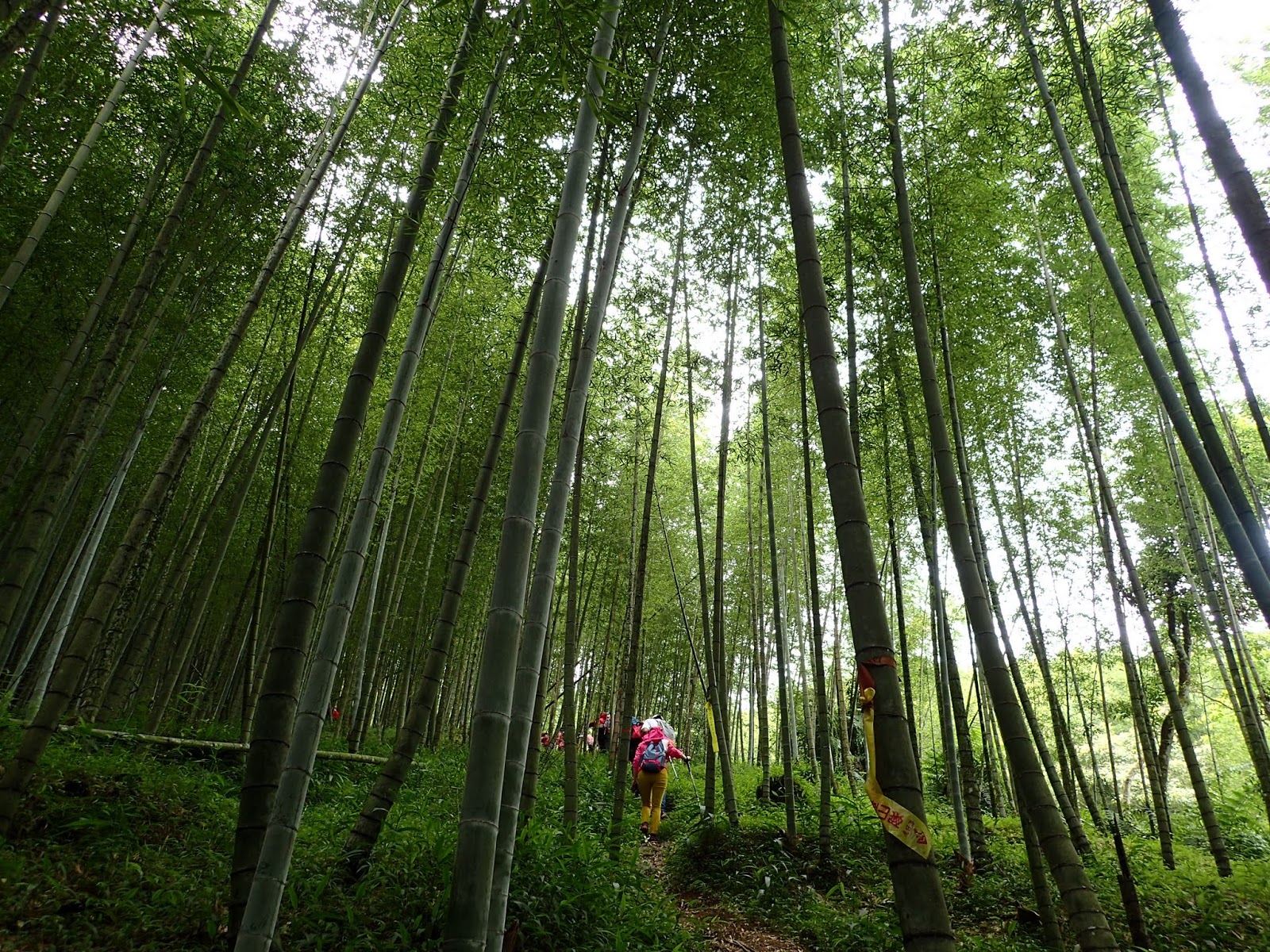 前頭是一片嫩綠青翠的孟宗竹林, 這一路都是爬坡陡上
