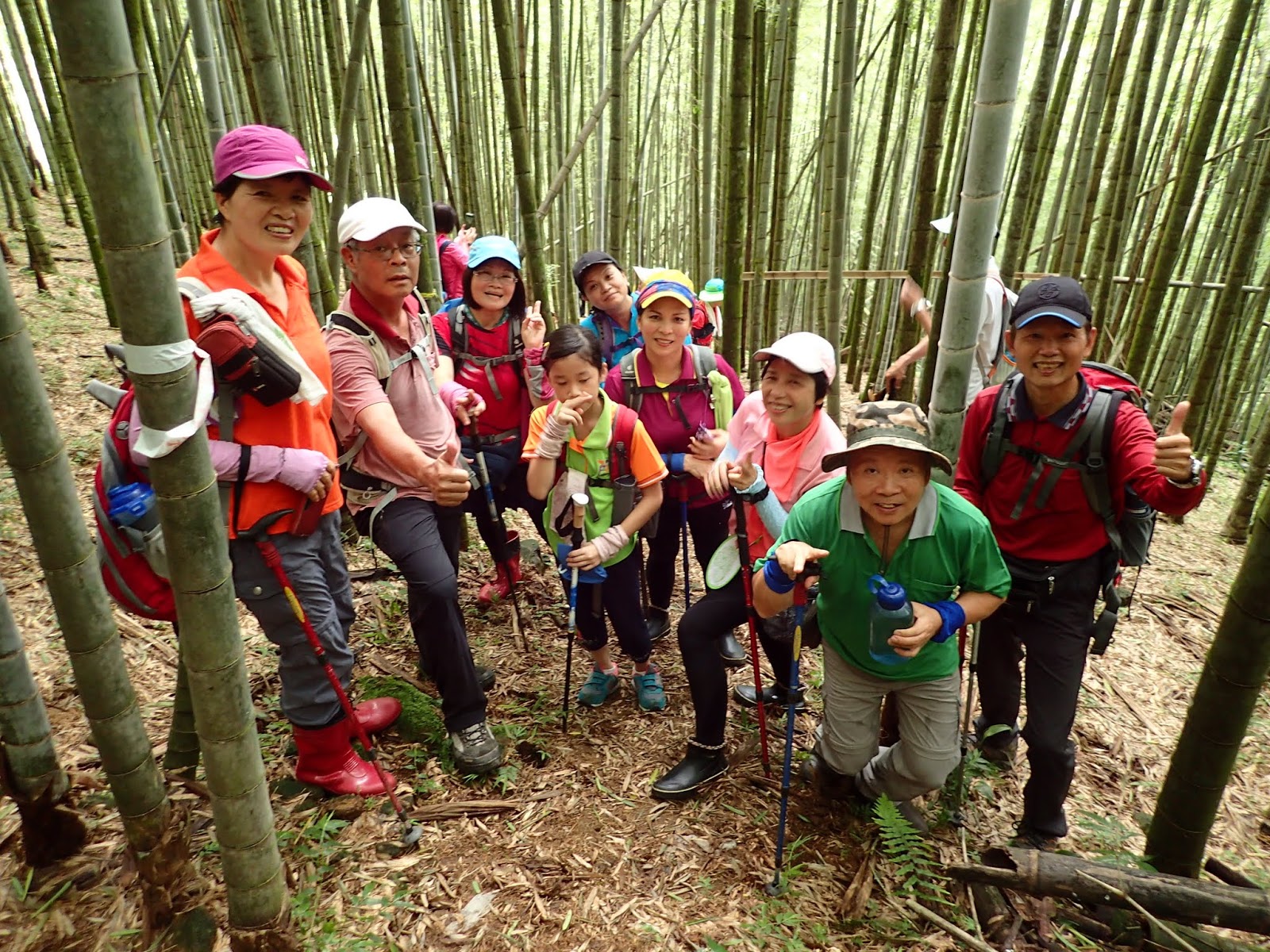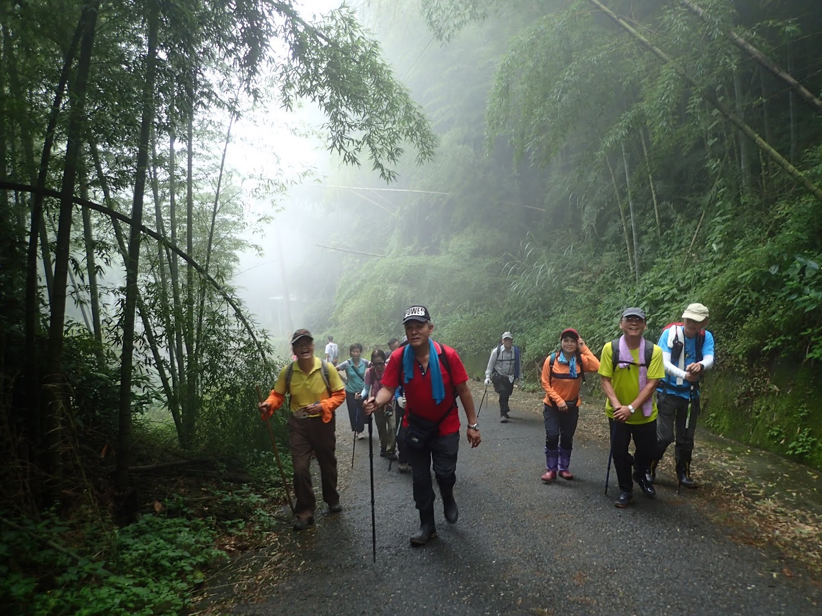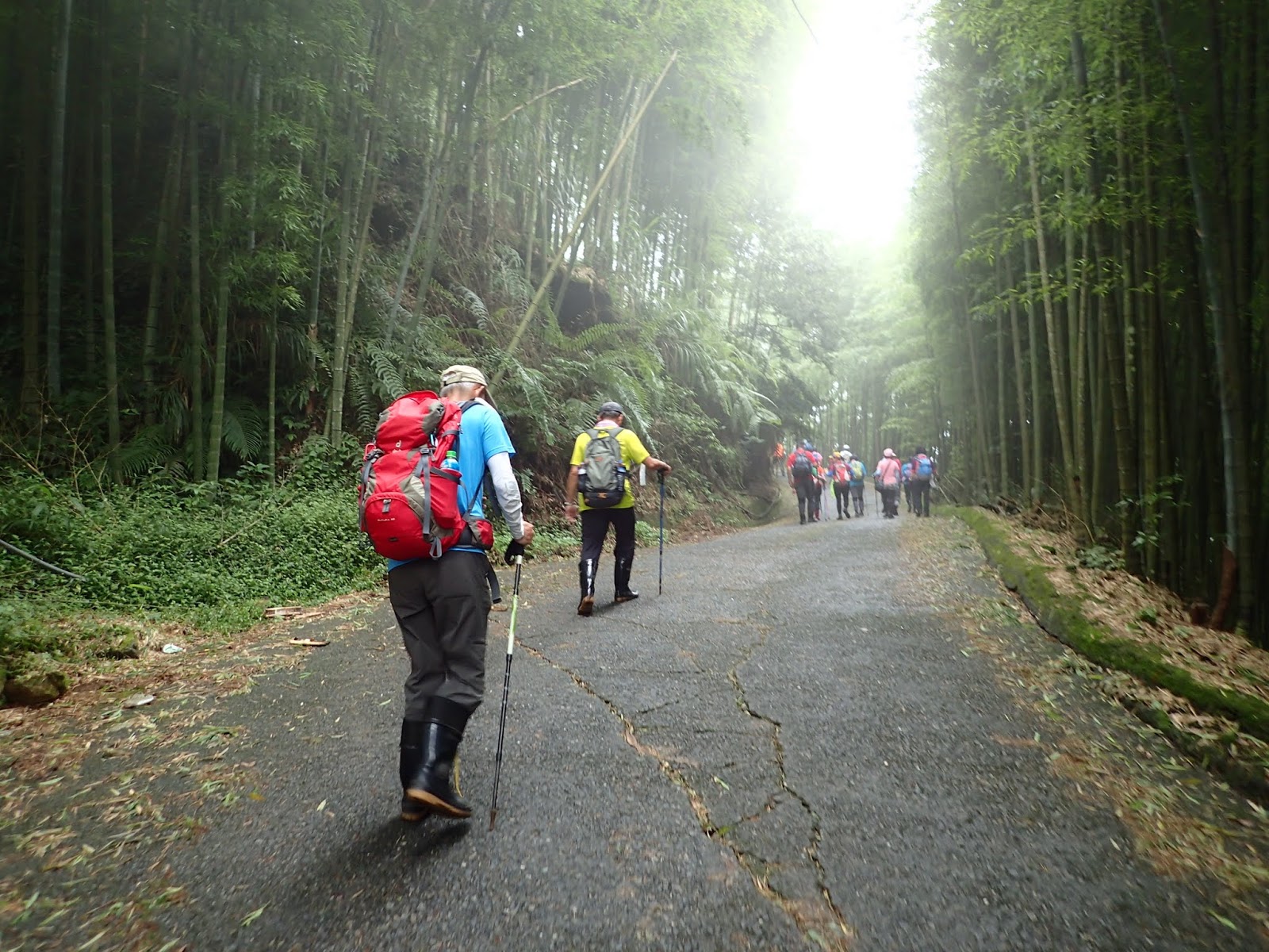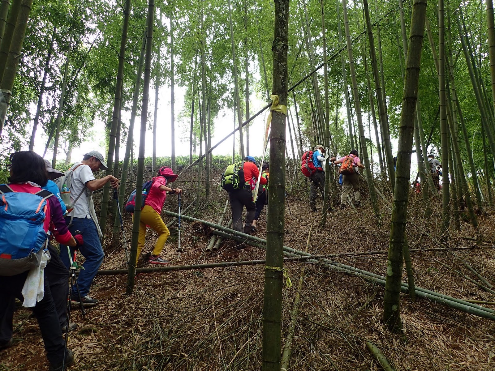 前頭是一片嫩綠青翠的孟宗竹林, 這一路都是爬坡陡上