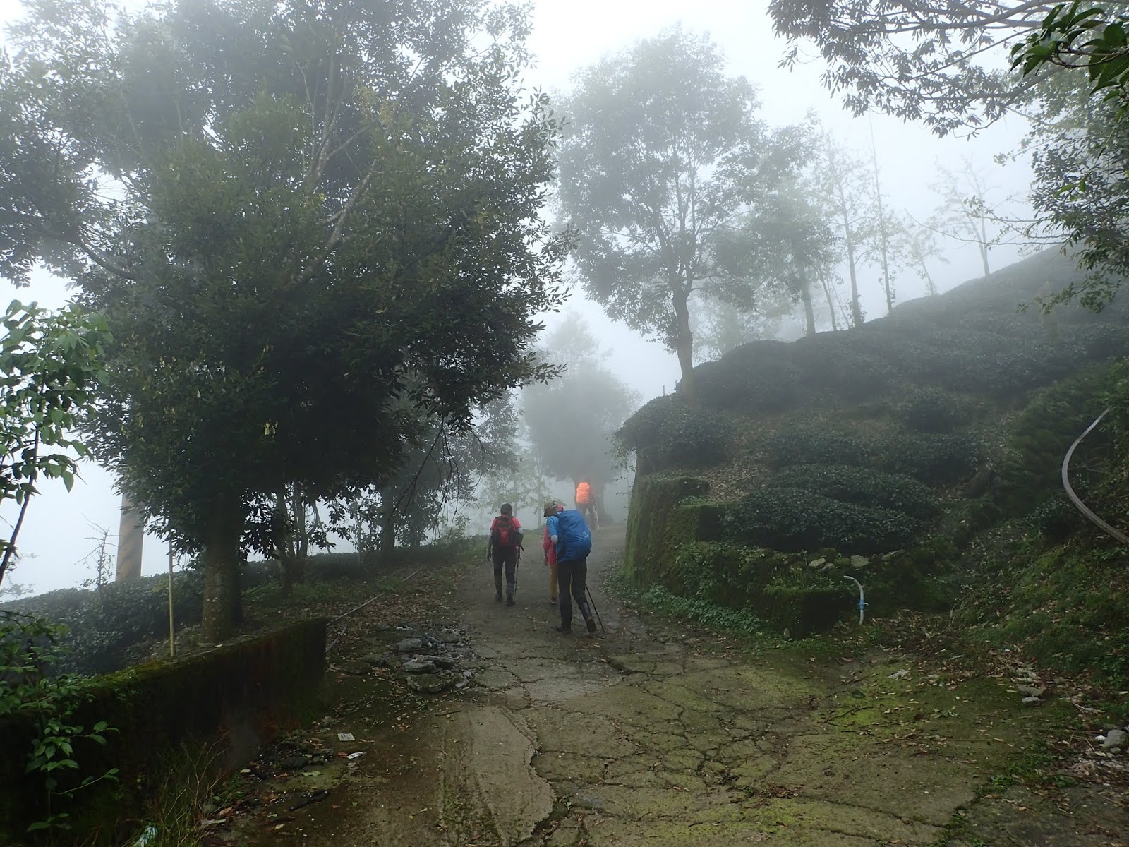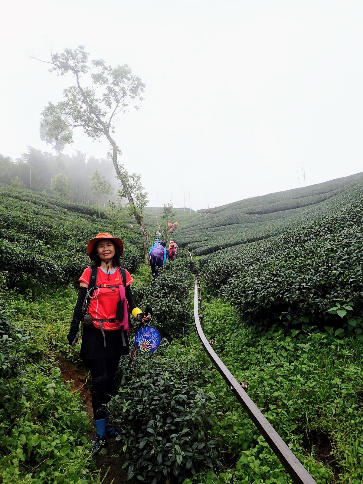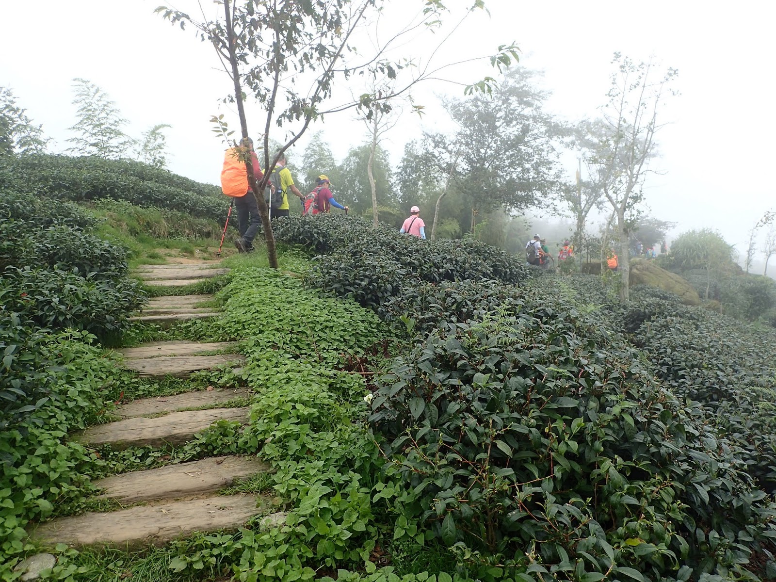 天空逐漸蒙上一層薄霧, 眼前綿延的茶園及樹木一片迷濛, 微風吹過說不出的舒服