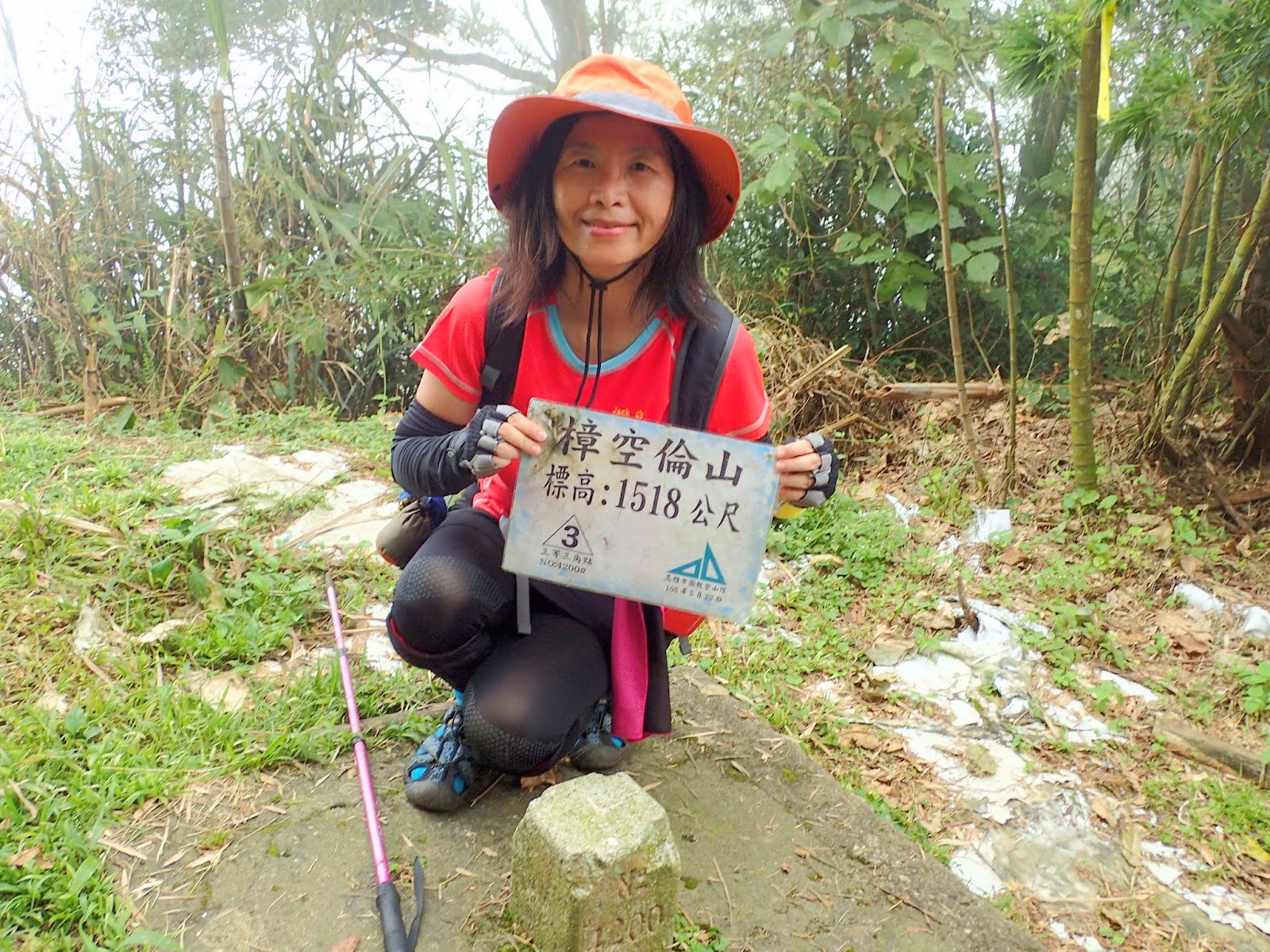 2:20 來到樟空崙山, 高度1518M, 三等三角點#4200, 與金柑樹山, 鳳凰山並稱溪頭三姝, 基石一旁鋪滿了麻袋露出, 看起來好像垃圾山挺破壞畫面的, 撿完三顆基石輕鬆完成任務, 準備回去囉