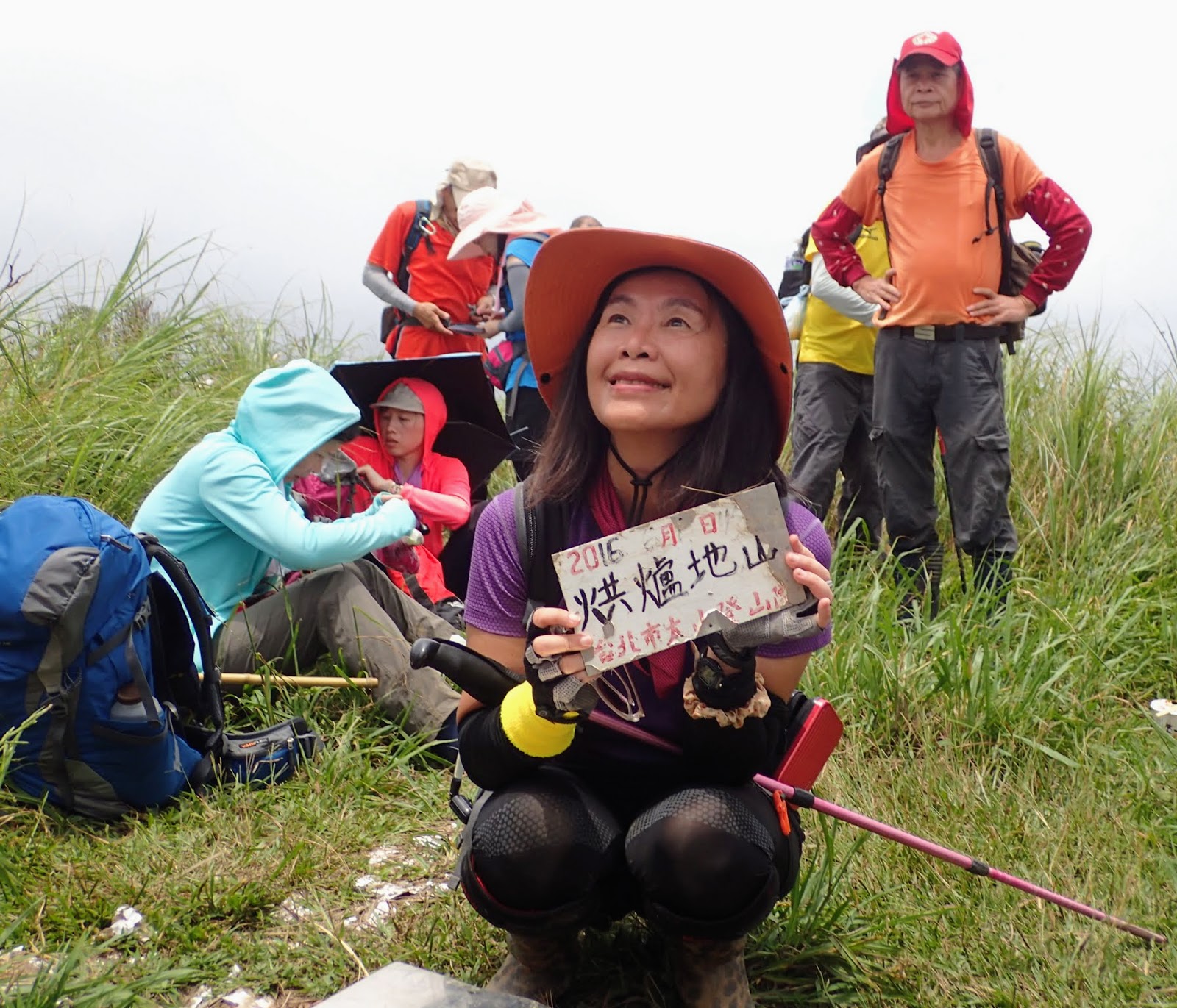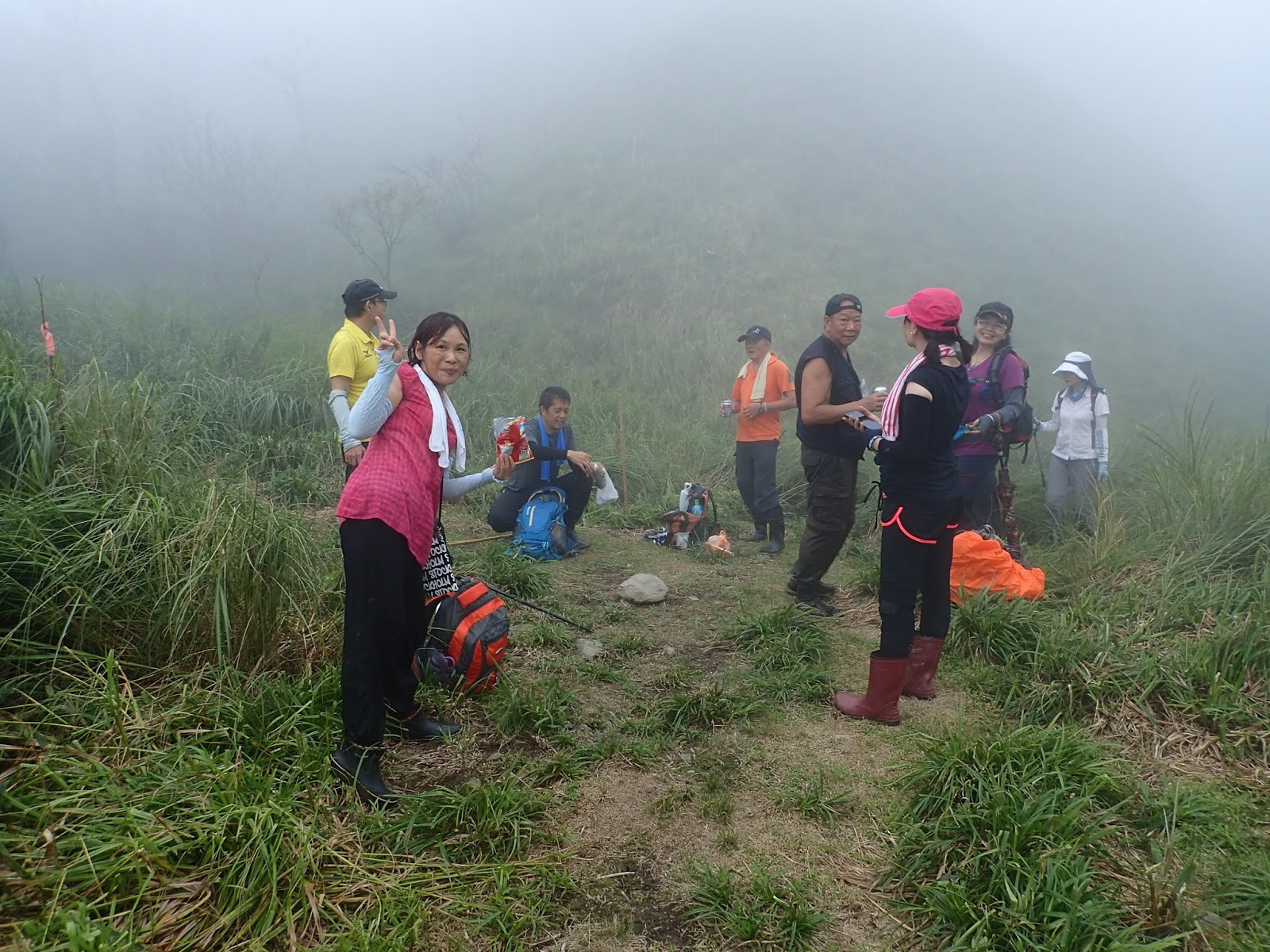 12:00 登頂烘爐地山, 海拔1,166M, 山頂有顆一等三角點, 是宜蘭五大名山之一, 由北往南分別是鶯子嶺山, 三角崙山, 烘爐地山, 大礁溪山, 阿玉山, 五座山岳位於台北與宜蘭的交界, 屬於雪山山脈...山頂上滿滿的人正在休息吃中餐