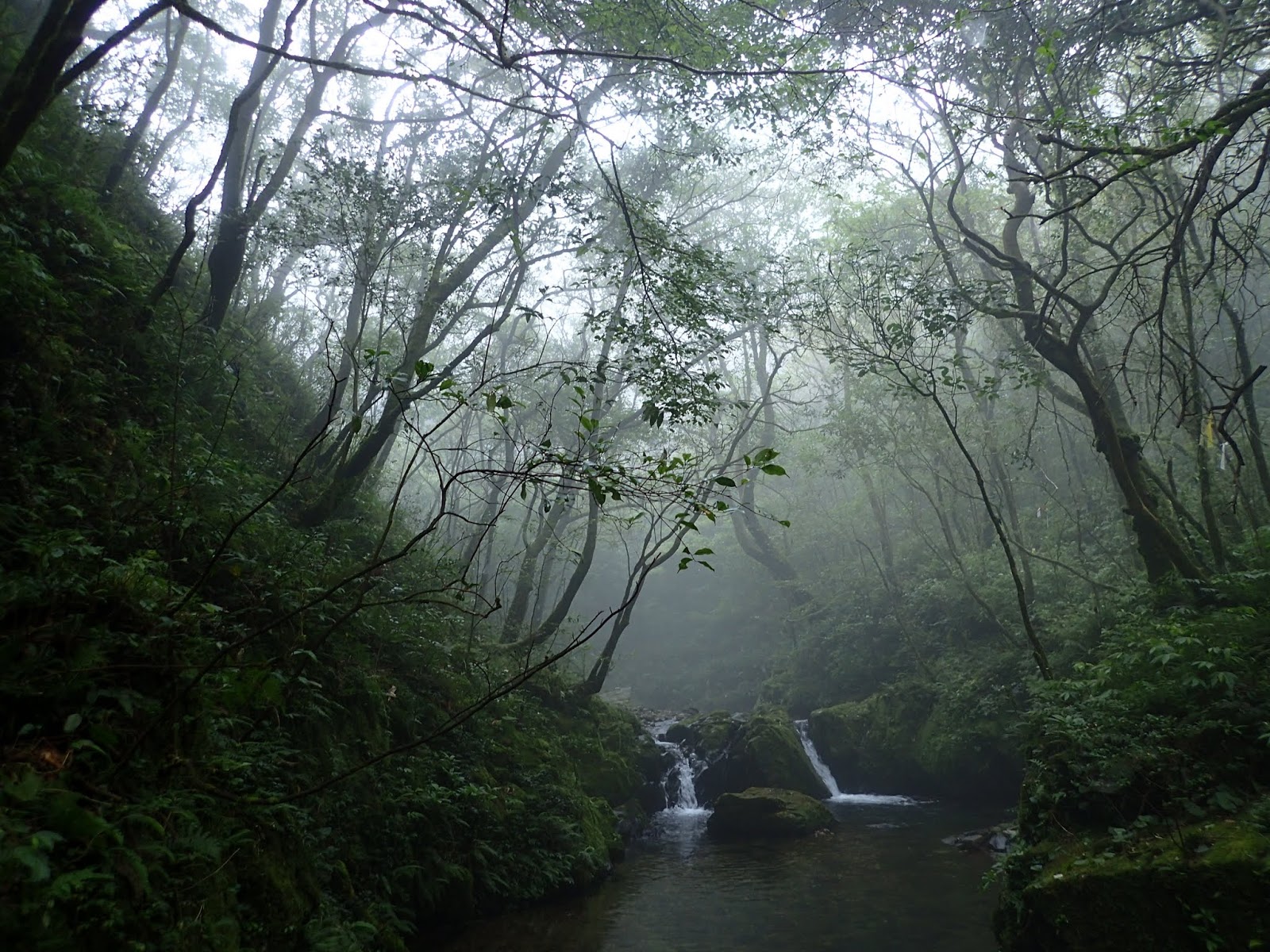 下過雨的路有點泥濘, 山上霧濛濛一片