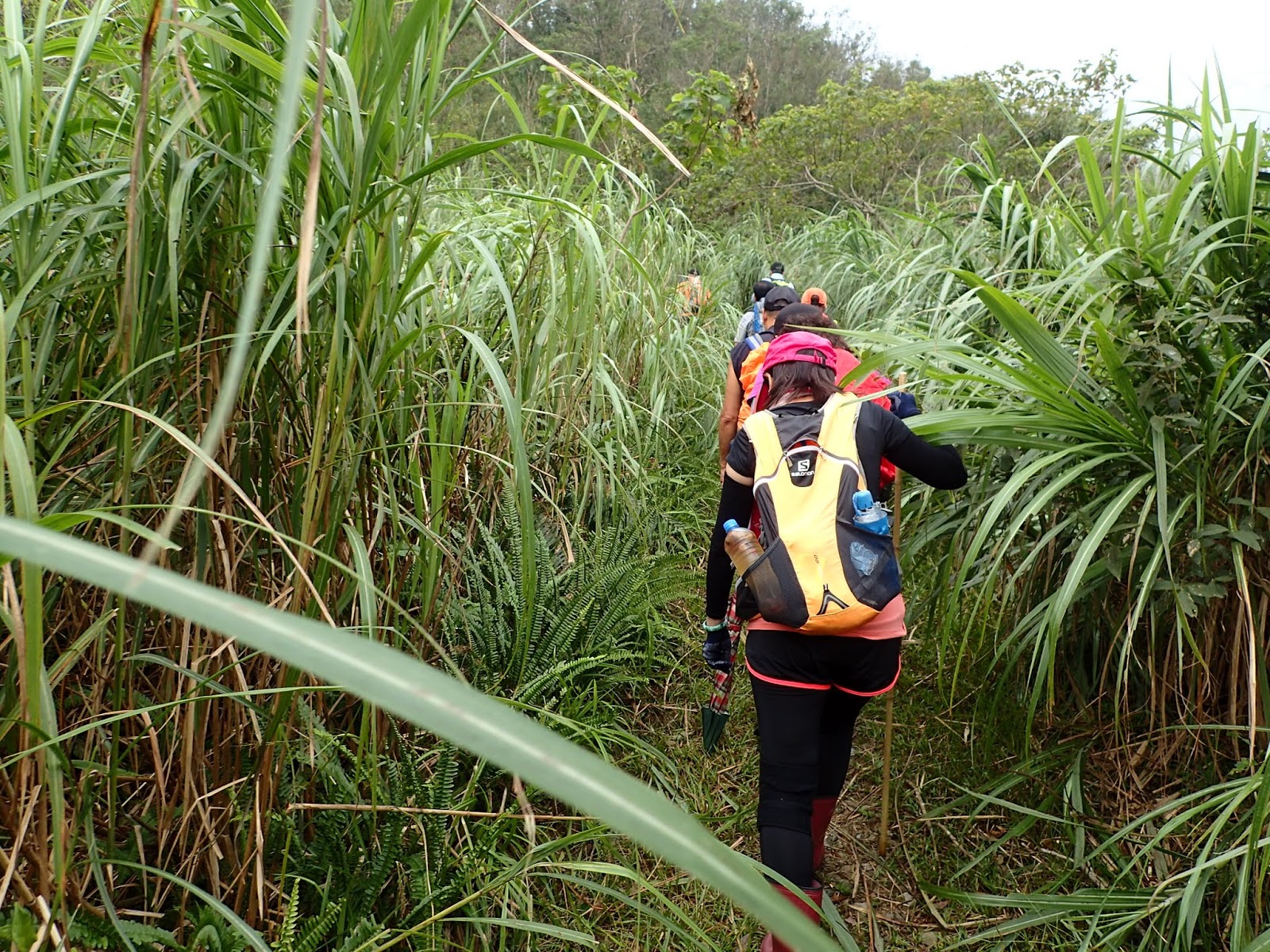 繼續穿梭草叢中, 趕緊帶上手套, 全身包緊, 避免被芒草掃到