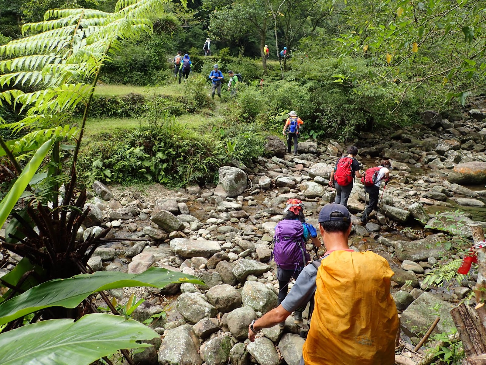 此行參加的山友75人, 中途部分的人留在溪邊戲水游泳, 走完全程42人, 呵呵, 我也是走完全程的一個, 稍有美中不足就是我沒泡到溪水啦!