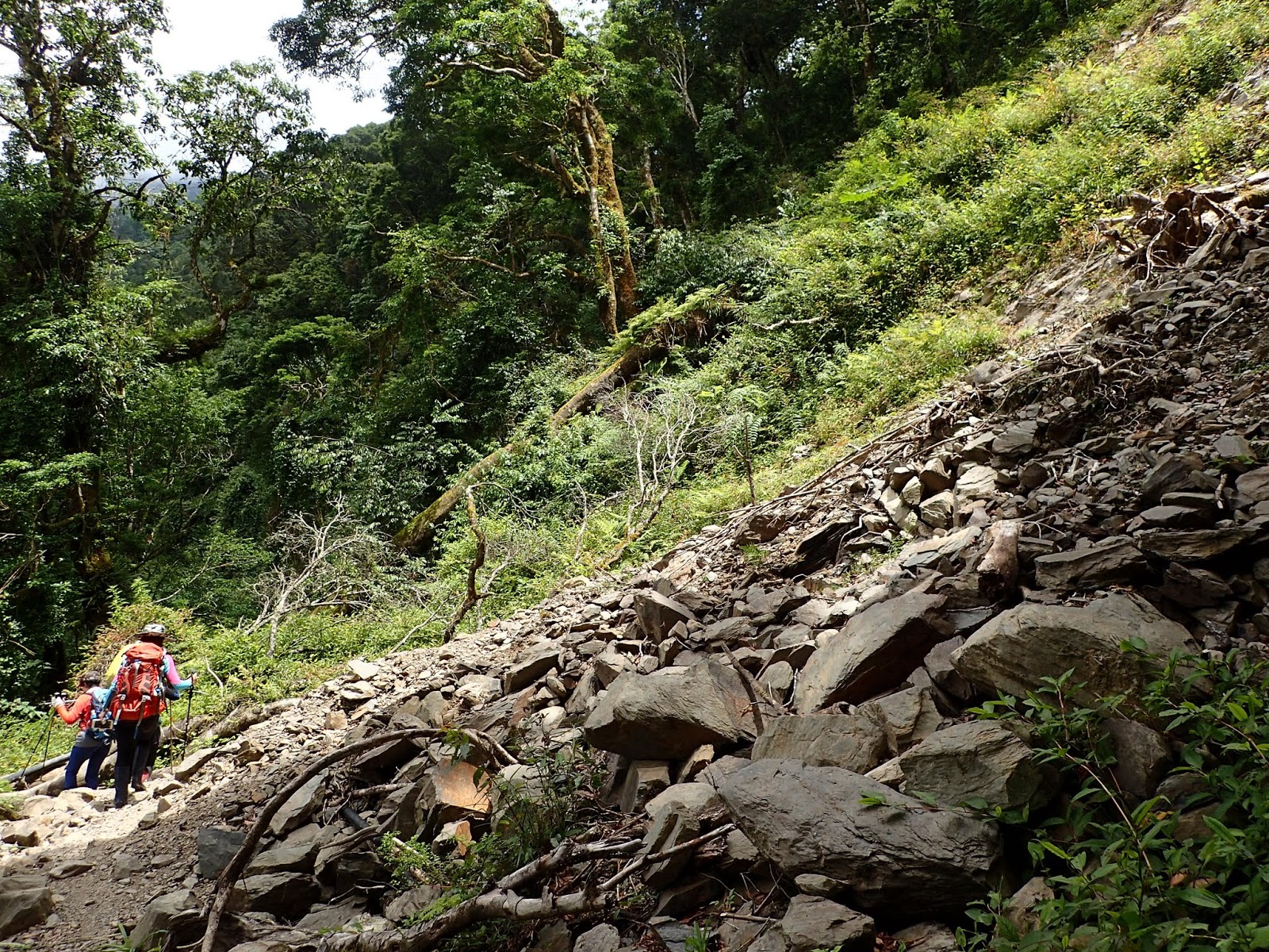 路徑被一大堆倒木遮住, 不曉得該往哪邊走