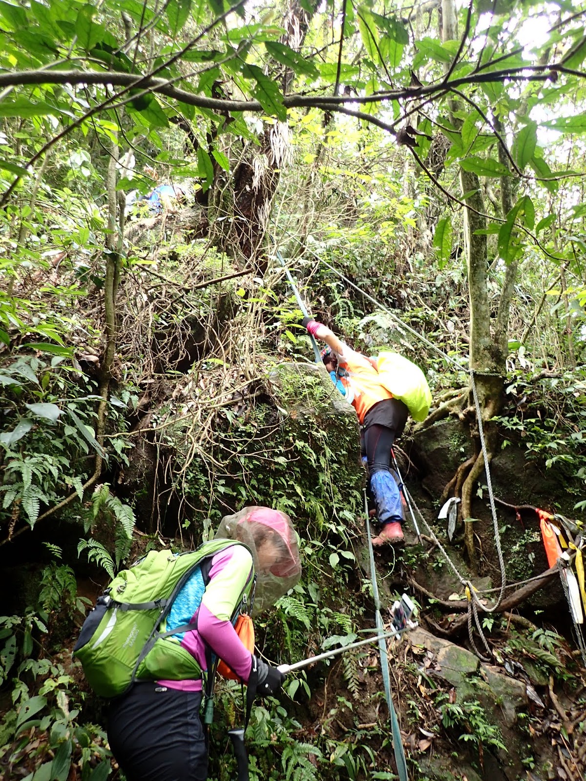 比較辛苦的地方還好有繩索可拉, 這段路無疑是練劈腿的好地方