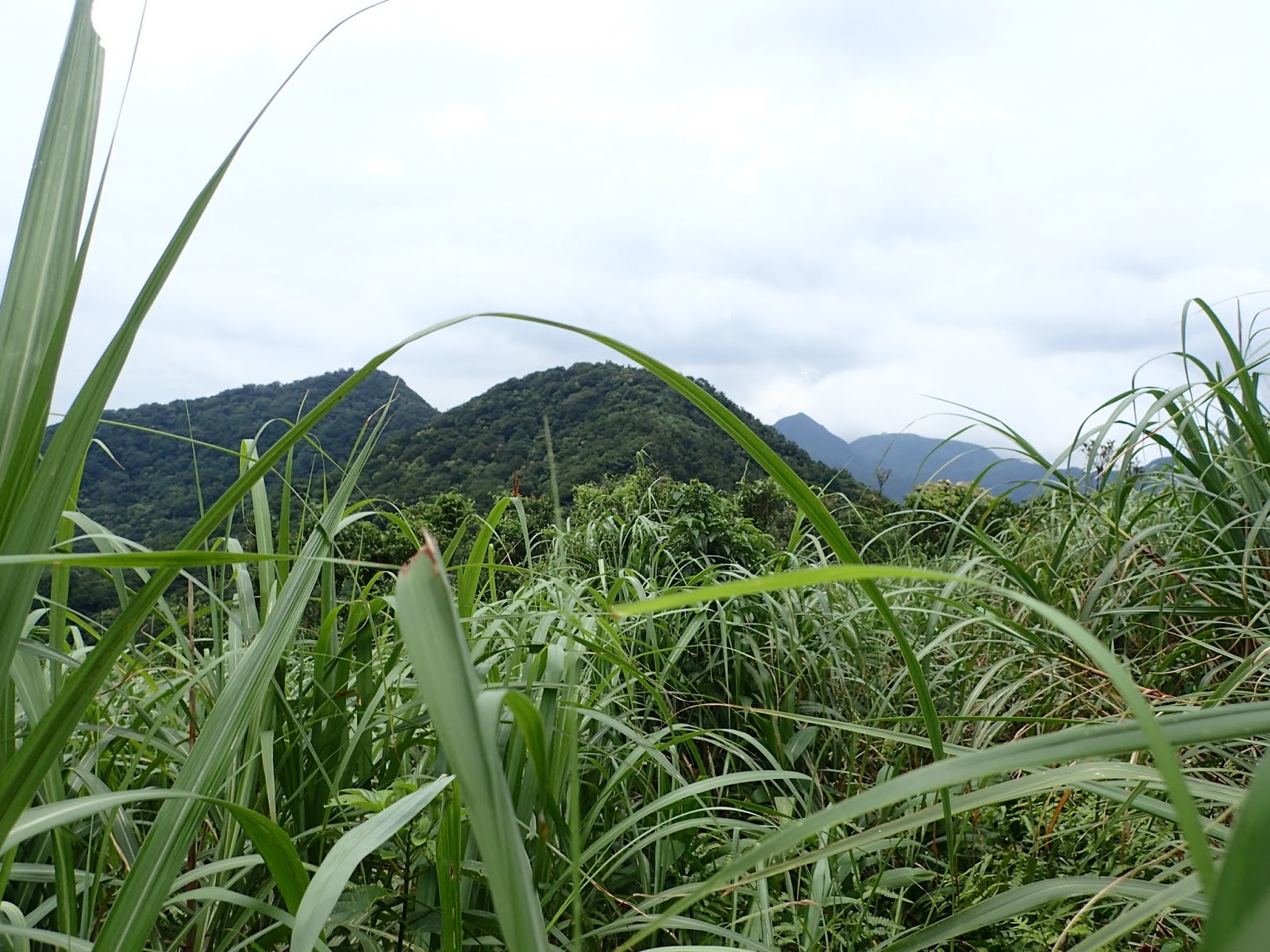穿過比人高的芒草堆, 穿短袖又沒帶上手套, 手上被劃了好幾道小傷口, 趕緊帶上袖套及手套