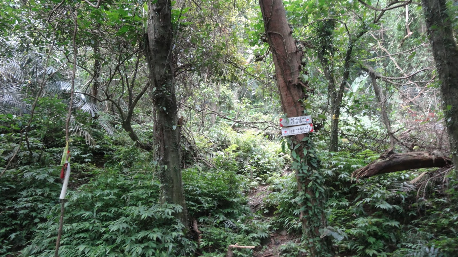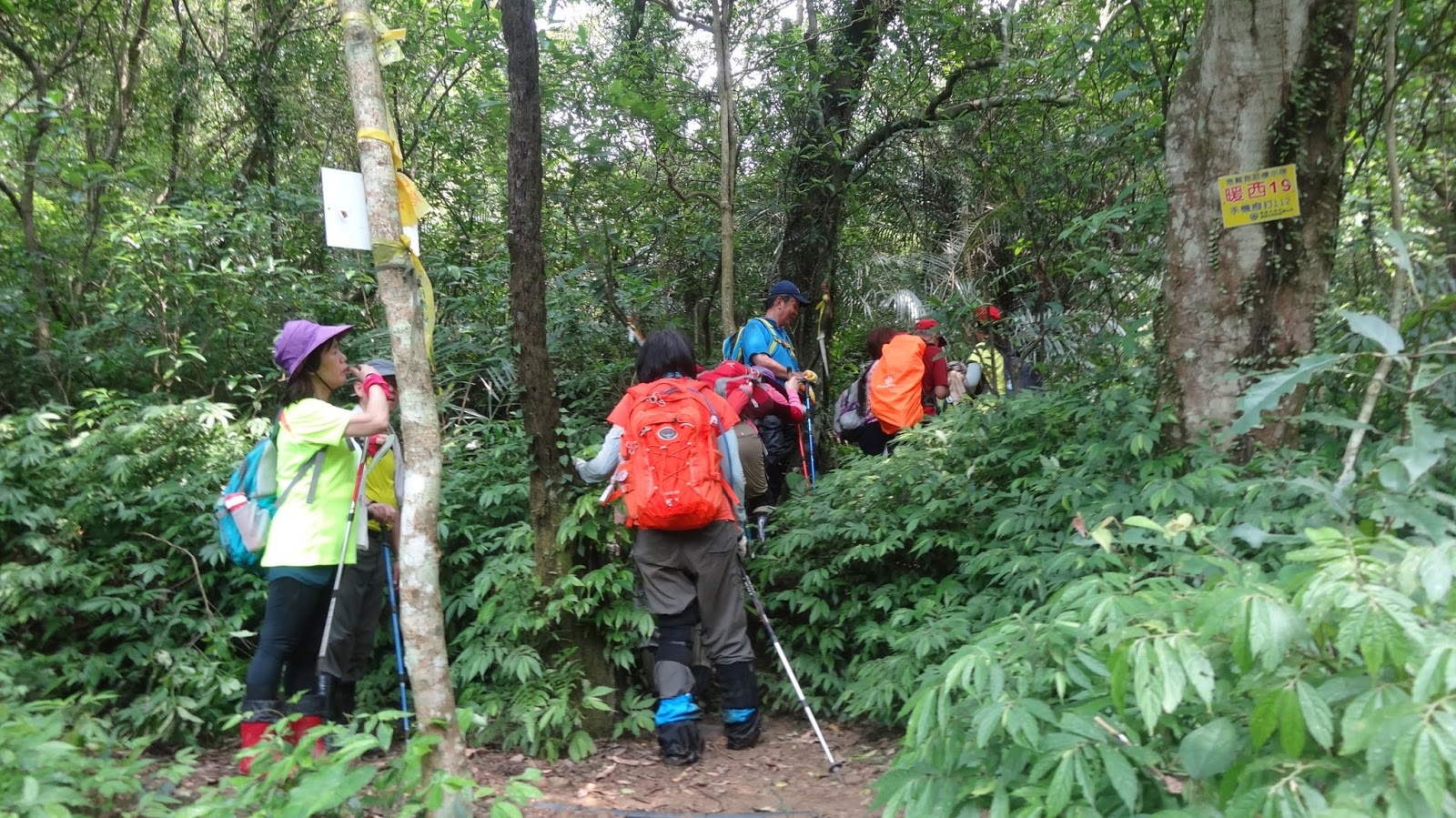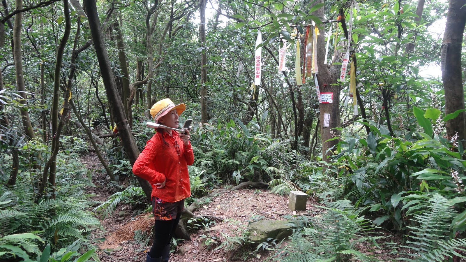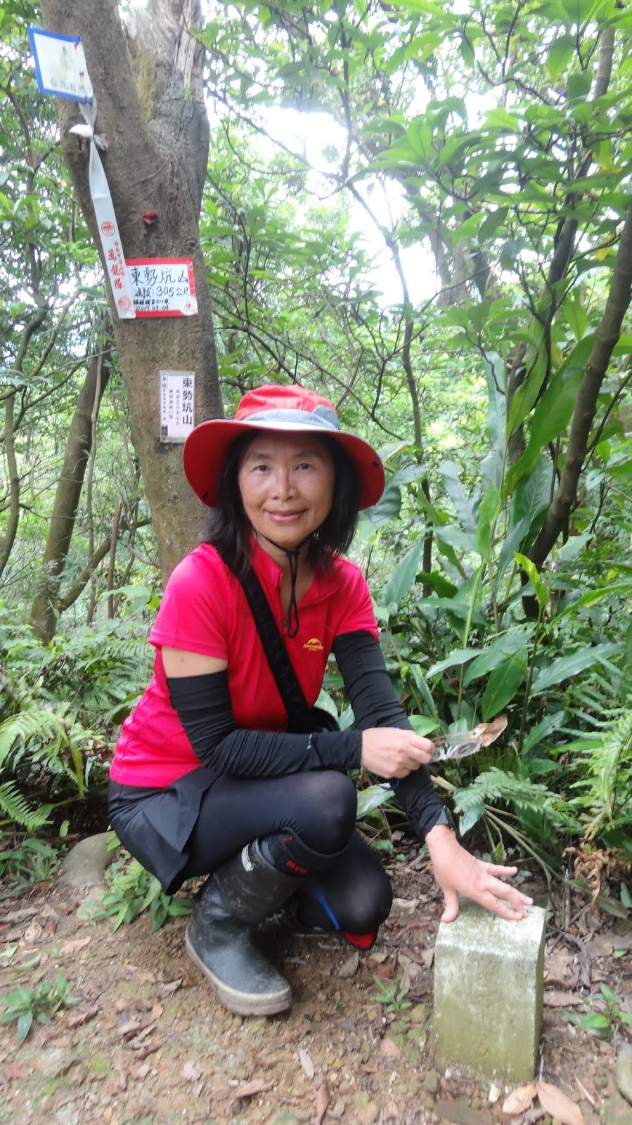 沒甚麼胃口吃了點水果後, 看到領隊往一旁走去, 尾隨跟去瞧瞧, 原來東勢坑山基點就在一旁