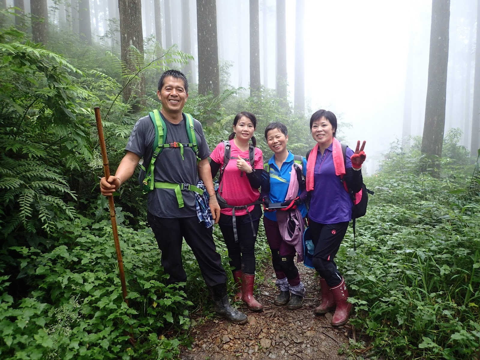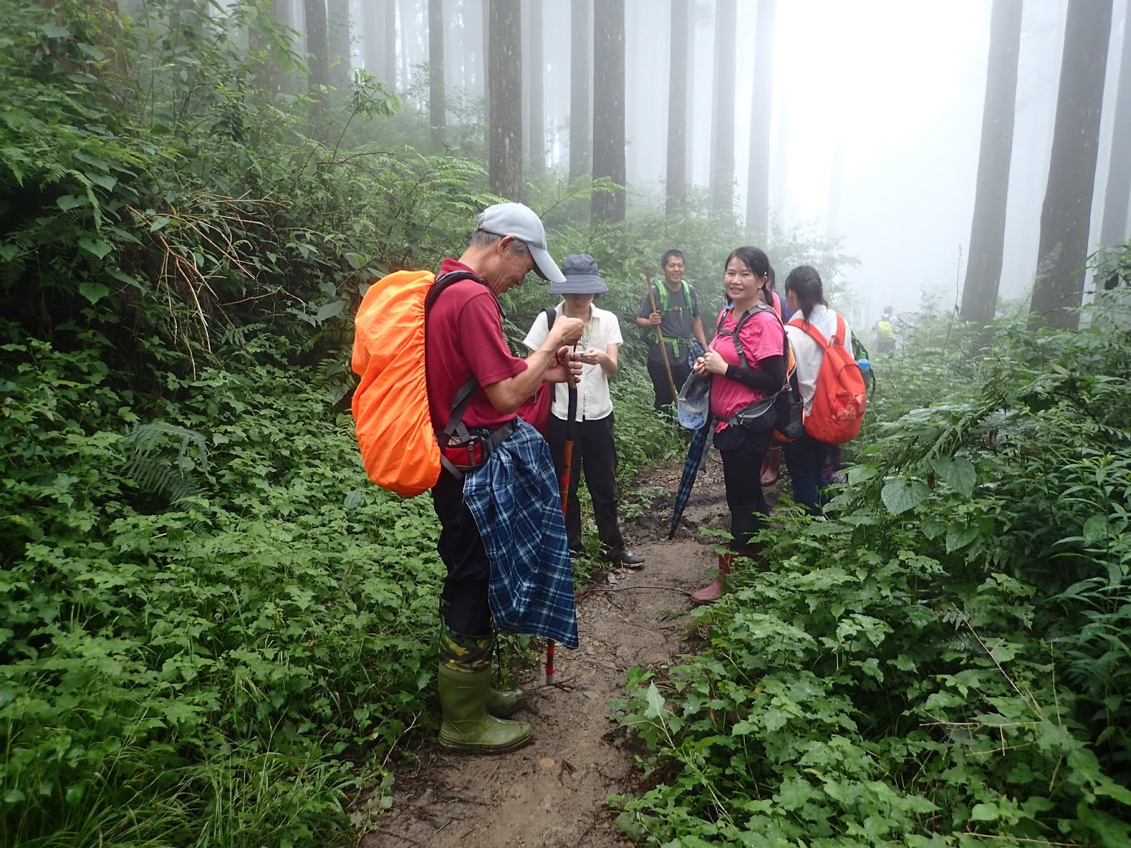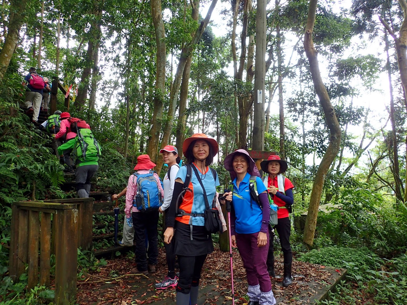 起登的木棧階梯真的是史上第一滑, 好像抹油般站在上面險些滑倒, 根本就不能移動, 捨棄木頭階梯走旁邊山路才好些, 會這麼滑是因為今天沒穿雨鞋改穿登山鞋?
