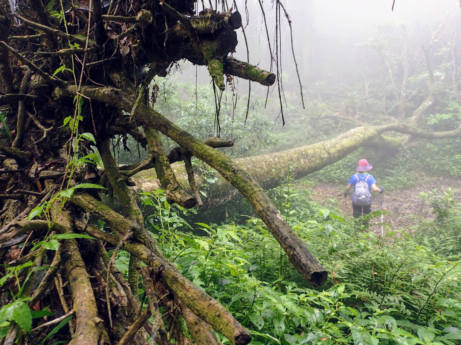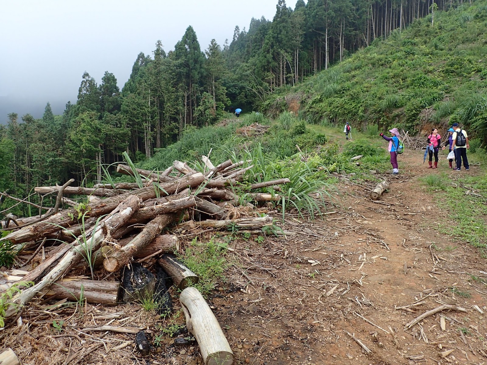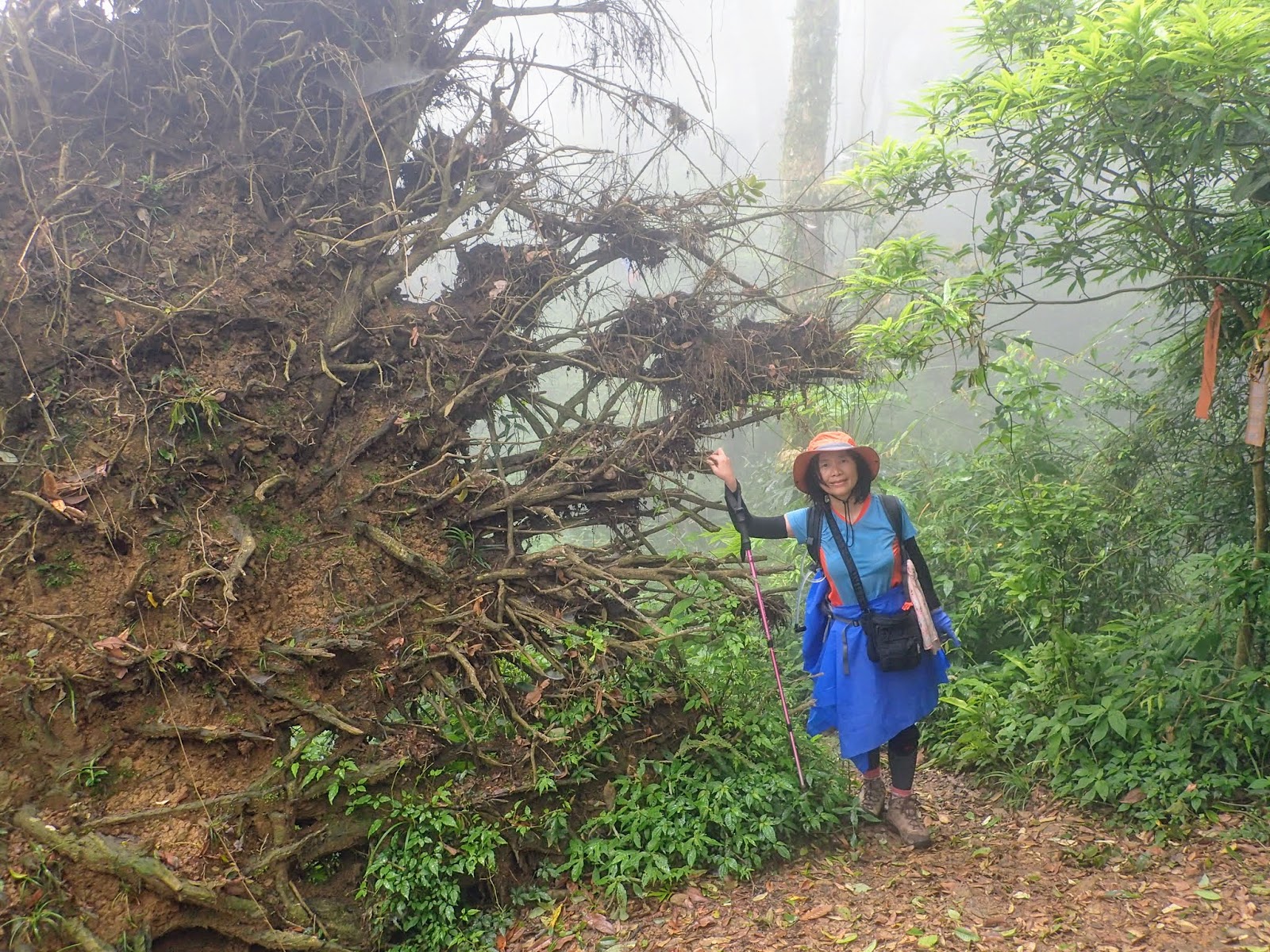 起登的木棧階梯真的是史上第一滑, 好像抹油般站在上面險些滑倒, 根本就不能移動, 捨棄木頭階梯走旁邊山路才好些, 會這麼滑是因為今天沒穿雨鞋改穿登山鞋?