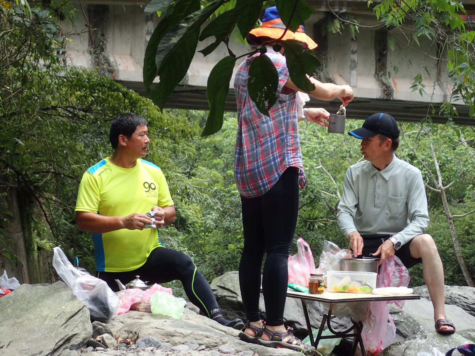 大家迫不急待下水試水溫, 透心涼的感覺, 就是爽, 早上出門還沒吃東西, 先啃了一顆彪哥帶來的芭樂補充體力