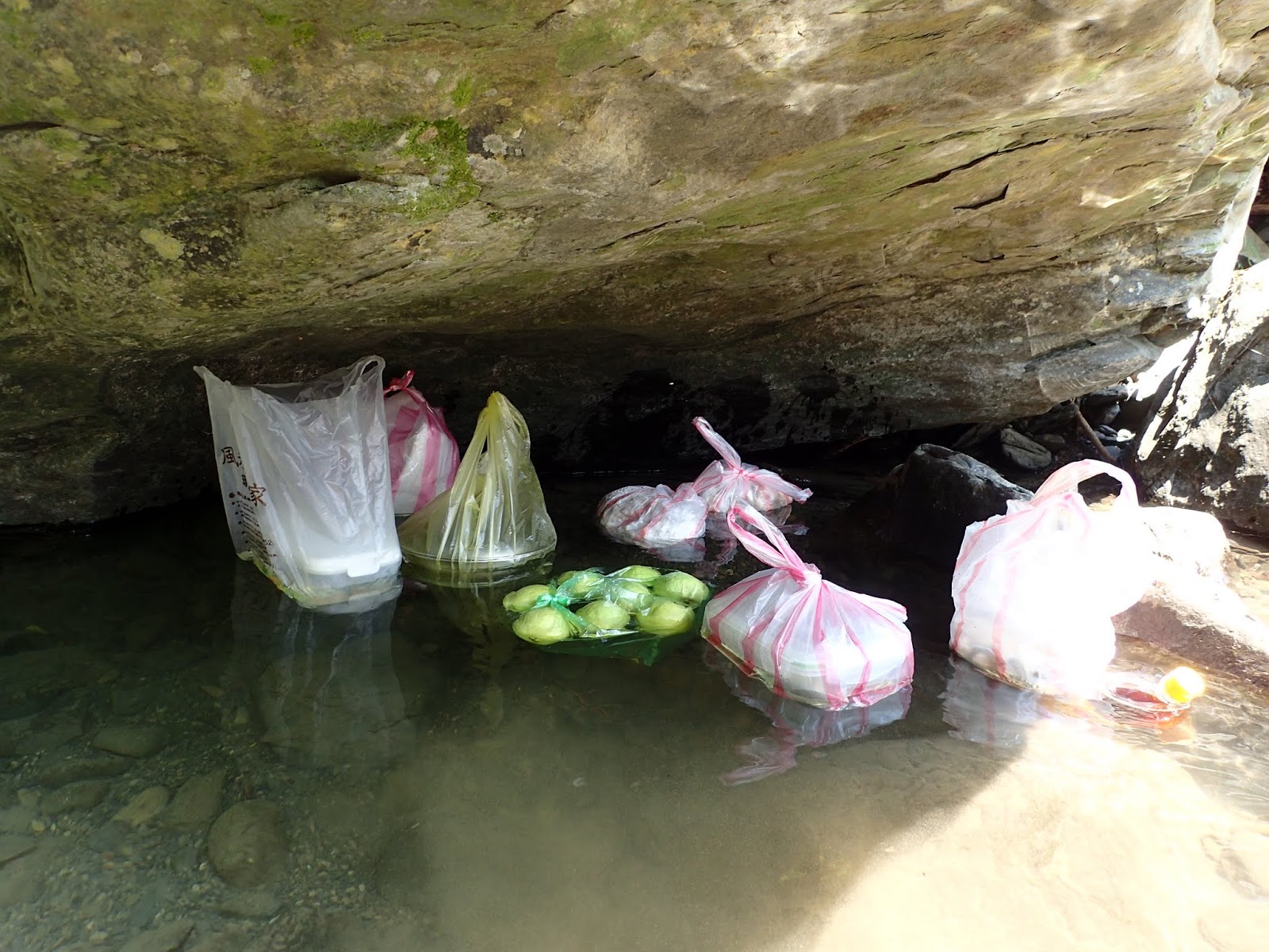 帶來的食物及水果飲料還有些生食先冷藏處理, 大岩石下就是天然的冷藏室