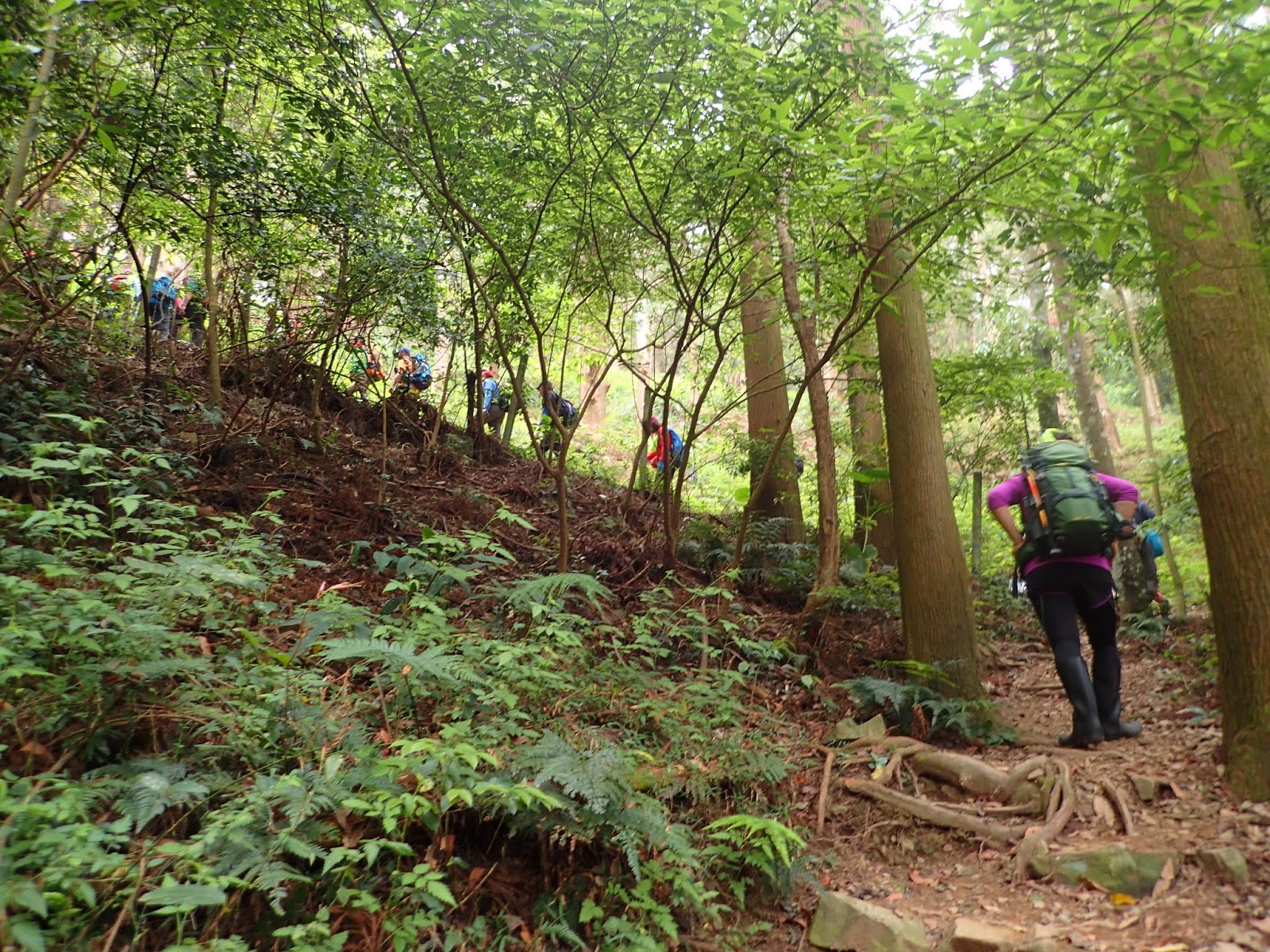 亦步亦趨跟著大隊的步伐走, 開始斜坡陡上