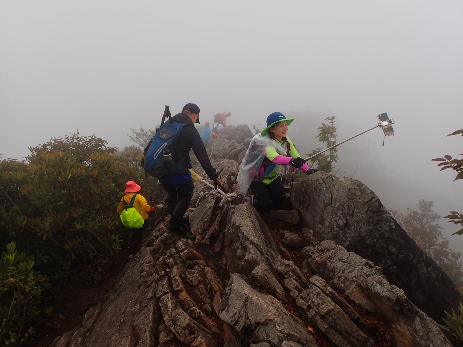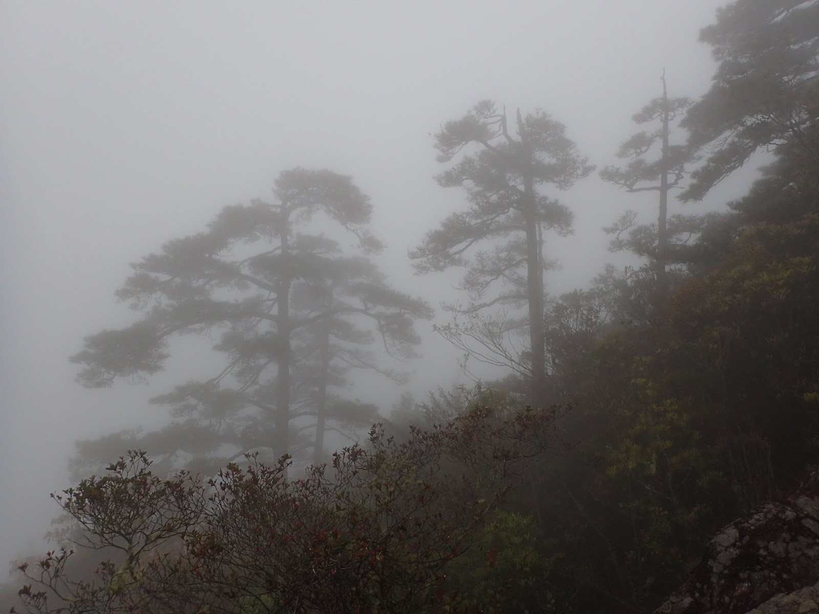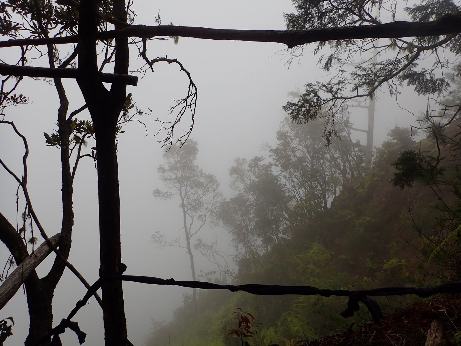 眼前只有尖稜峭壁大塊岩石, 岩壁外白茫茫的一片, 蒙蔽了我的雙眼, 拉著繩索, 腳踏著岩石, 突然感覺好像也沒甚麼恐怖好怕的, 彷彿吃下定心丸心裡篤定的很