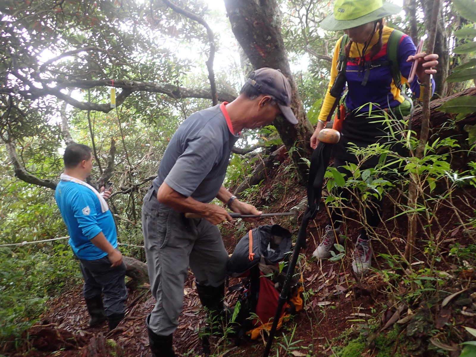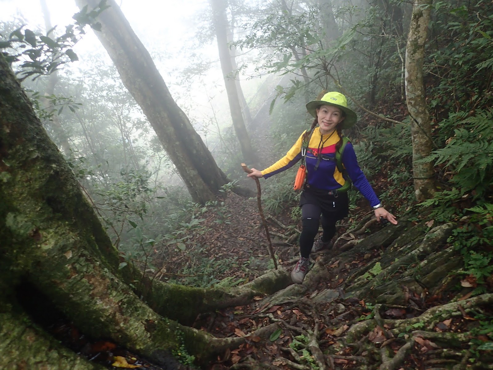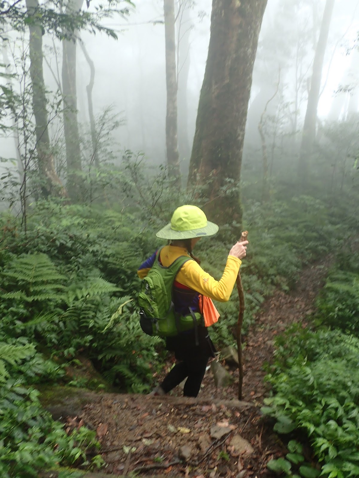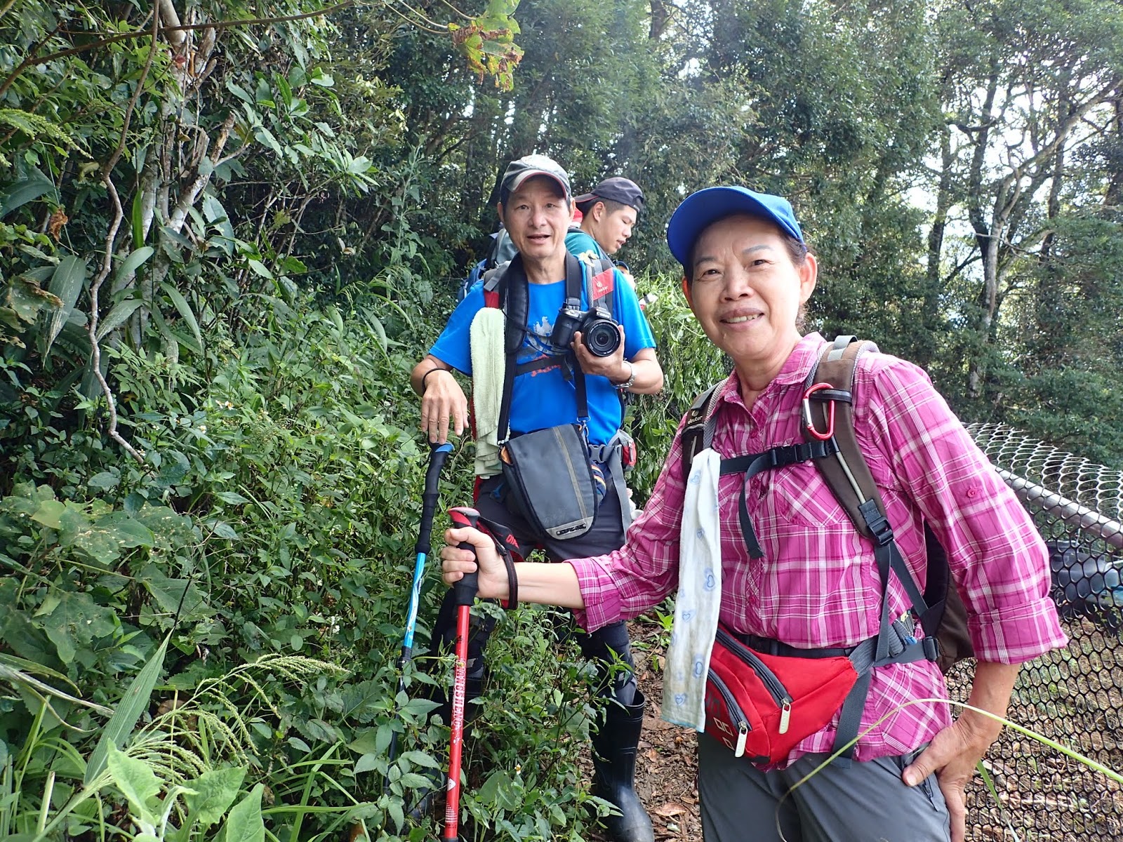 琴妹沒帶登山杖, 順手撿了一根木棍, 大哥當場幫她改造