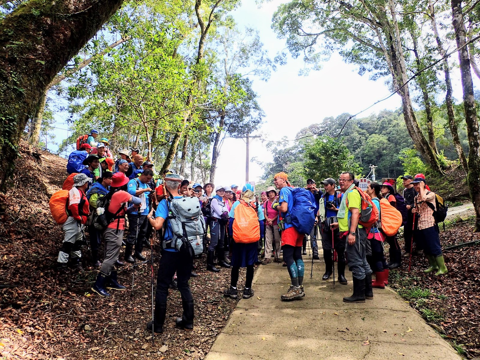 準時7:00來到館前路集合, 參加的人依舊踴躍, 總共有三部中巴, 二部小車67位山友 , 車子行經三峽後上了山路一路蜿蜒陡上遇上修路交通管制及好幾個髮夾彎後, 9:50終於到了, 下車往前走了一小段產道