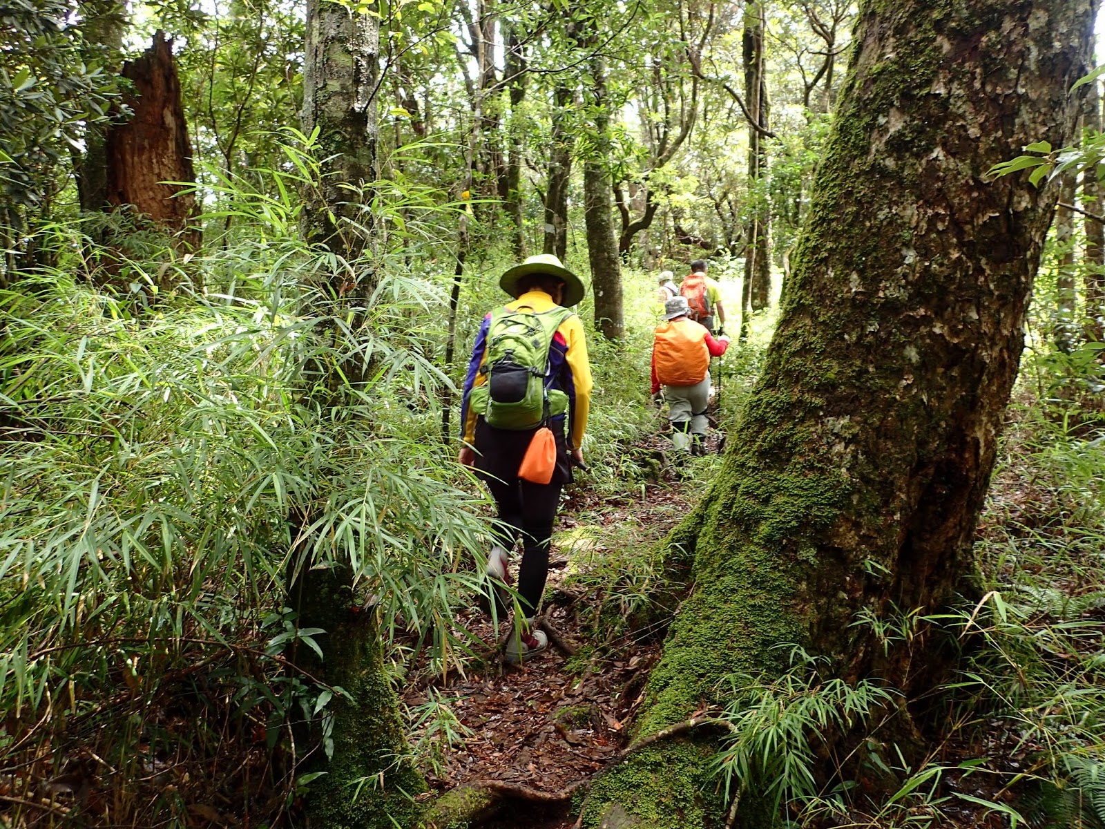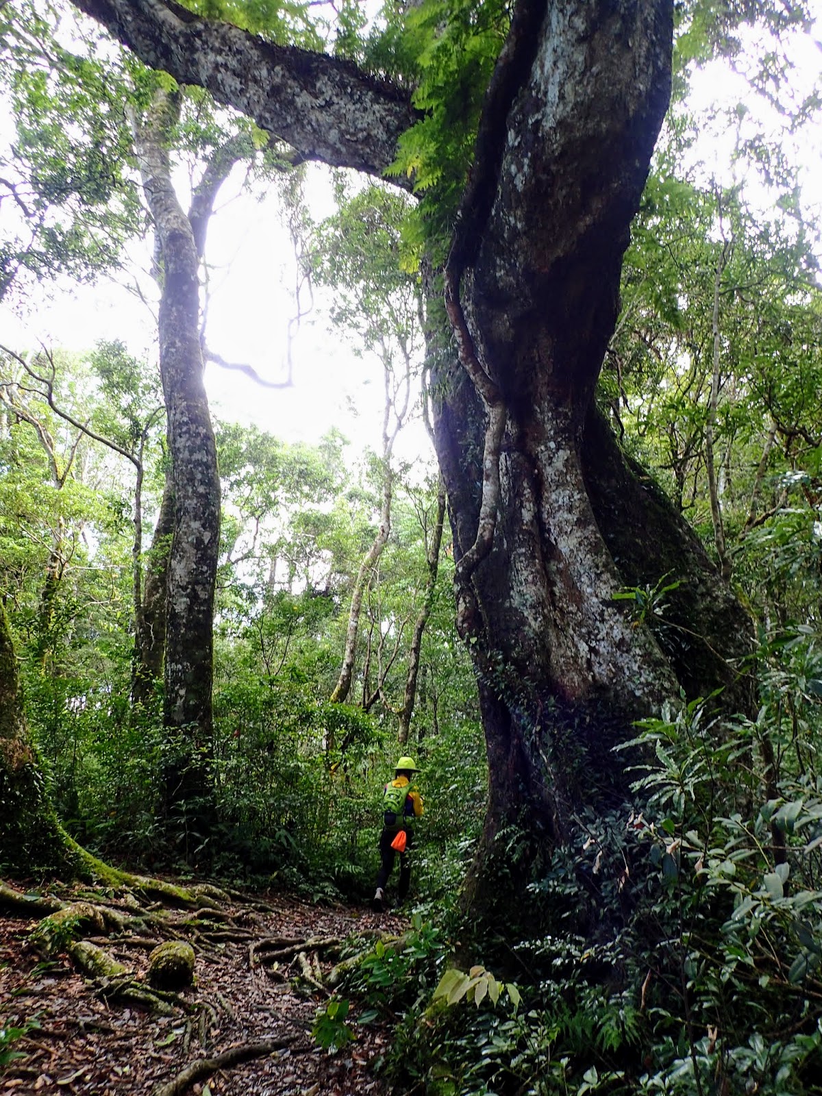林相優美, 路旁時而可見巨大樹木, 走在樹根盤繞的山徑, 似乎有點滑, 看來今天沒穿雨鞋錯了, 穿了一雙新買的登山健行鞋, 本來試穿的尺碼就對了, 回家後穿上厚襪怕太合腳特地去換大半碼, 唉, 後悔了, 似乎鬆了點