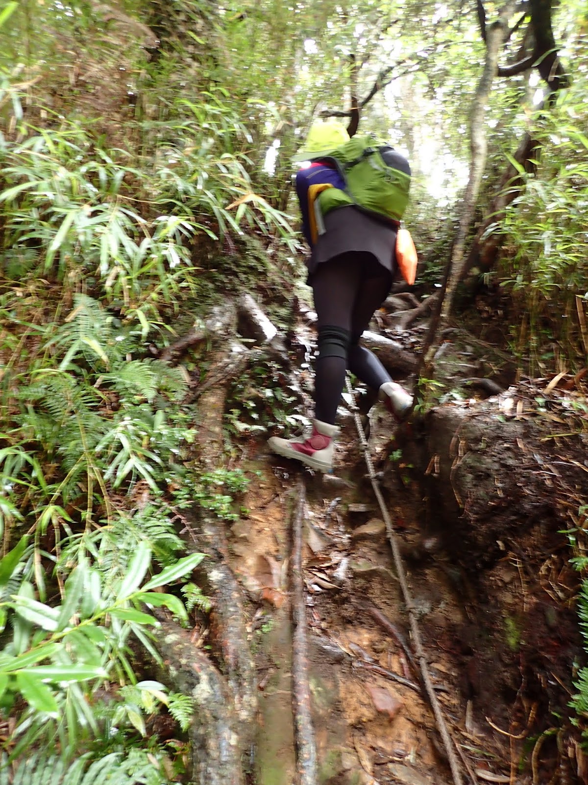 繼續爬上陡坡, 泥路濕滑有點難行