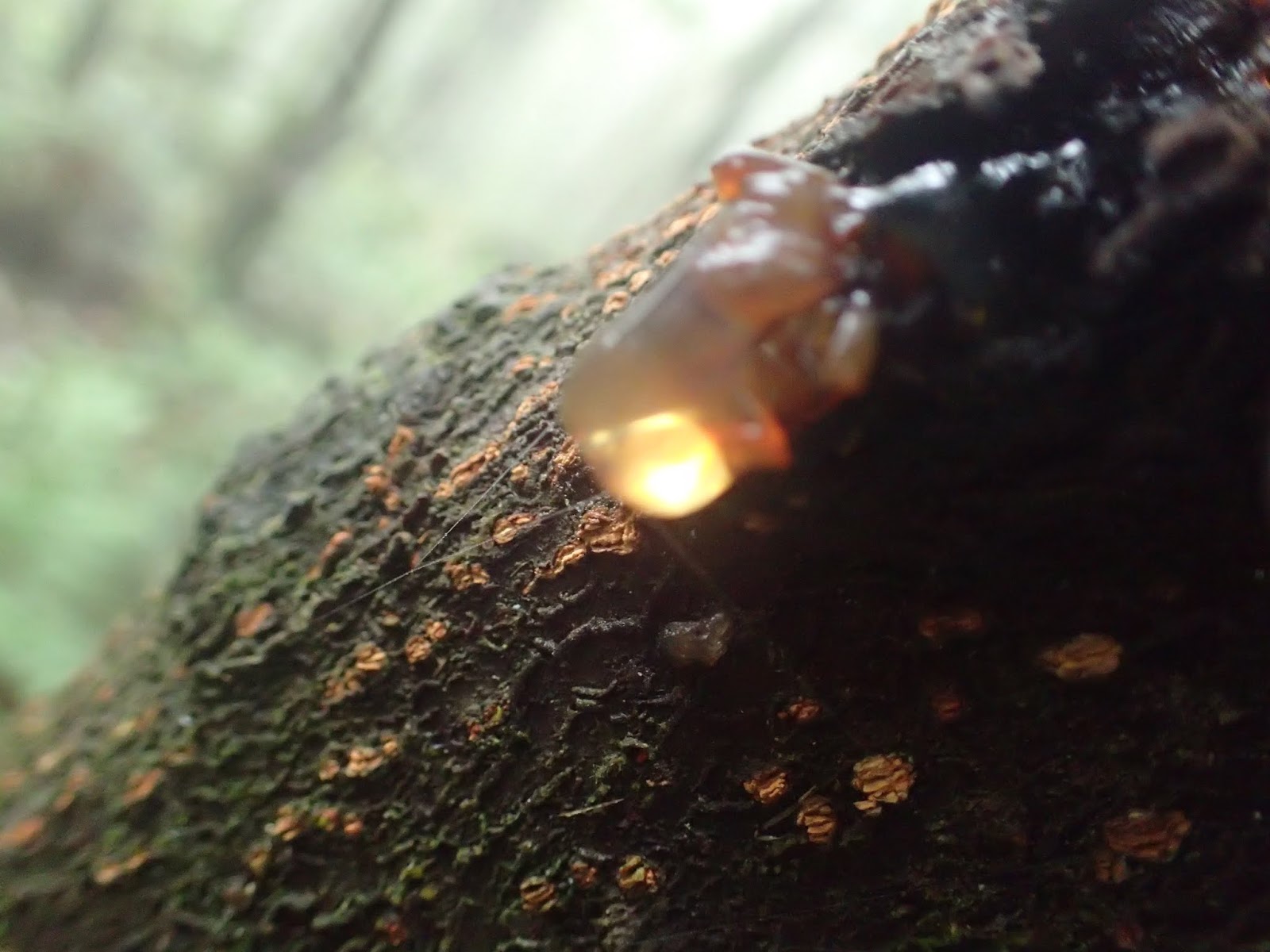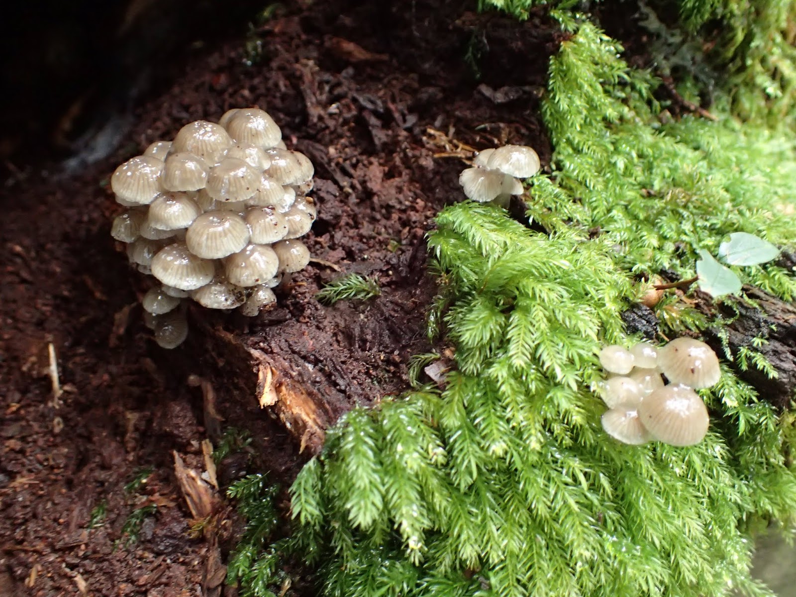 藏身在路旁倒樹洞口的透明菇菇