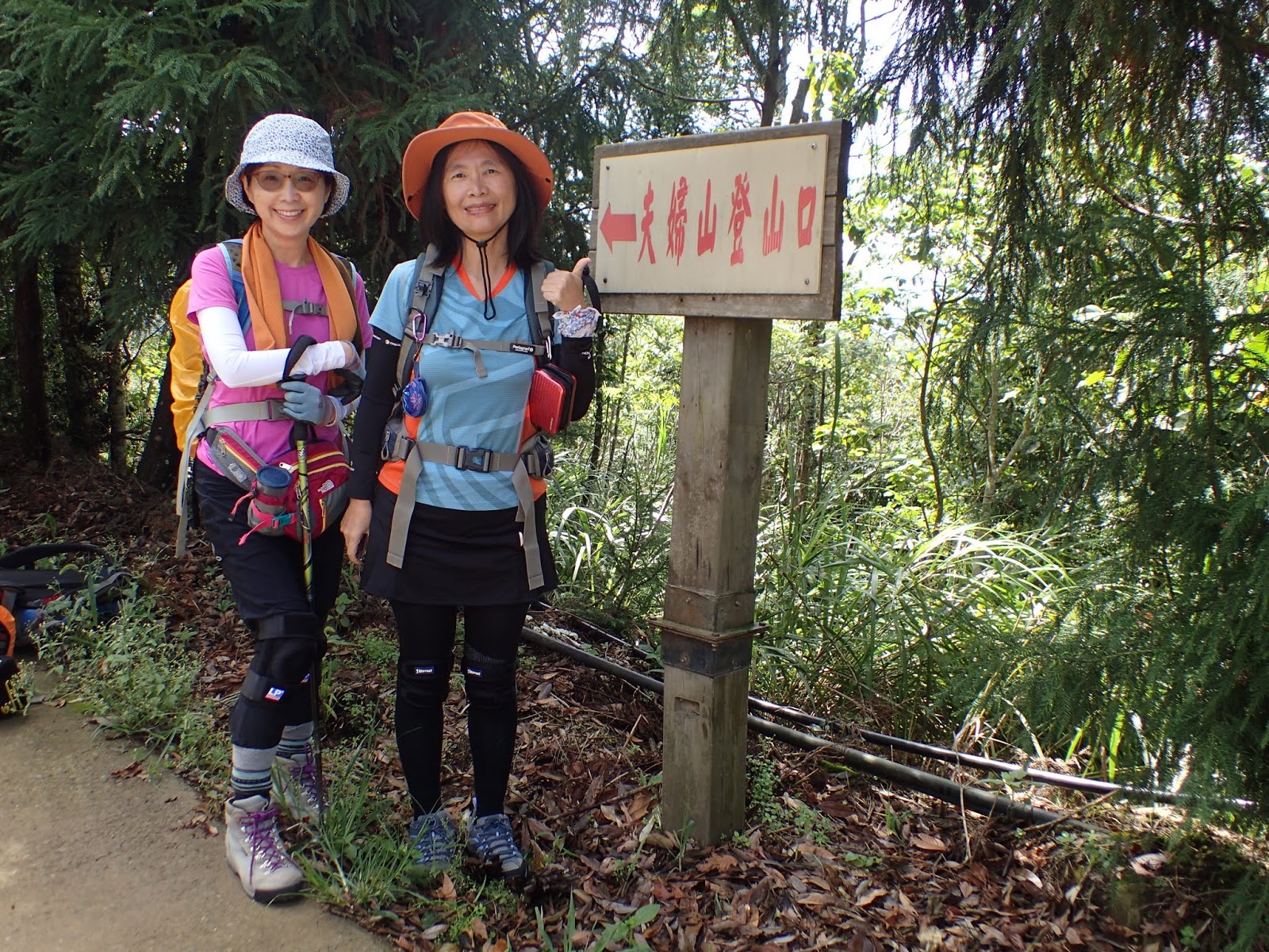 路旁看見夫婦山登山口的指示牌, 跟著箭頭繼續往前走