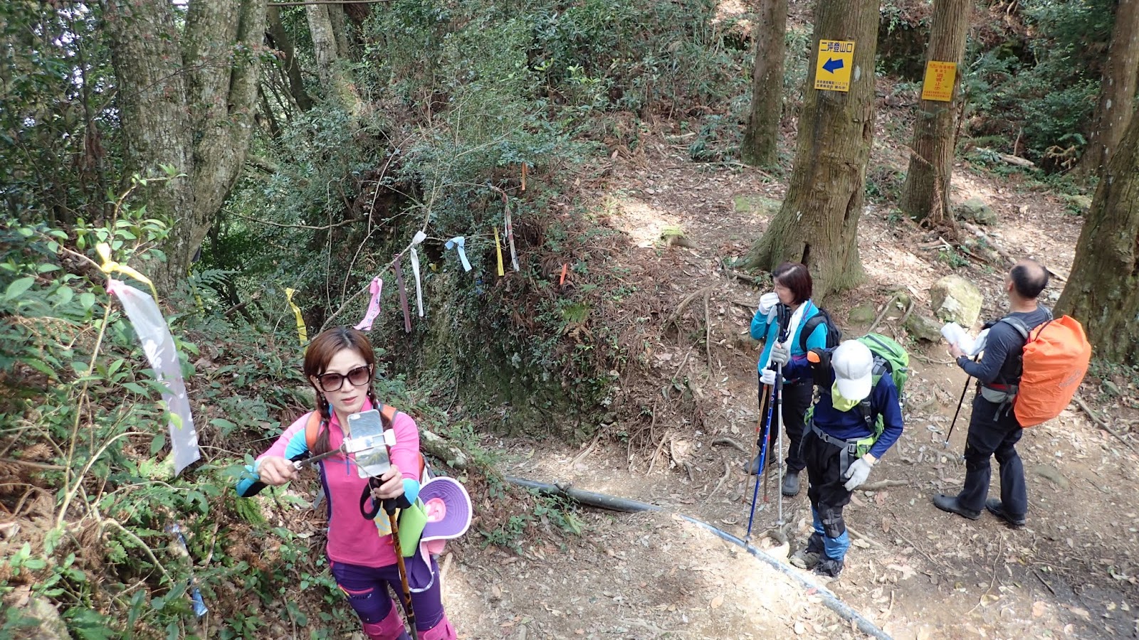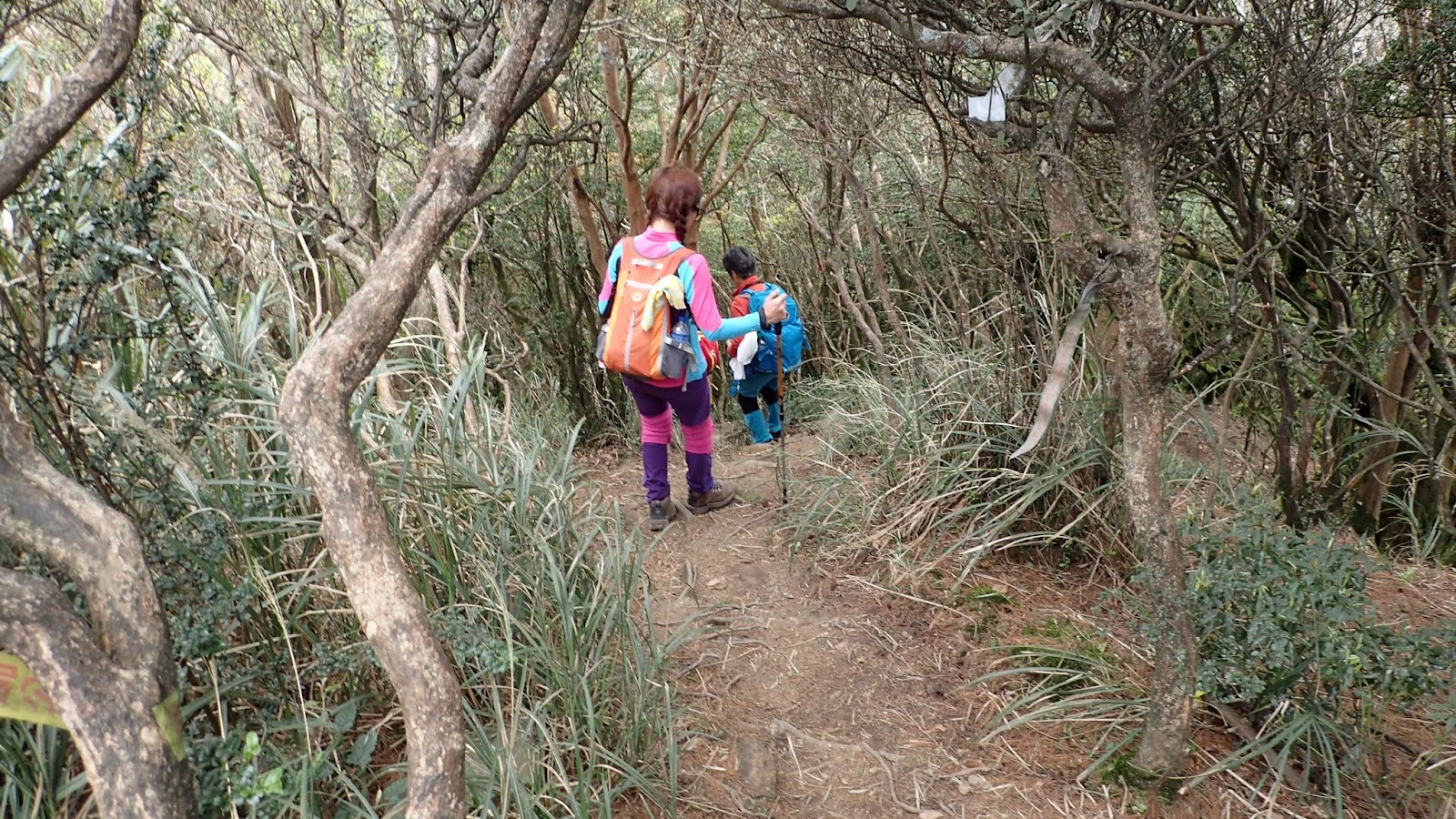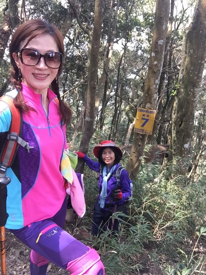 一路斜坡往上, 山路寬敞好走, 但因九段有交待想上加里山要走快點不要只顧著拍照, 聽的我跟琴妹好緊張趕緊加快腳步, 回頭跟小潘說要走快點, 可是小潘一直沒跟上