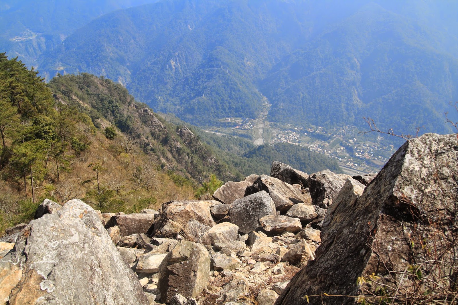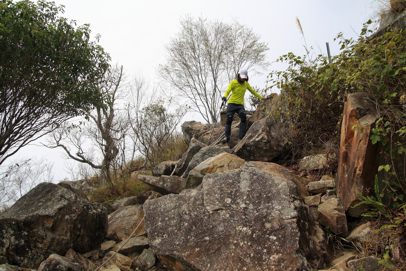 登頂前都是大石頭,要踩穩