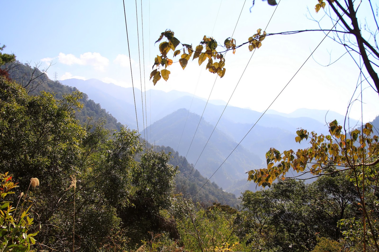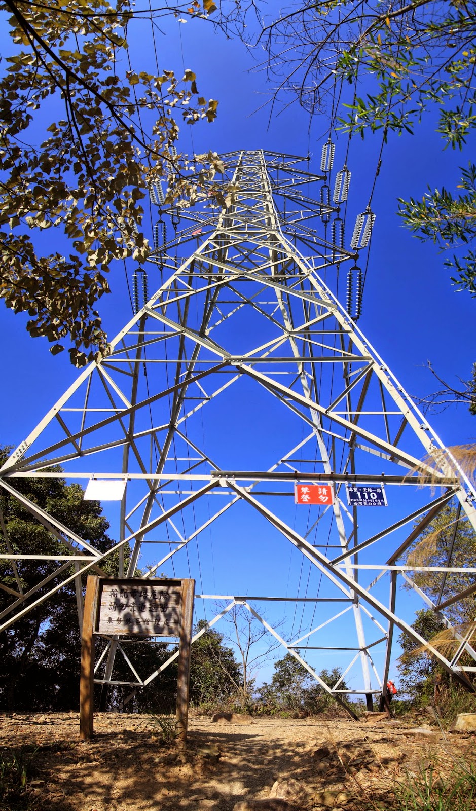 過電塔,沒多久就快到涼亭了,而我們因為要趕上三角點,就把食材留下給老師們,麵條居然沒帶到@@...快溜