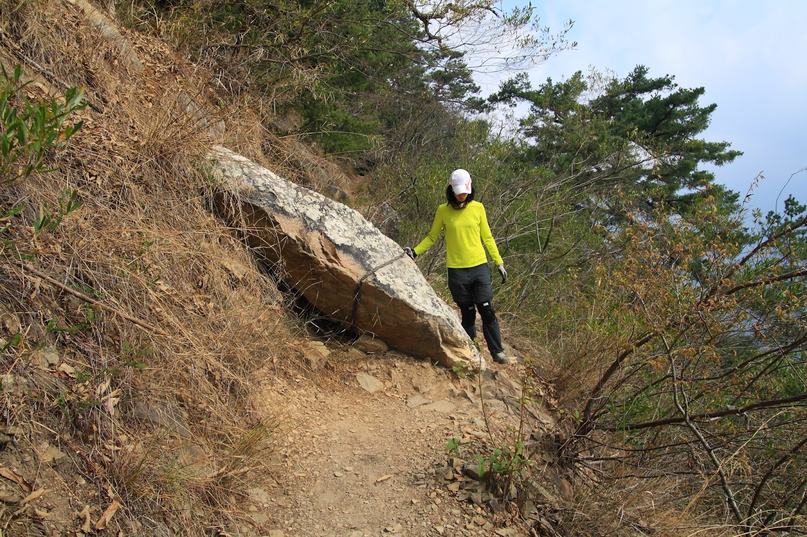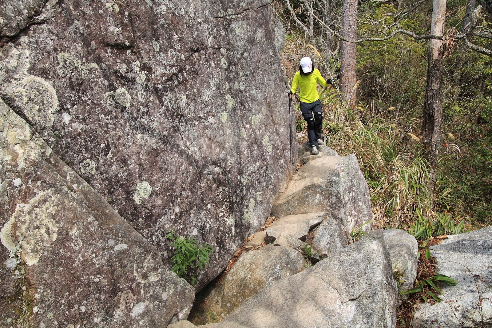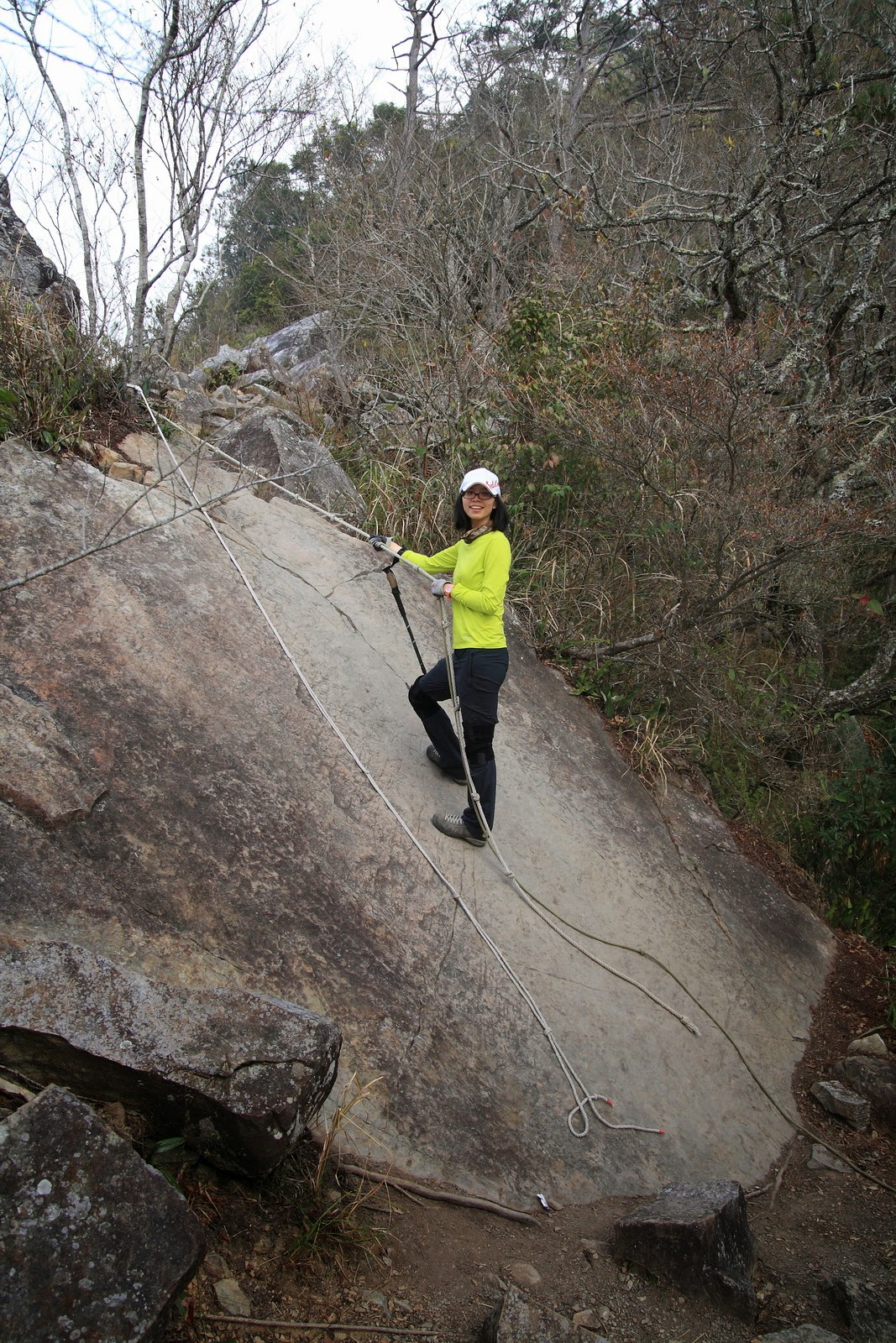 胖膽前面這顆石頭上有點磨損,三姨丈在這小滑一跤,趕快提醒胖膽小心點