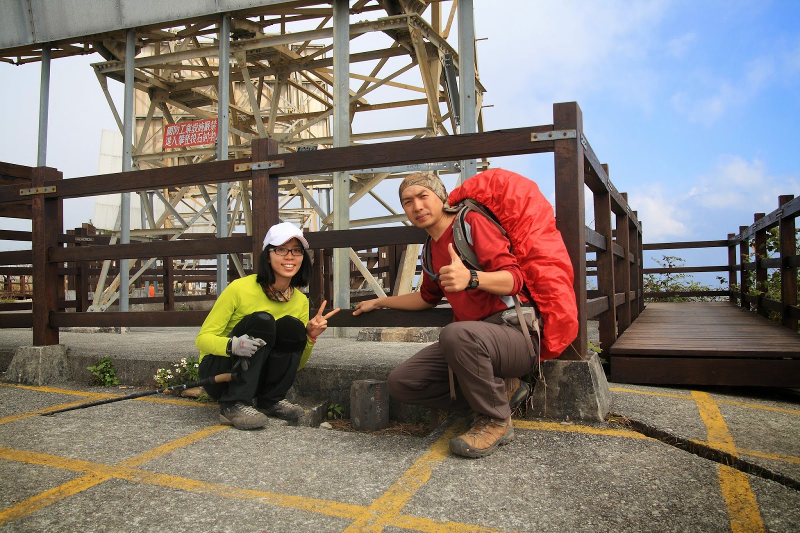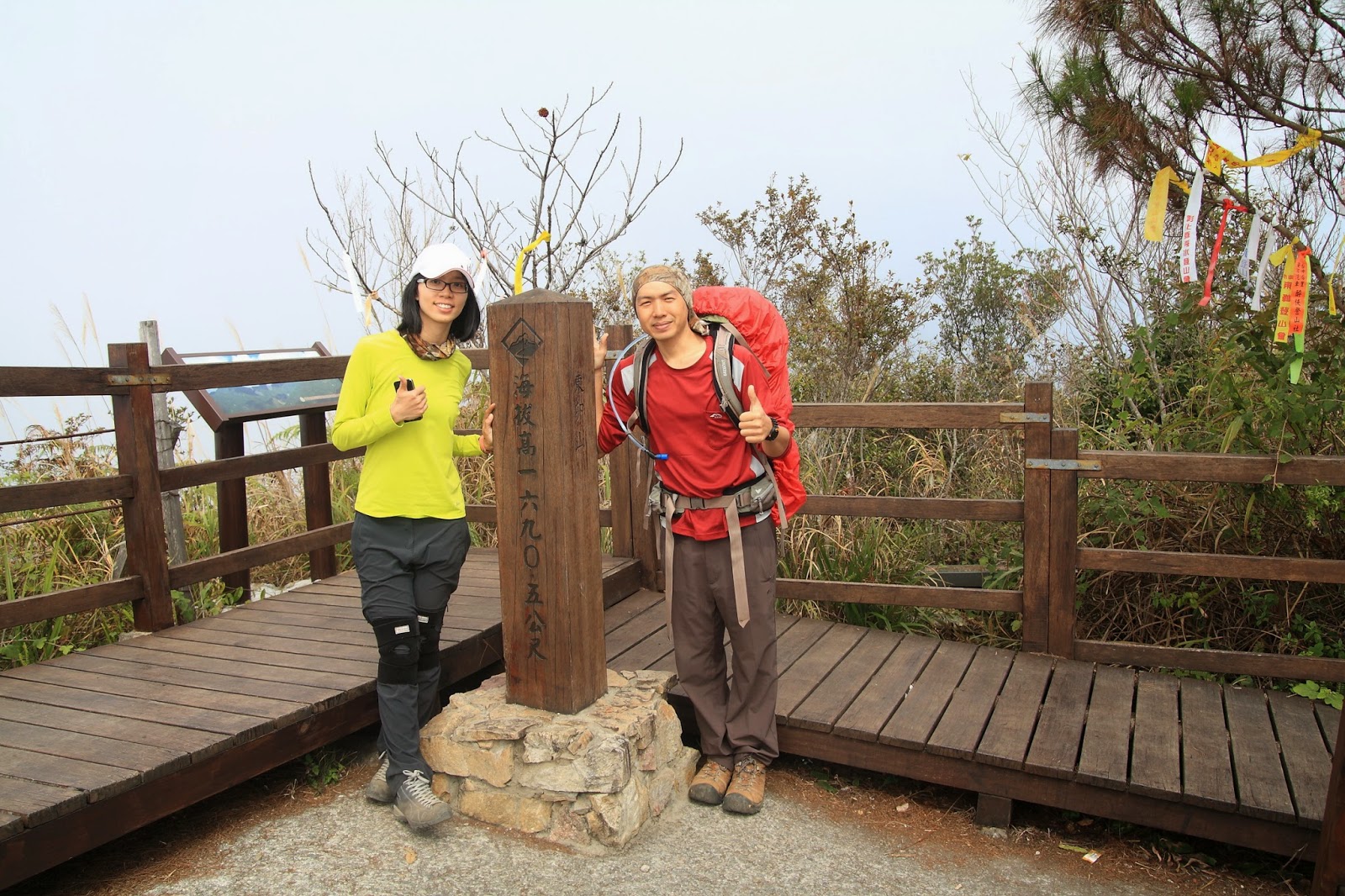 啊!!!晚了,上到三角點都已中午,雲層都上來,發現有對夫妻在此休憩很久,他們一定有看到很漂亮的景