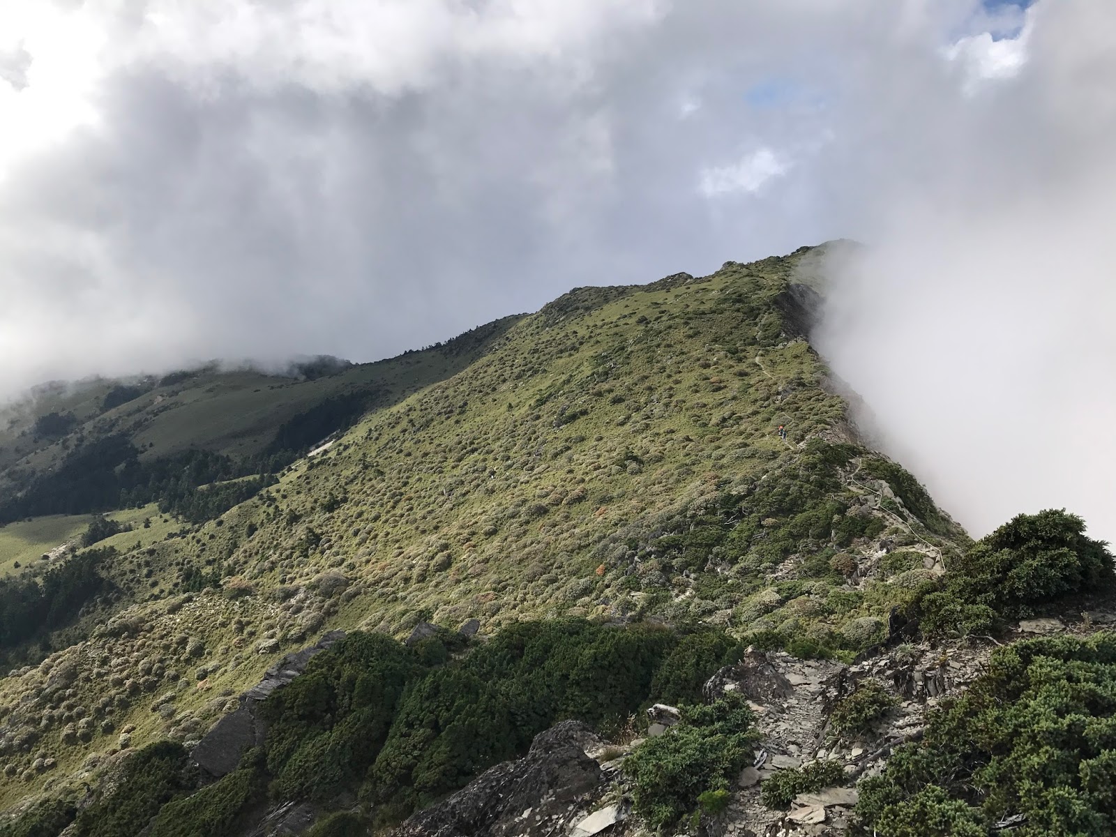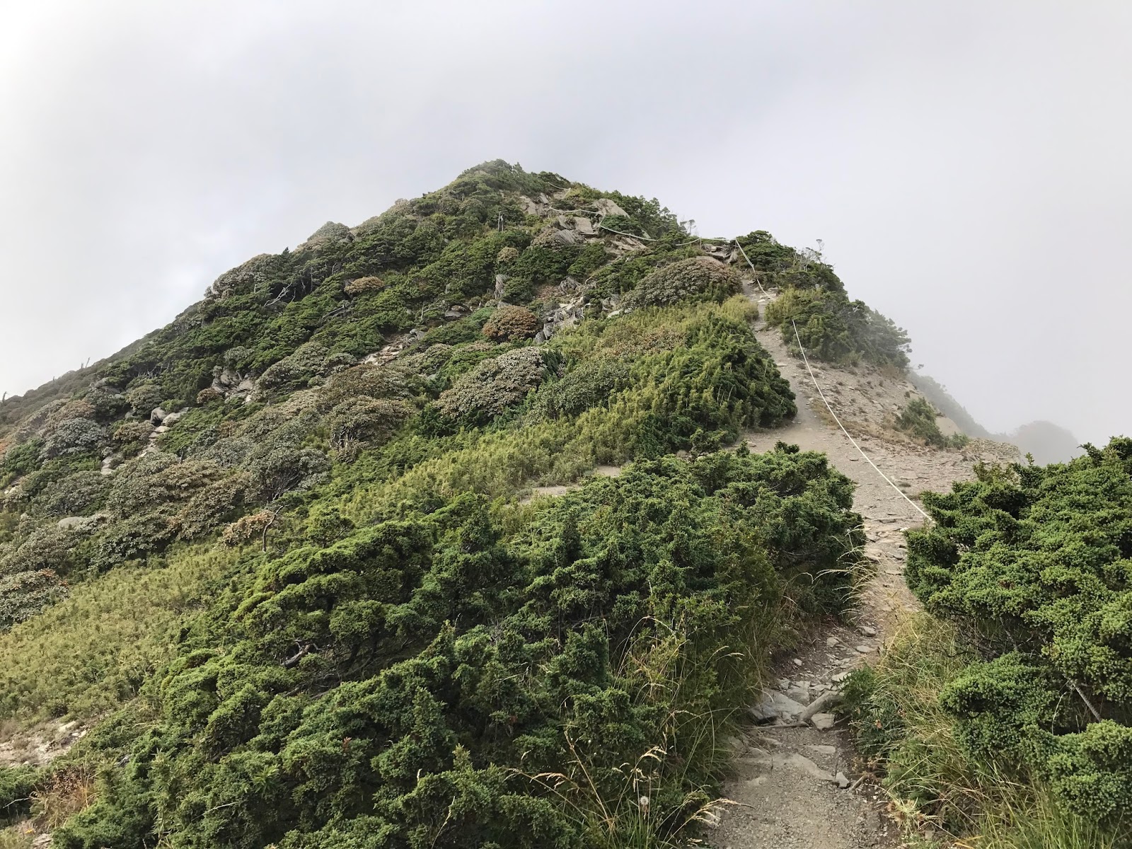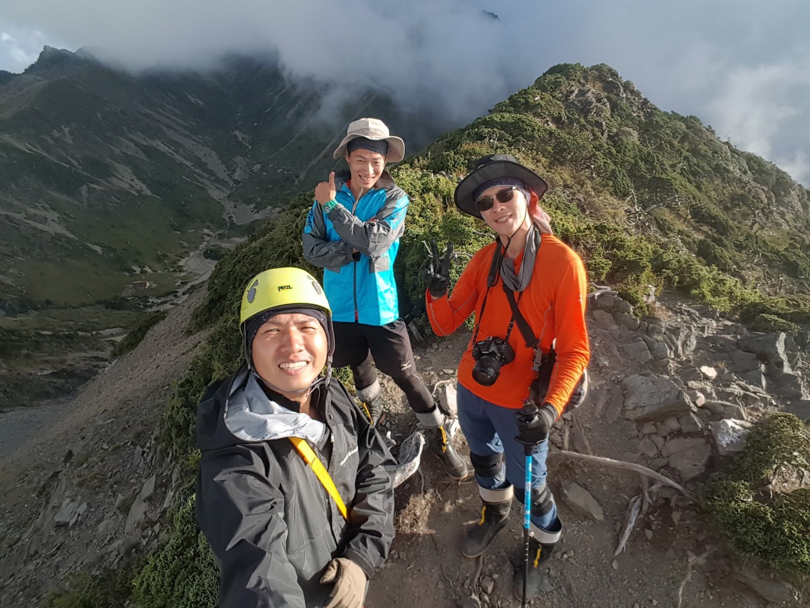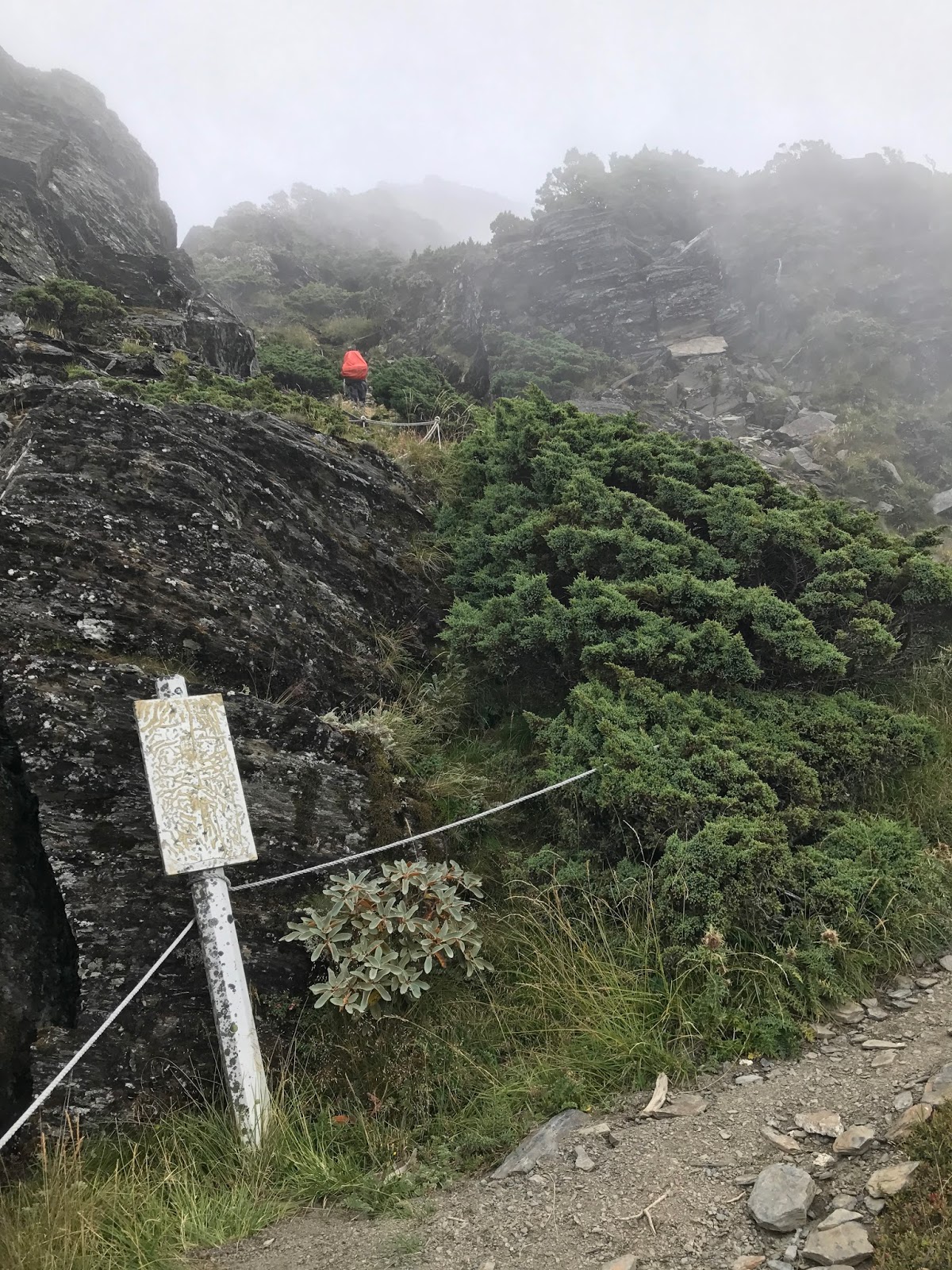 15:31可能是運氣真的很好!!幾乎沒甚麼風,不過左側就是碎石斷崖,有些地方需跨到繩子另一邊,踩點是斜的片岩,對穿登山鞋的人沒雨算是幸運,撿到了。因為氣象一直說會下雨!!!幸好幸好