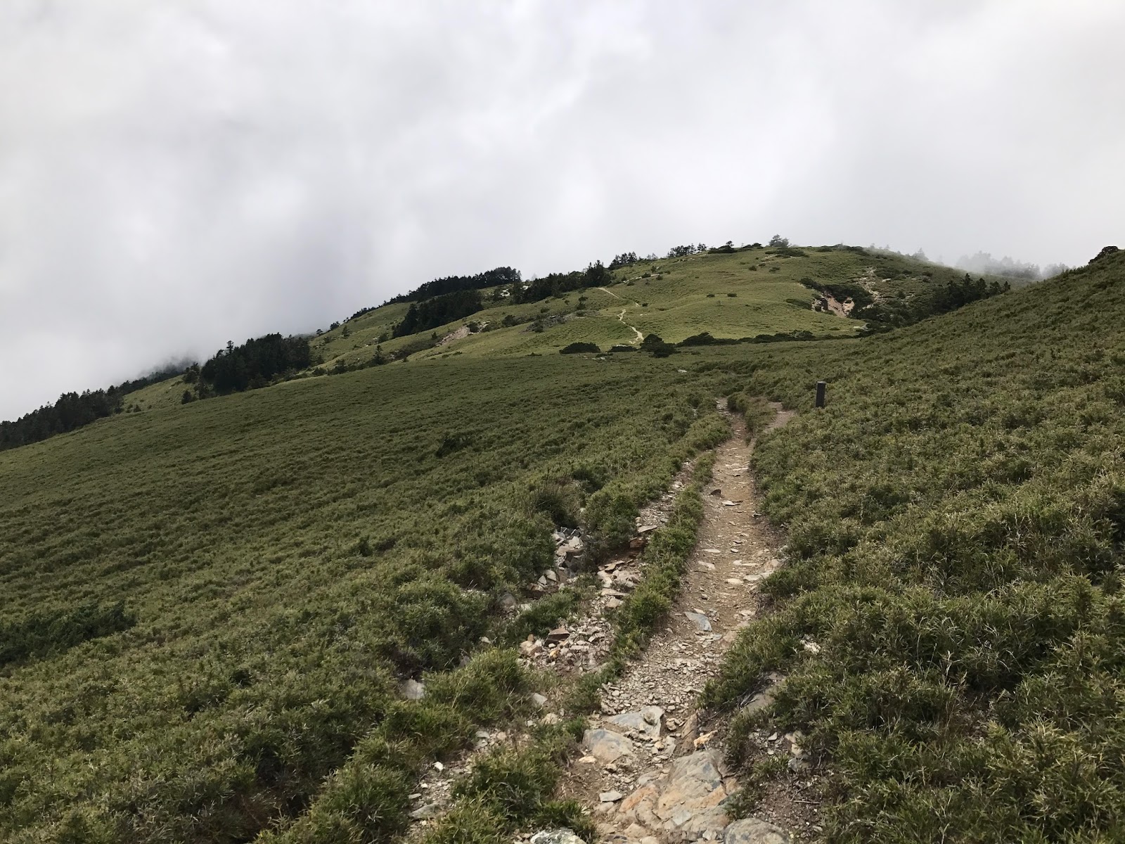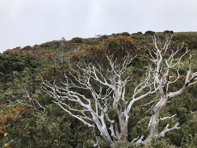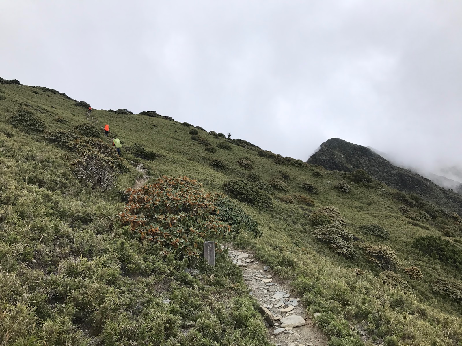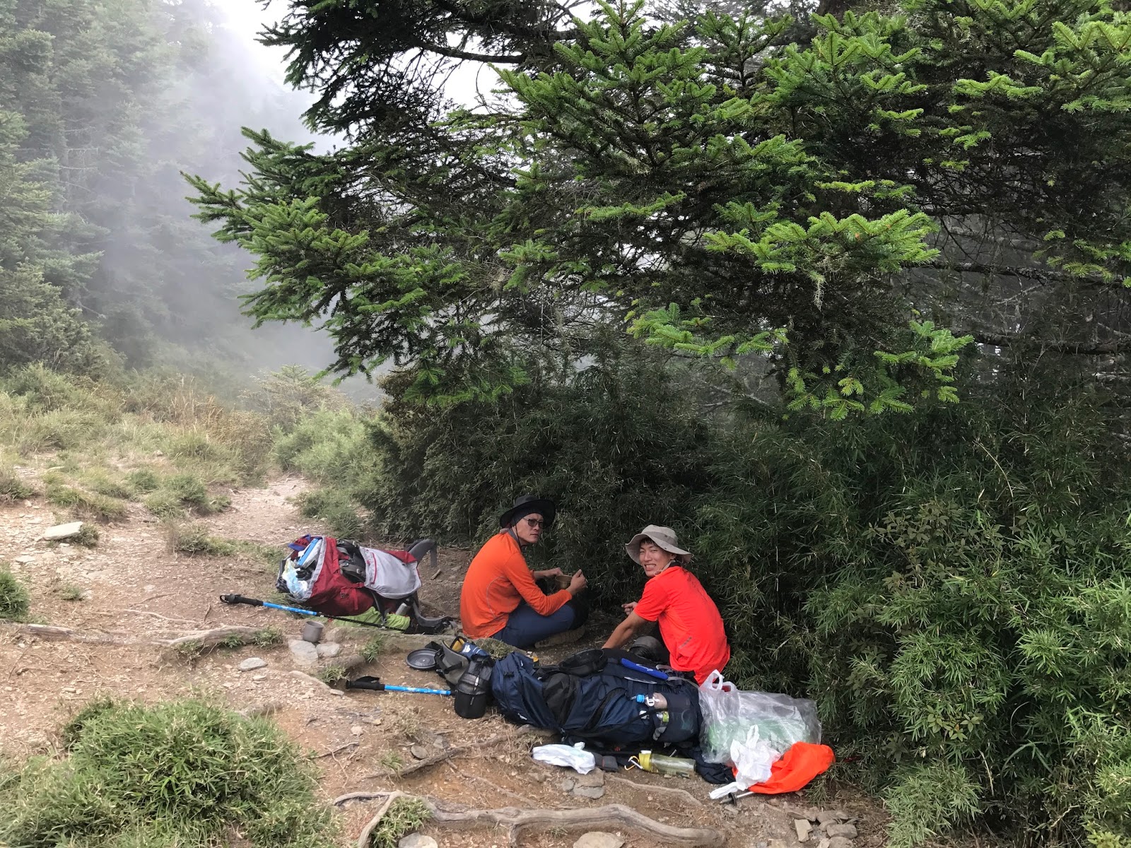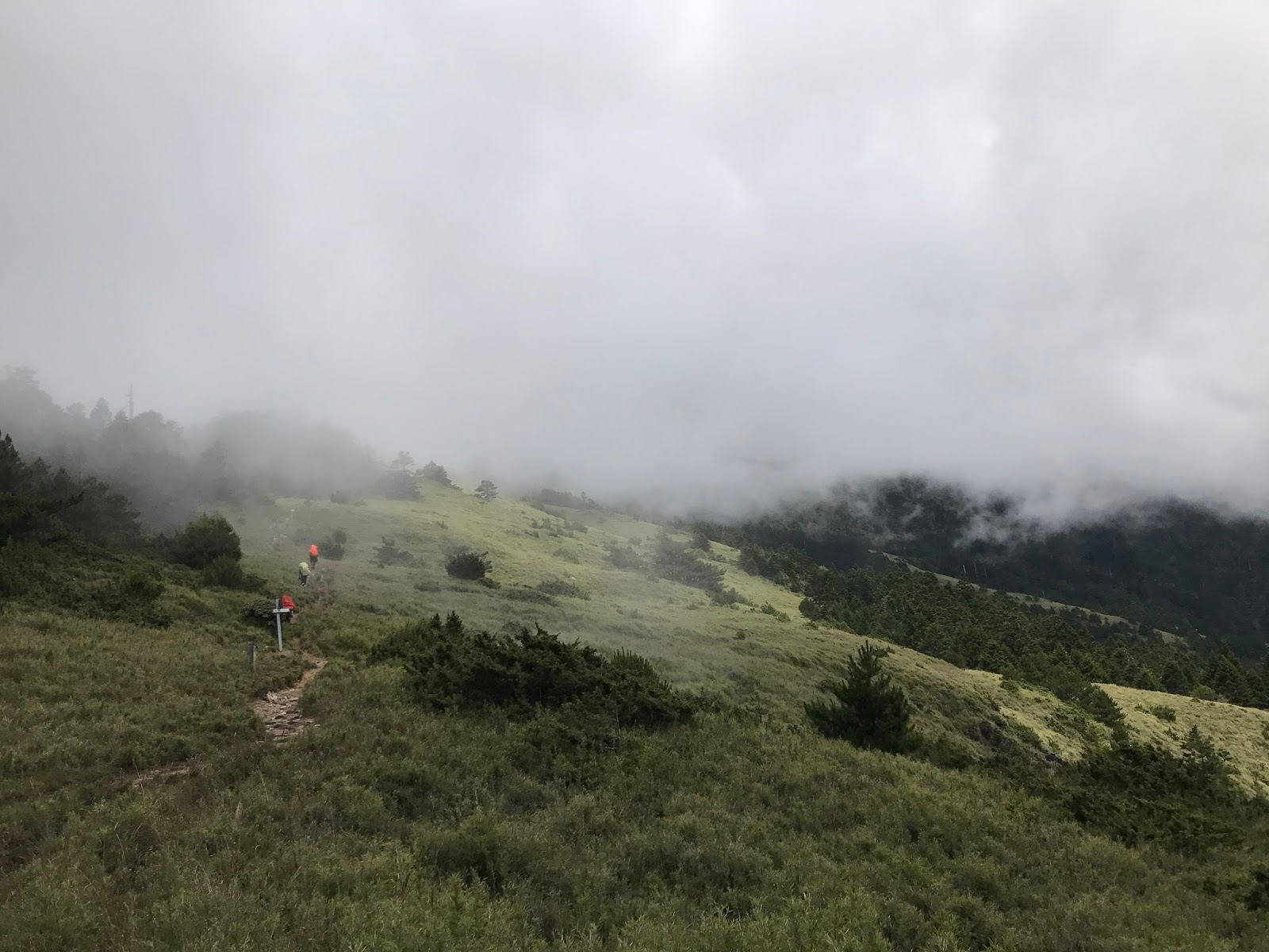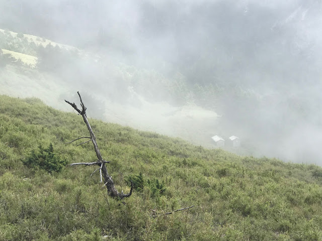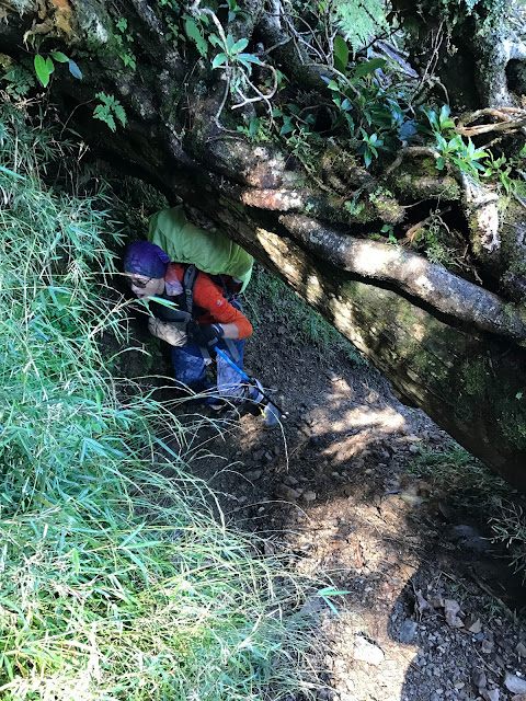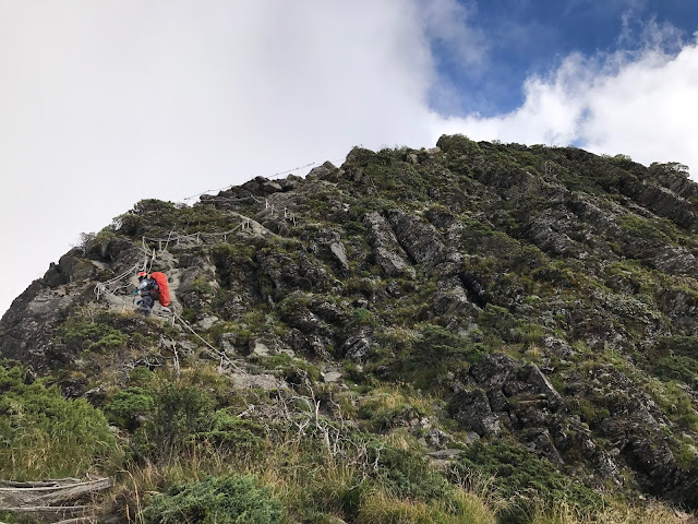 其實從昨天登山口上來沒多久第17號颱風就發布海上警報,但領隊希望先到雲稜山莊再看看情況,考慮若因颱風影響就在雲稜山莊多留一晚!在木杆鞍部已有先致電給入山管理知會恐會多留一晚!(心理OS:搞不好可以提早回家,哈!是有多不想來)